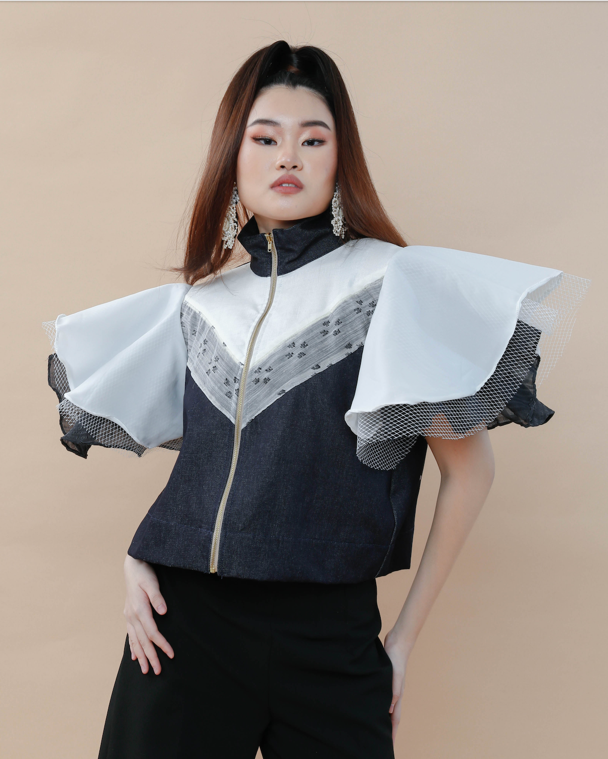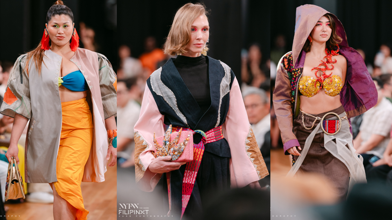 The jackets showcase intricate, handwoven patterns that tell generational stories through diverse Filipino textiles like Binakol, Inabel, Kantarines, Hablon, Langkit, Piña fabric, and Callado embroidery.