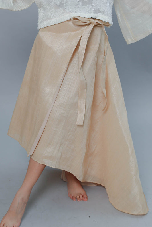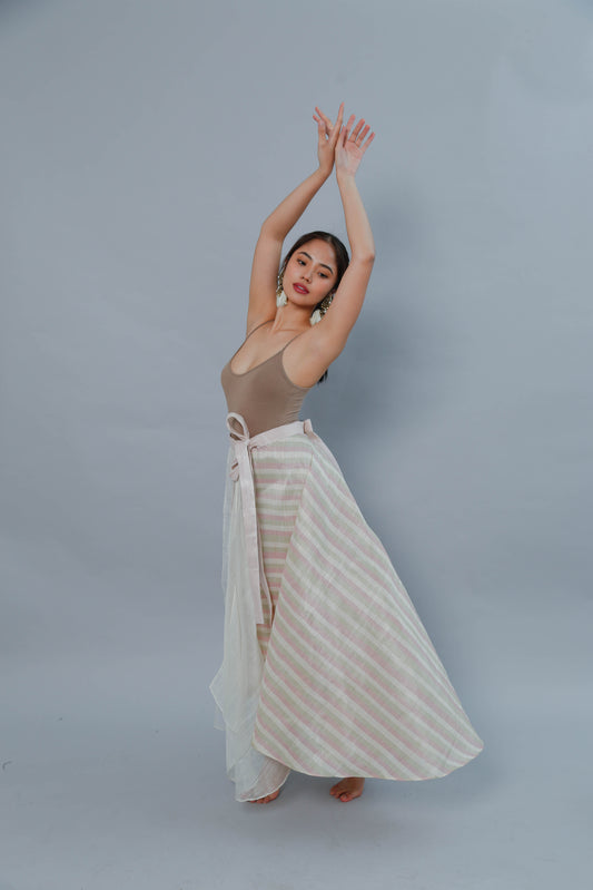 Abaca Wrap Skirt In Lilac Sage Stripes