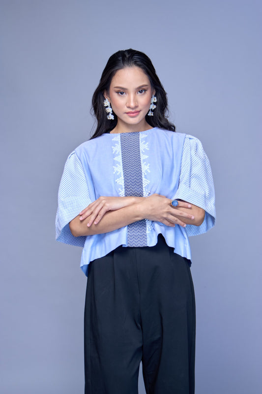Ambassador Blusa in Maroon Langkit with Net Sleeves