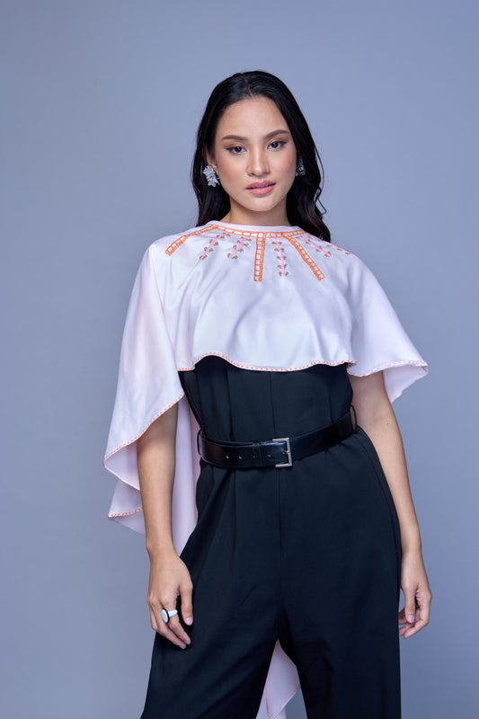 Agaw Pansin Cape in Charmuse Pink With Nesif Embroidery