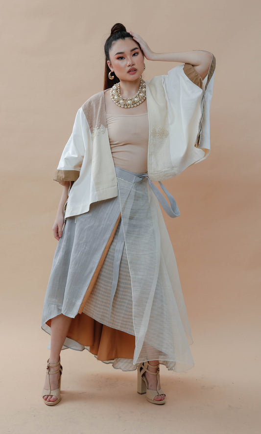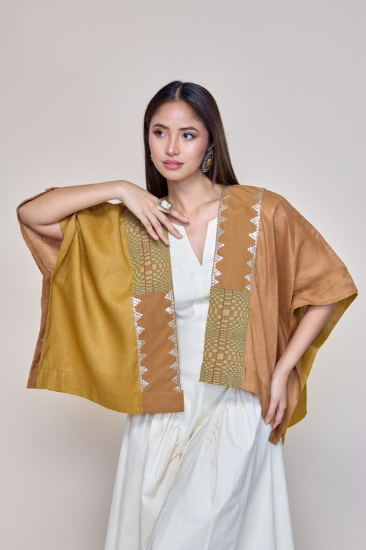 Heritage Poncho in Cream Kalinga and Negros Weaves
