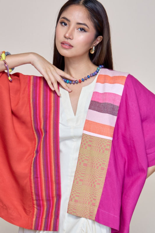 Heritage Poncho Black Linen and Pink Kalinga Weave