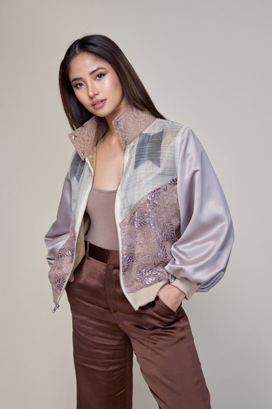 Kape-kape Bomber Jacket in Suksuk Piña Barong of Aklan