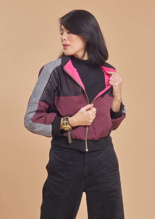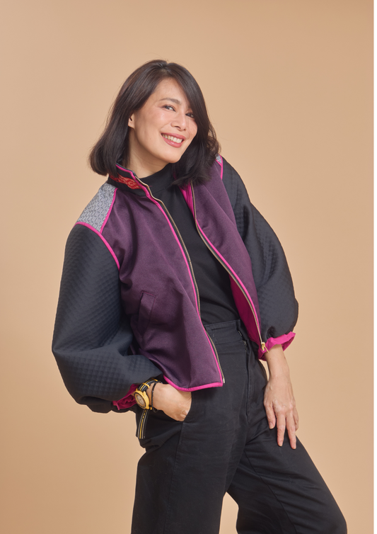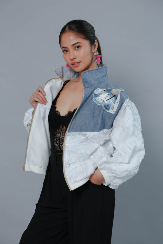 Ulap Bomber Jacket in Binakol Weave and Floral Applique