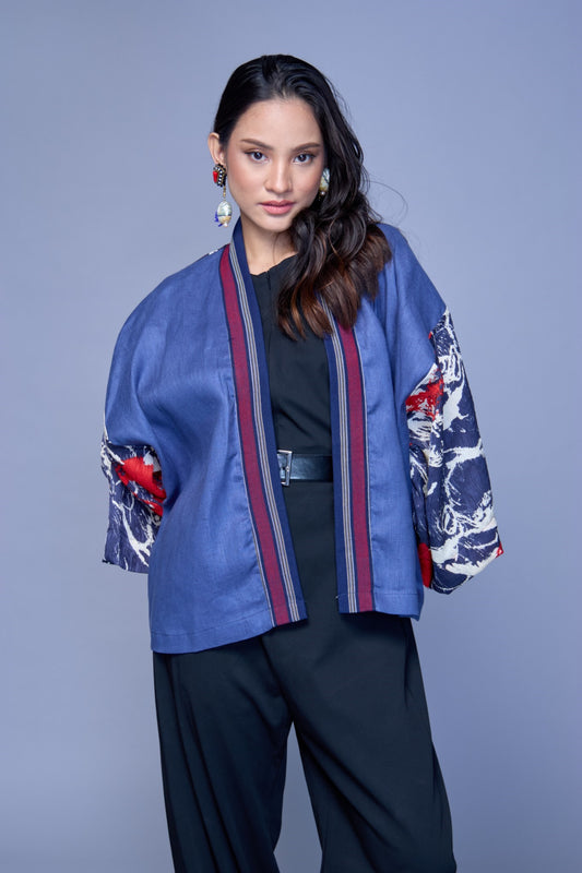 Crop Kimono in Kantarines with Beadworks from Pandi Bulacan