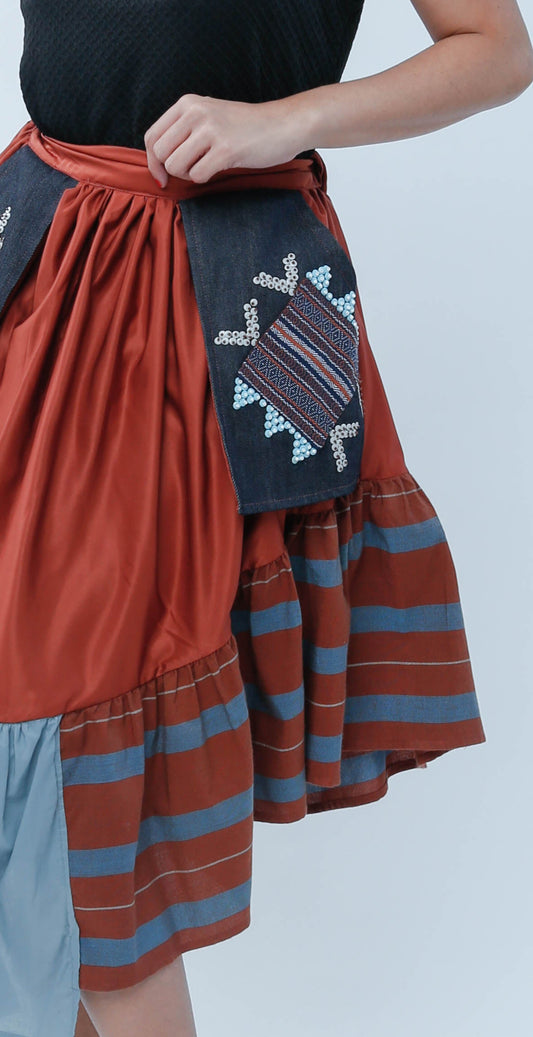 Freestyle Bagobo Burnt Orange Skirt with Kundiman Weave