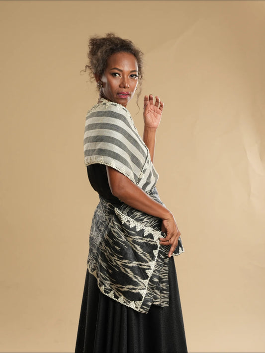 Modern Filipiniana Black Tnalak with Sibagat Abaca Stripes