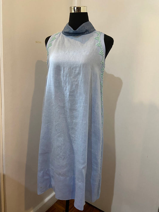 Magandang Araw Linen Dress with Langkit Weave and Hand Embroidery