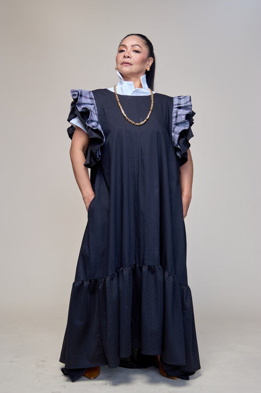 Masayahin Balloon Black Dress with Fluffy Local Weaves
