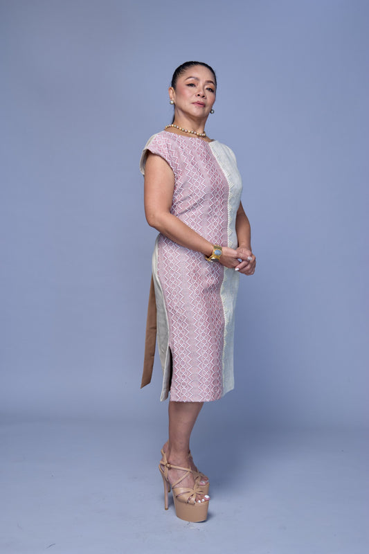 Magandang Hapon Linen Dress in Tan Brown with Langkit Weave of Marawi