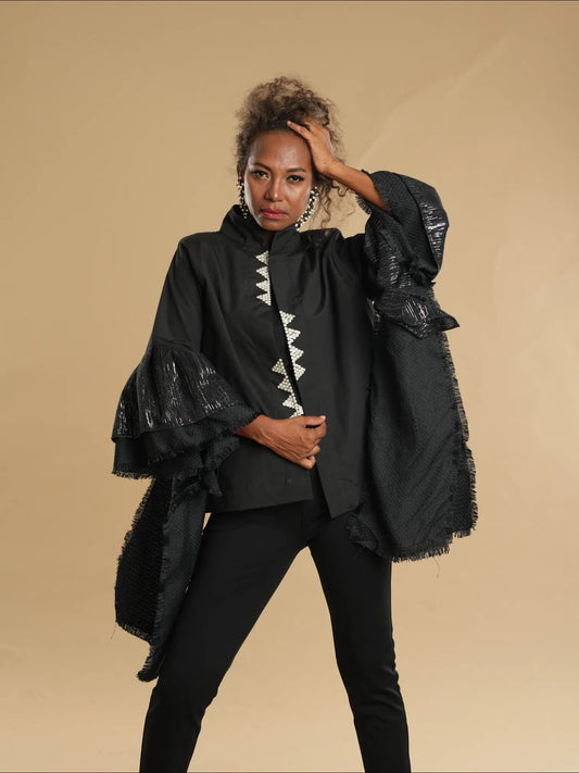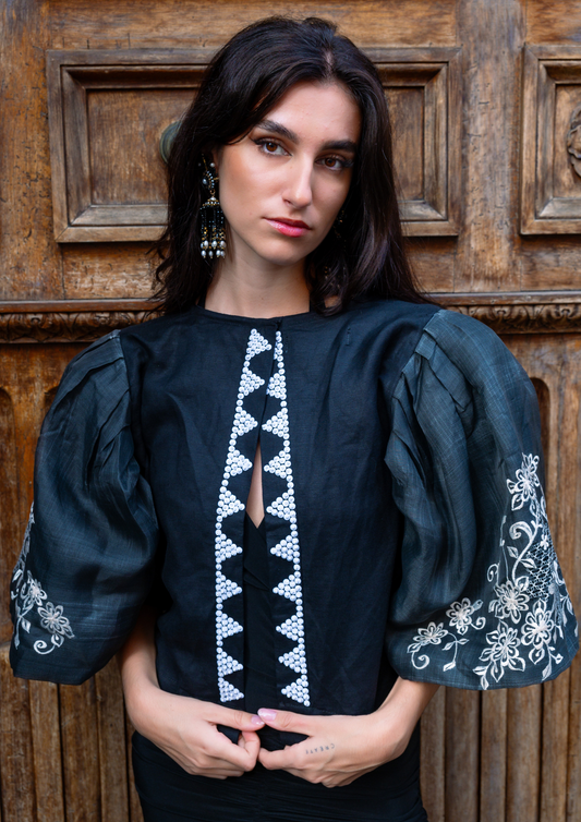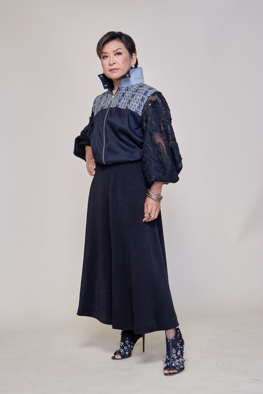 Black is more than just a color—it’s a statement. Echoes of Black celebrates the timeless elegance and mystery of this powerful hue, perfectly complementing every woman’s voice. Whether it’s the sultry black dress, sleek bibs, or polished monochrome jackets, each piece in this collection is designed to let you express your elegance effortlessly. The beauty of black lies in its simplicity, allowing you to transition from day to night with minimal effort, while still making a powerful statement. This collection is for those who love the quiet sophistication of black—bold yet understated—letting your inner voice speak through timeless style.