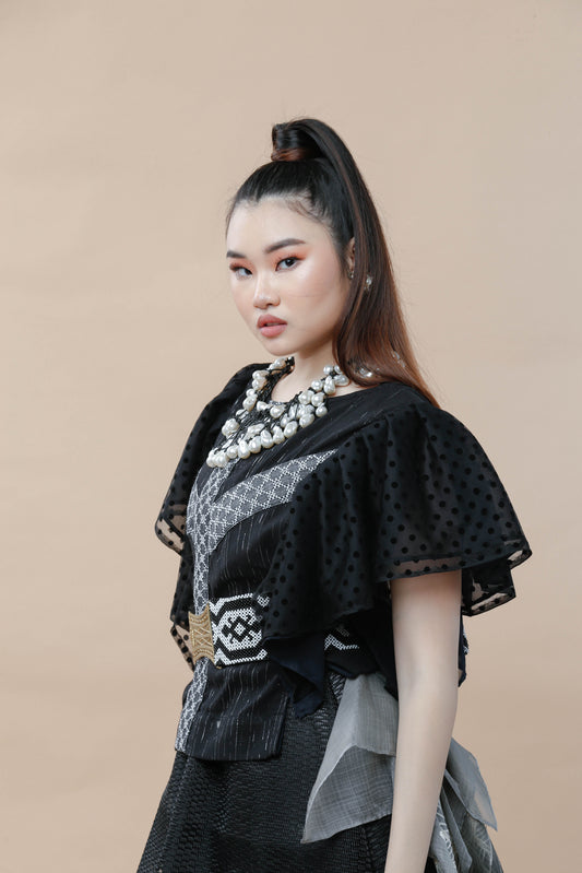 Kundiman Black Bib with Ruffled Sleeves