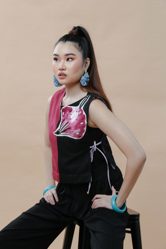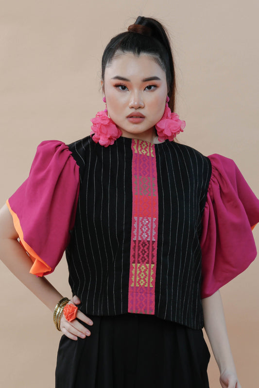 BUSILAK TOP IN BLACK and FUCHSIA
