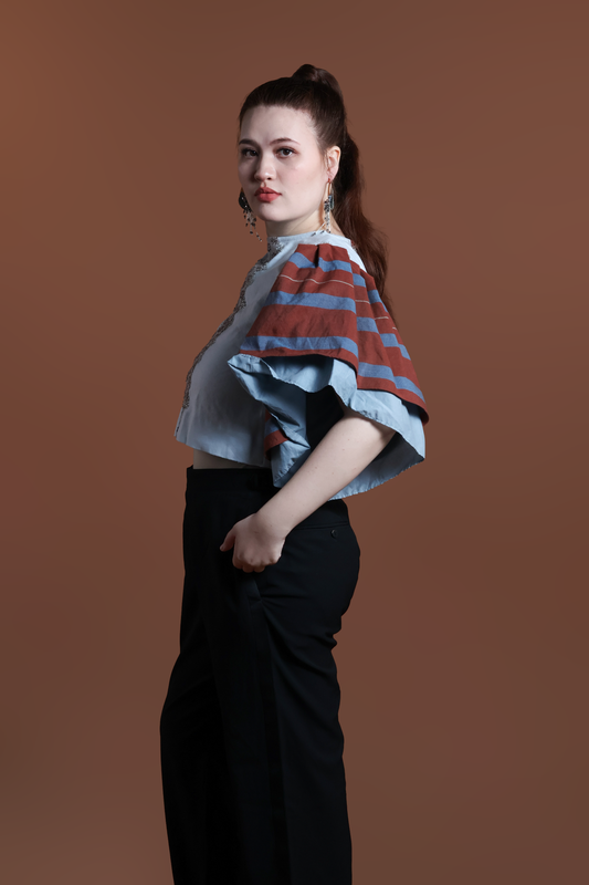 BLUSA TOP IN POWDER BLUE WITH KALINGA STRIPES
