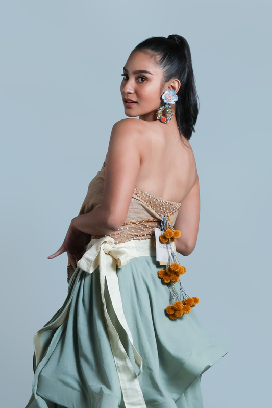 GREEN INAUL CROP SEE THROUGH TRENCH COVER UP INAUL OF MAGUINDANAO WITH HANDBEADED