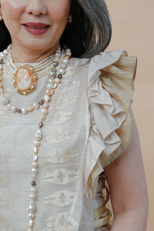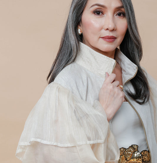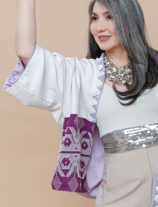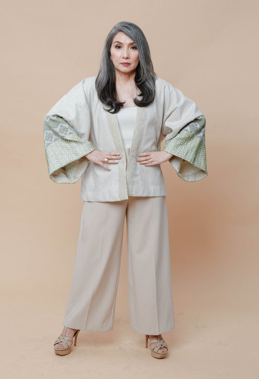Crop Kimono in Kantarines with Beadworks from Pandi Bulacan