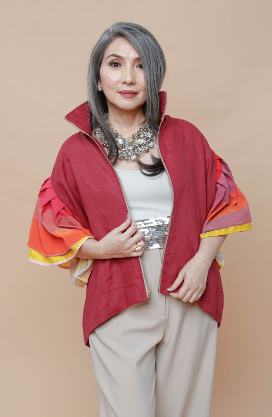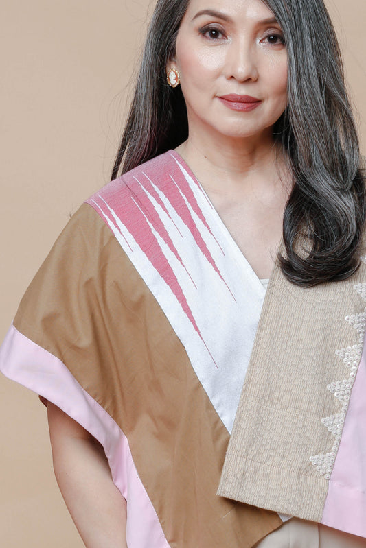 Samurai Poncho in Pink with Kundiman Collar and Inabel