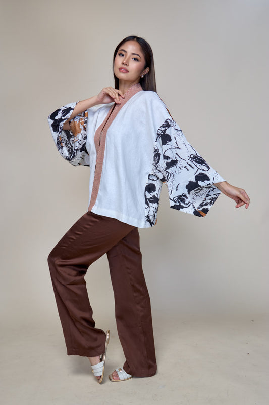 Crop Top Samurai Kimono in Piña Barong and Inabel Weave