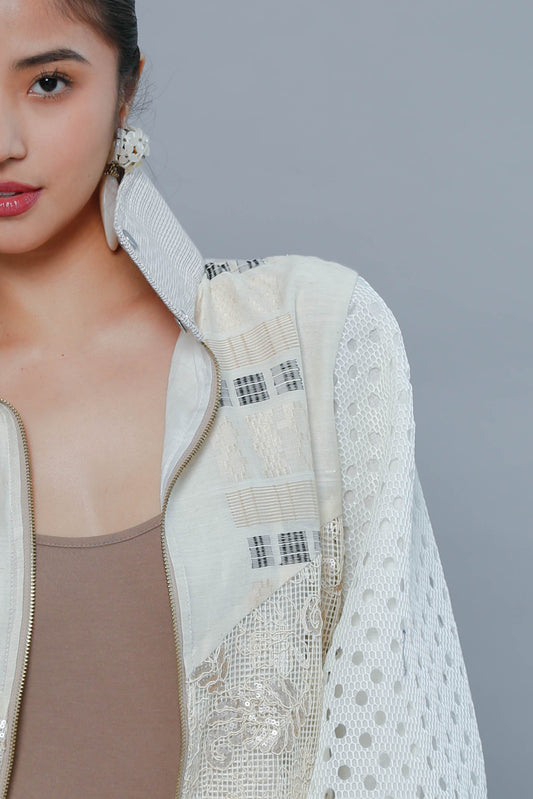 Bida Bida Bomber Jacket in Suksuk Piña Barong from Aklan