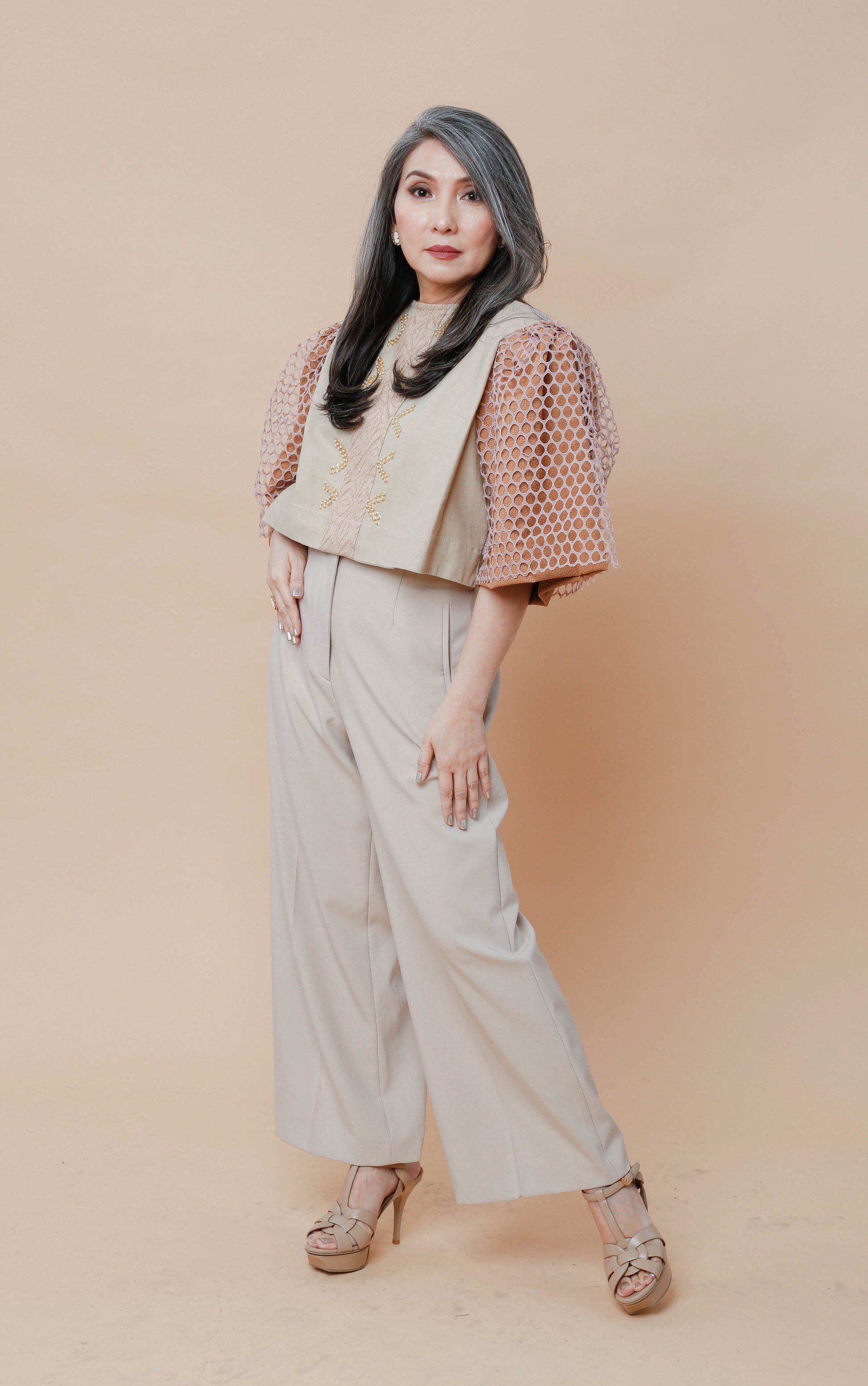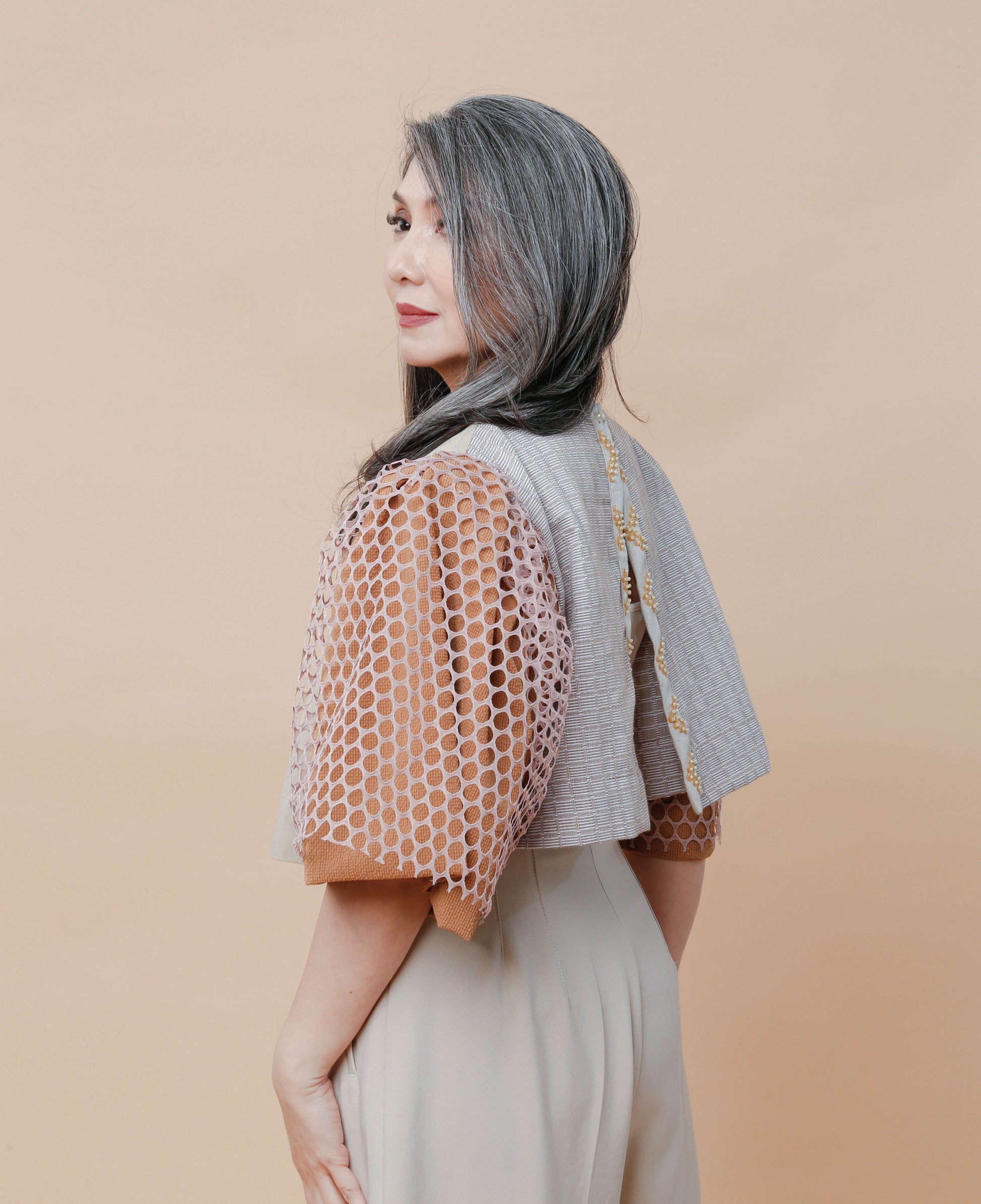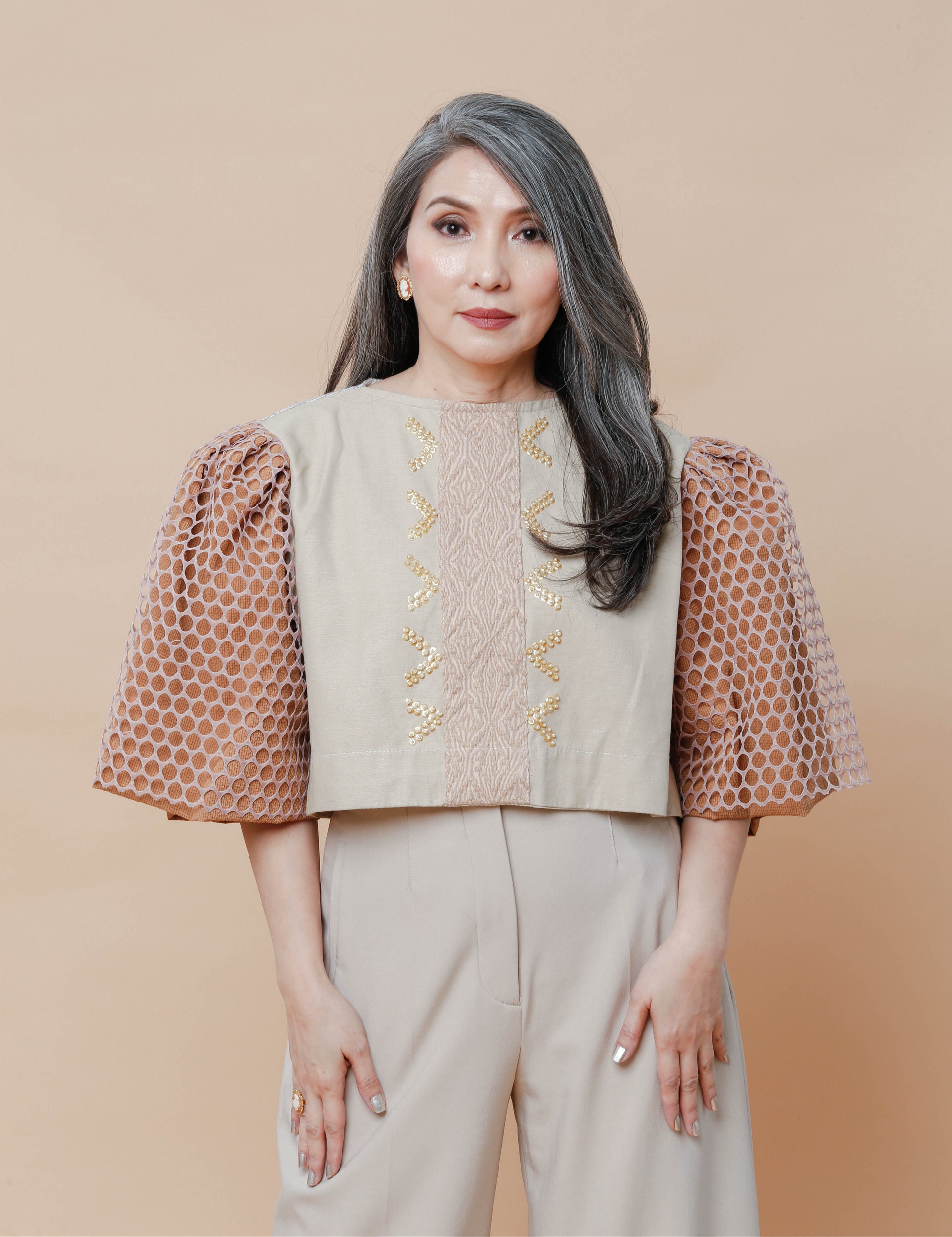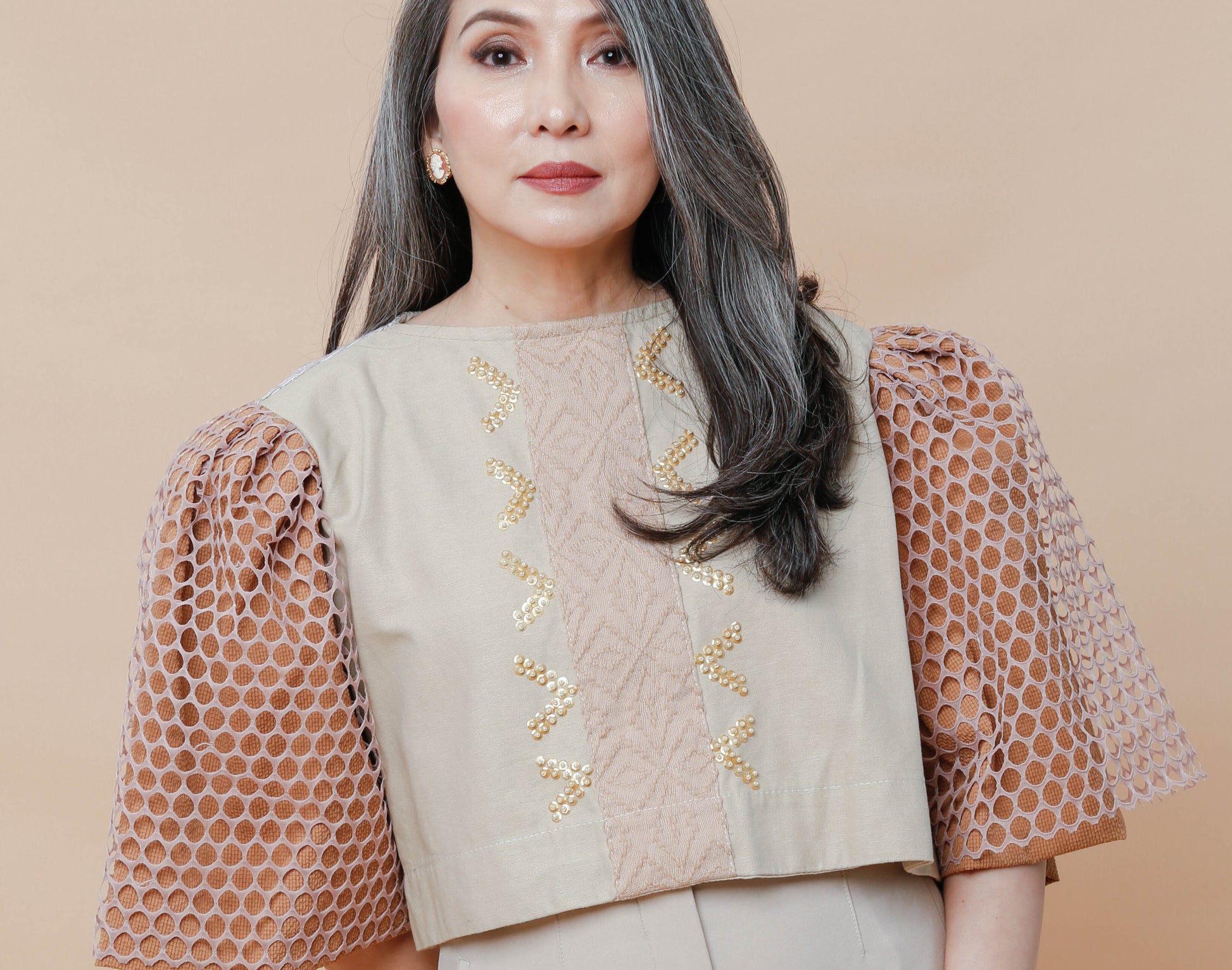 This elegant piece features an earth-toned weave sourced from Negros, accentuated by intricate beadwork handcrafted in Pandi, Bulacan. The design is complemented by delicate brown net sleeves, creating a refined fusion of tradition and modern sophistication. Perfect for those who appreciate artisanal craftsmanship with a subtle, earthy palette.