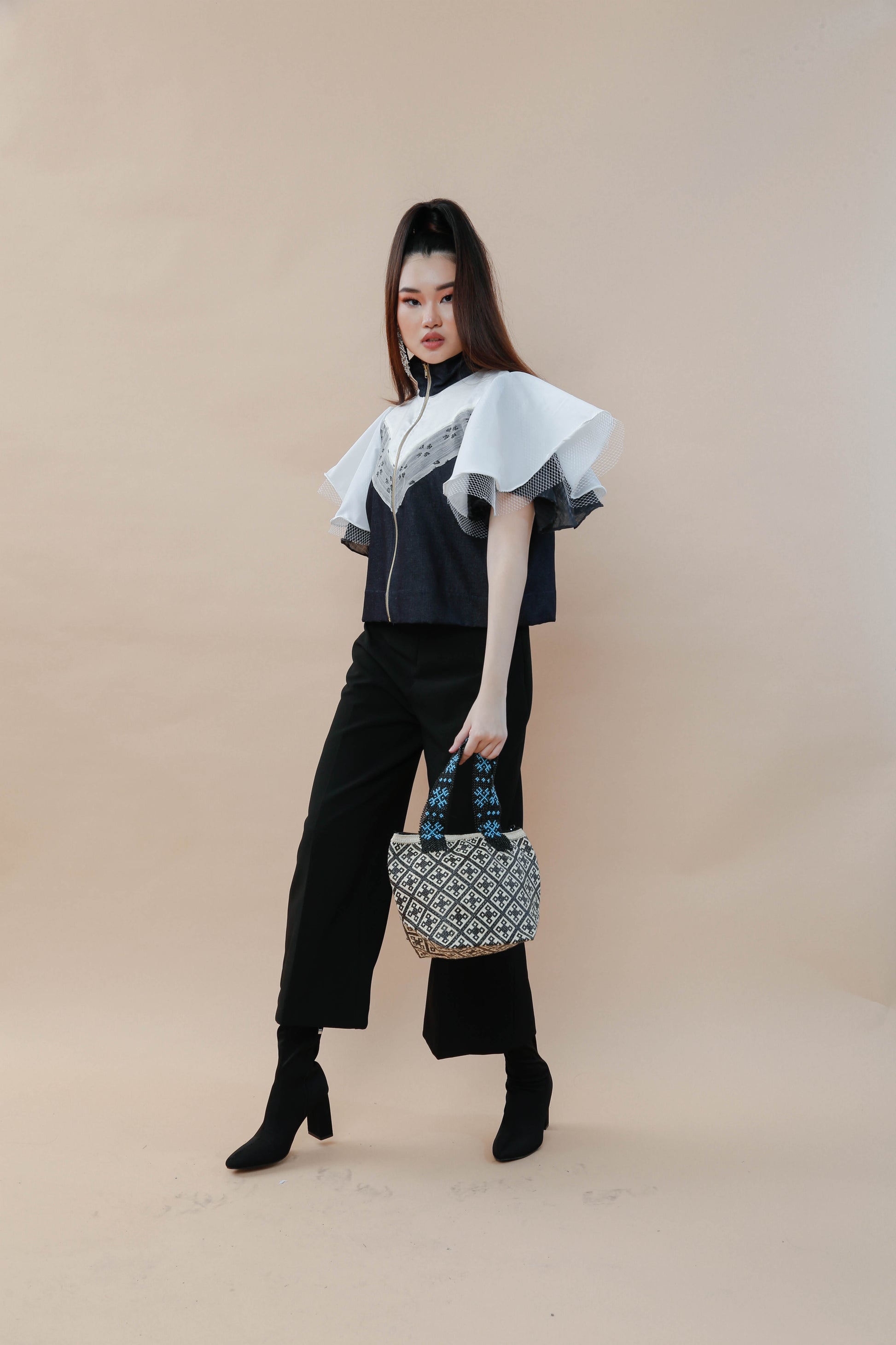 The Detalye Bucket Bag showcases exquisite craftsmanship with intricate beadwork and basket weaving by the Mangyan tribe. This sophisticated accessory blends traditional artistry with functional design, offering a unique statement piece that elevates any outfit while honoring cultural heritage. Its durable construction and detailed embellishments ensure both style and lasting quality.