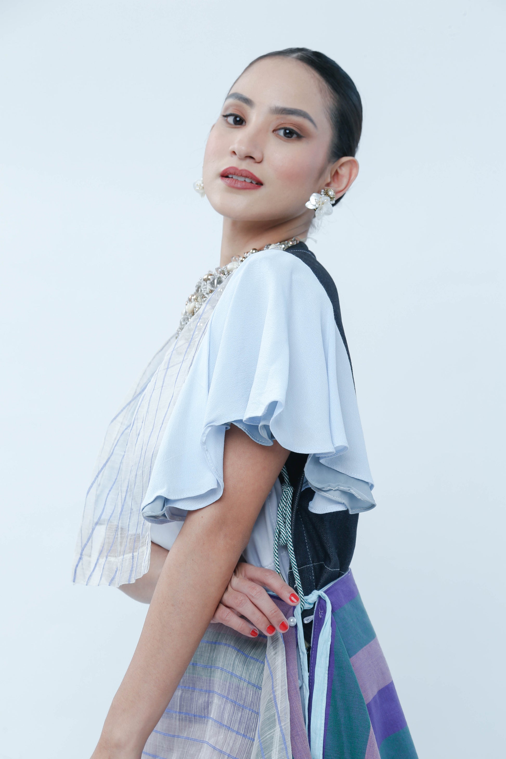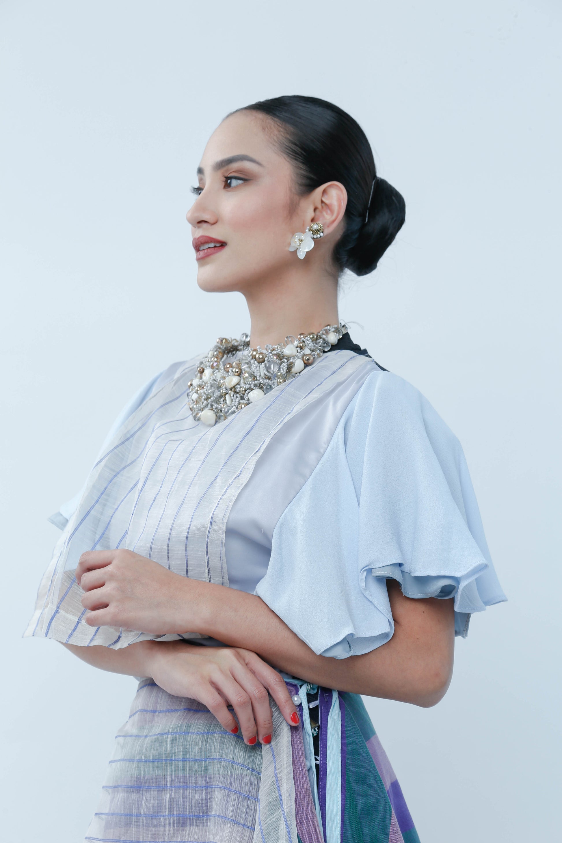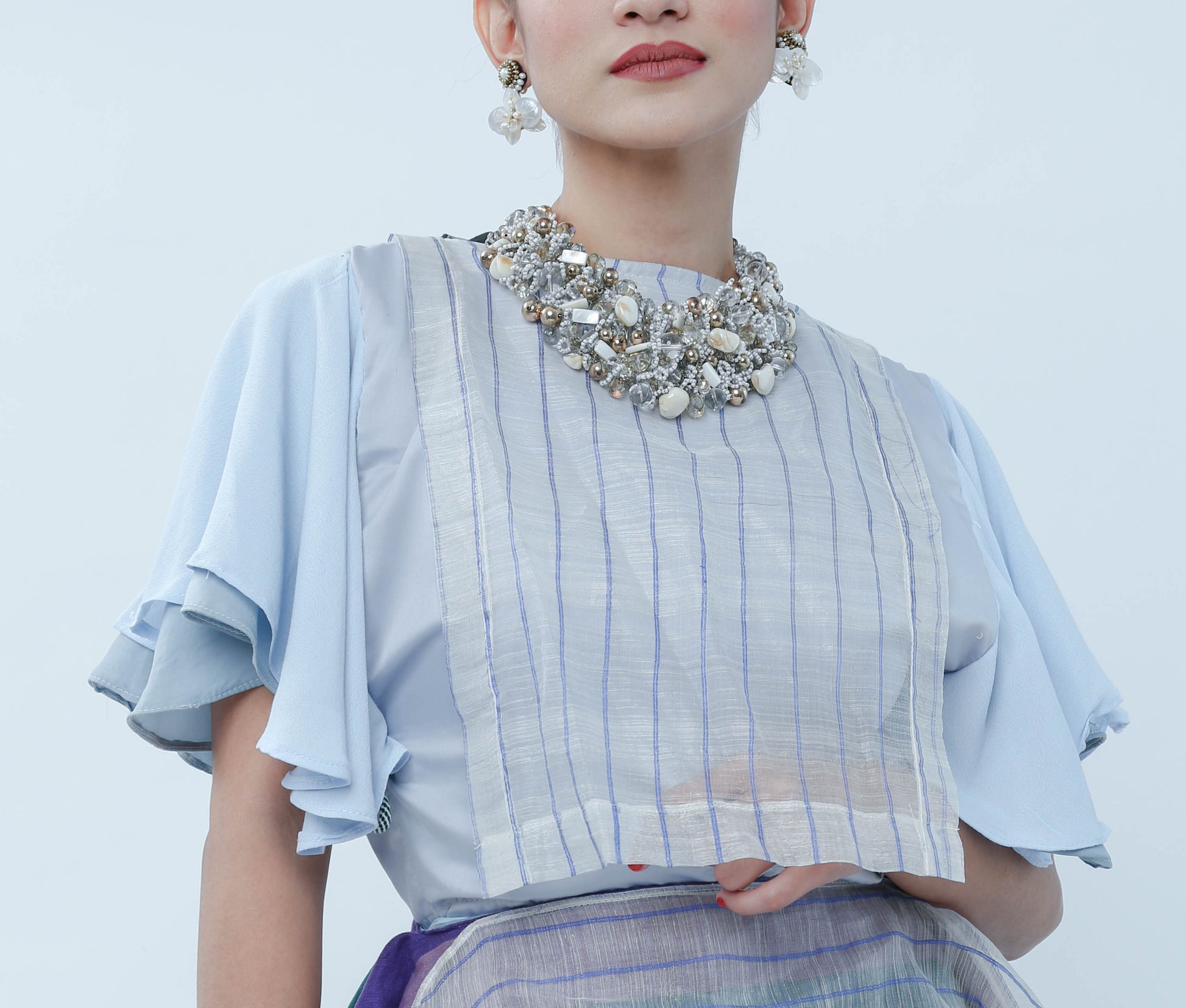 Elevate your event attire with the Bib With Piña Stripe, crafted from exquisite blue striped Piña fabric. This piece offers a fresh and youthful appeal while maintaining a refined sophistication, making it an ideal choice for stylish gatherings. Its lightweight texture ensures comfort, while the classic stripes add a timeless charm to your ensemble.