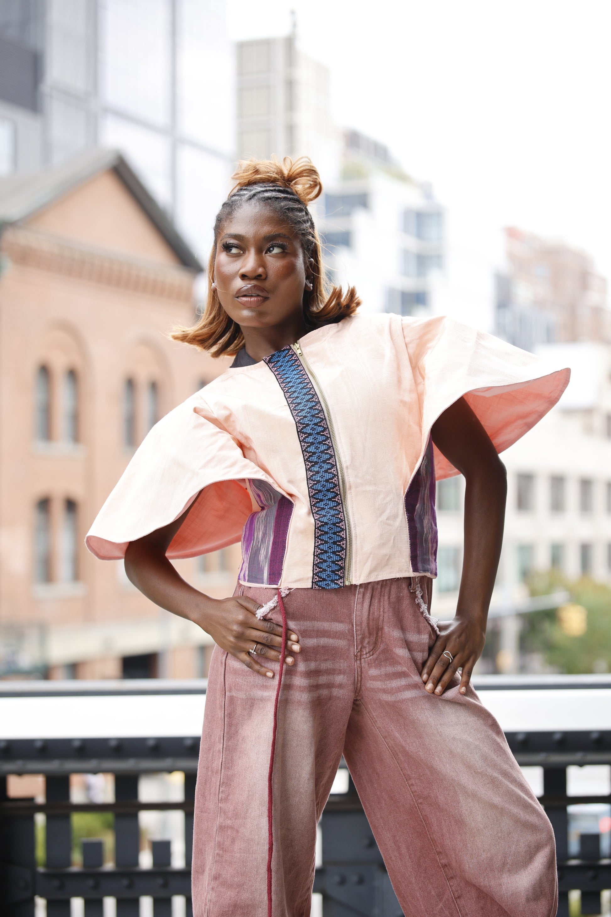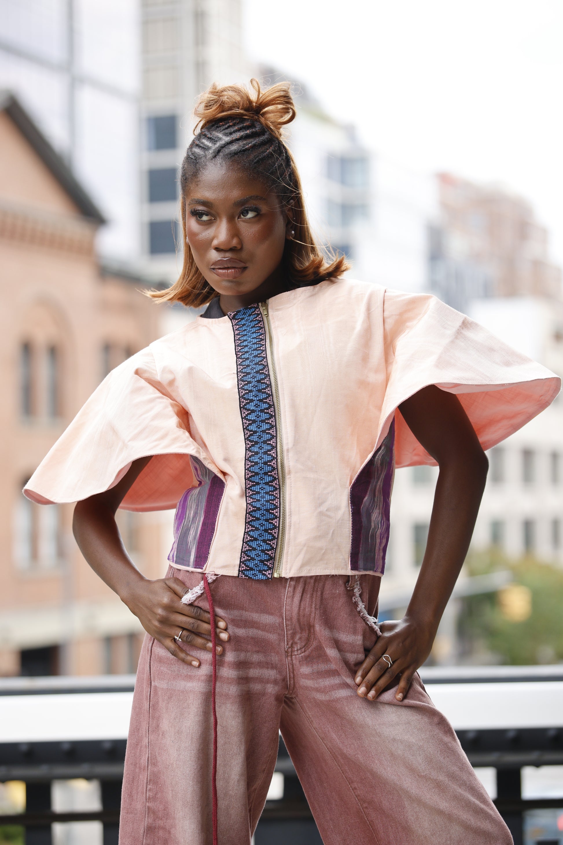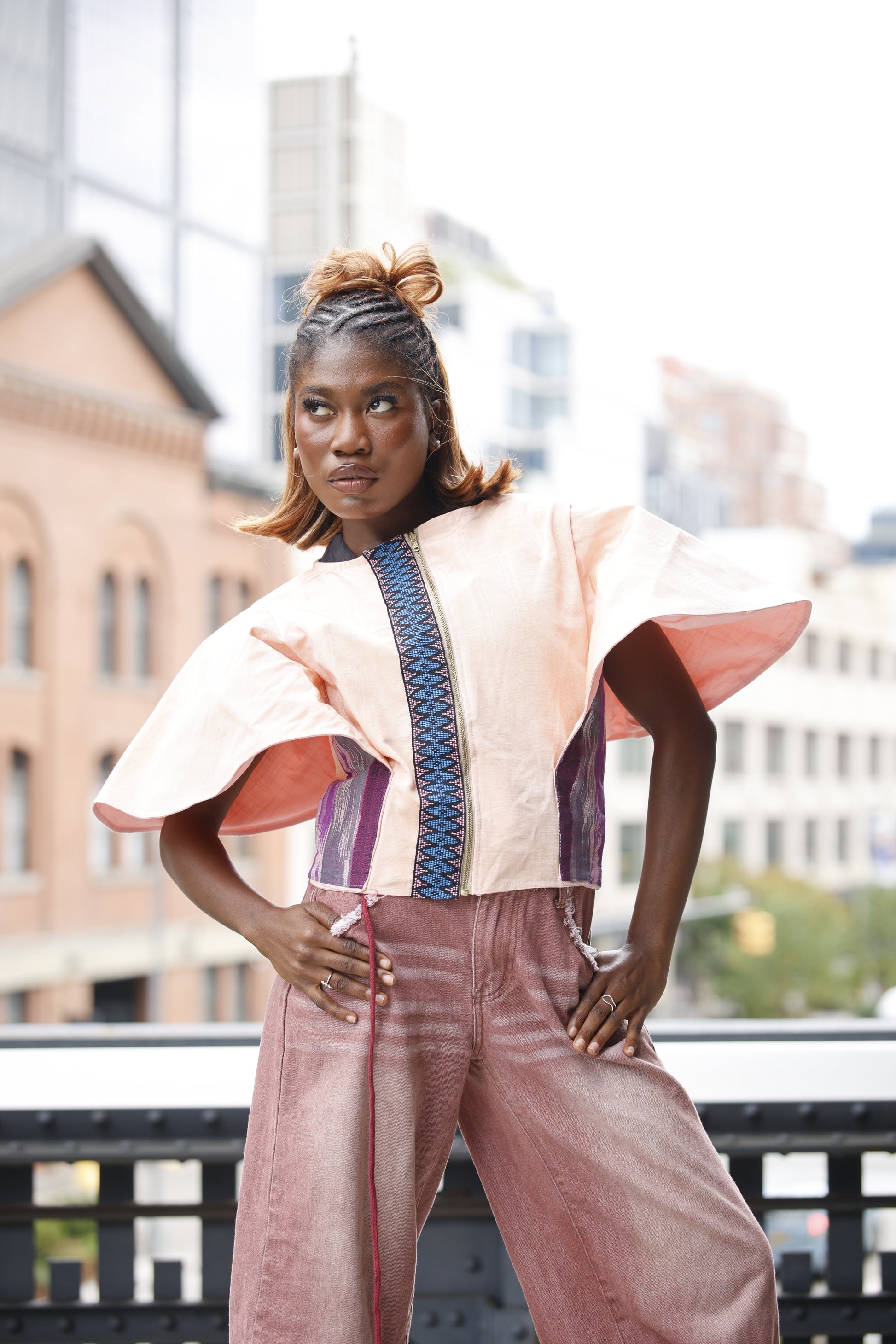 Lady Gaga Blouse in Pink with Yakan and Ikat weave