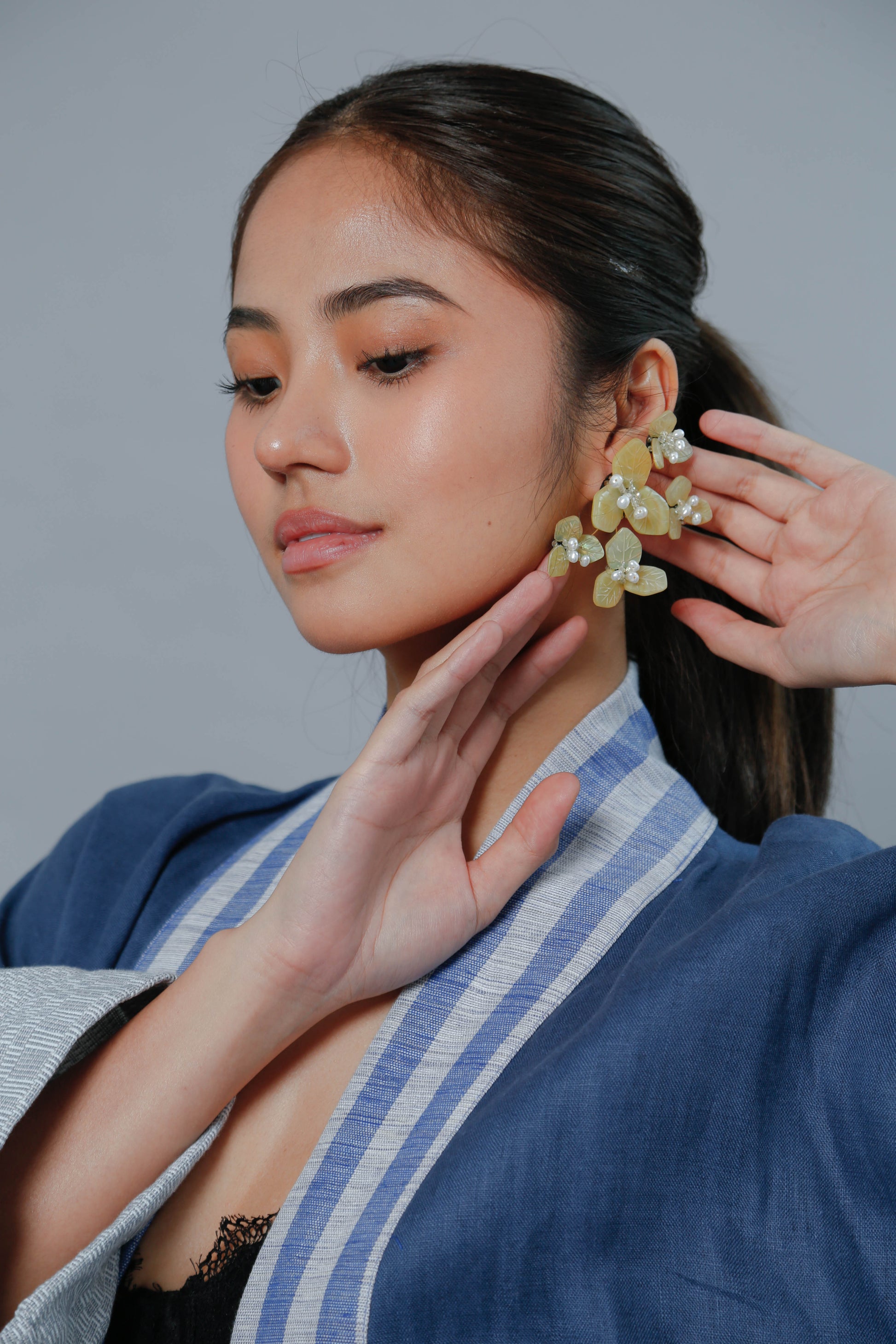 Delicate mussel petals, the soft glow of freshwater pearls, and the sparkle of hand-selected glass beads combined in a breathtaking design, finished with custom-made, gold-plated 925 silver hardware.