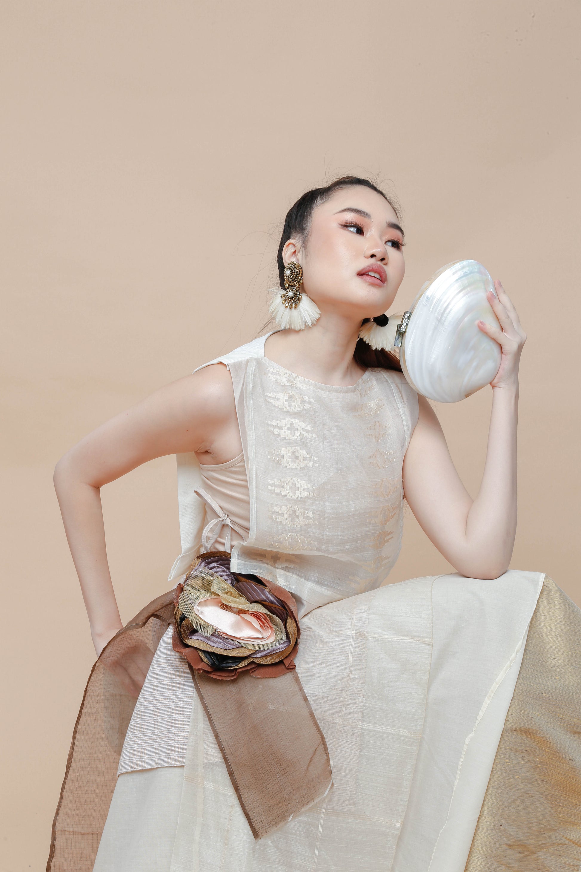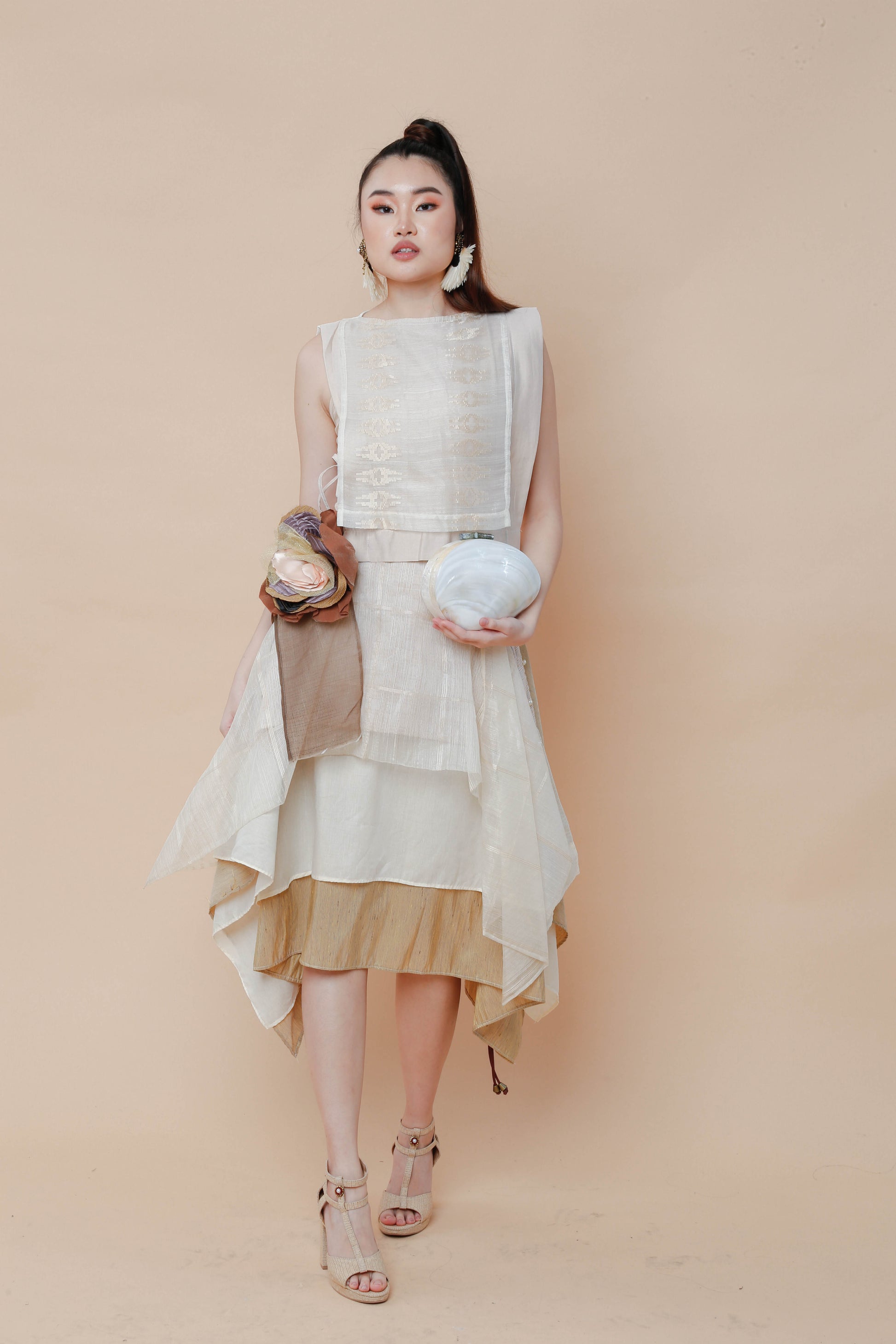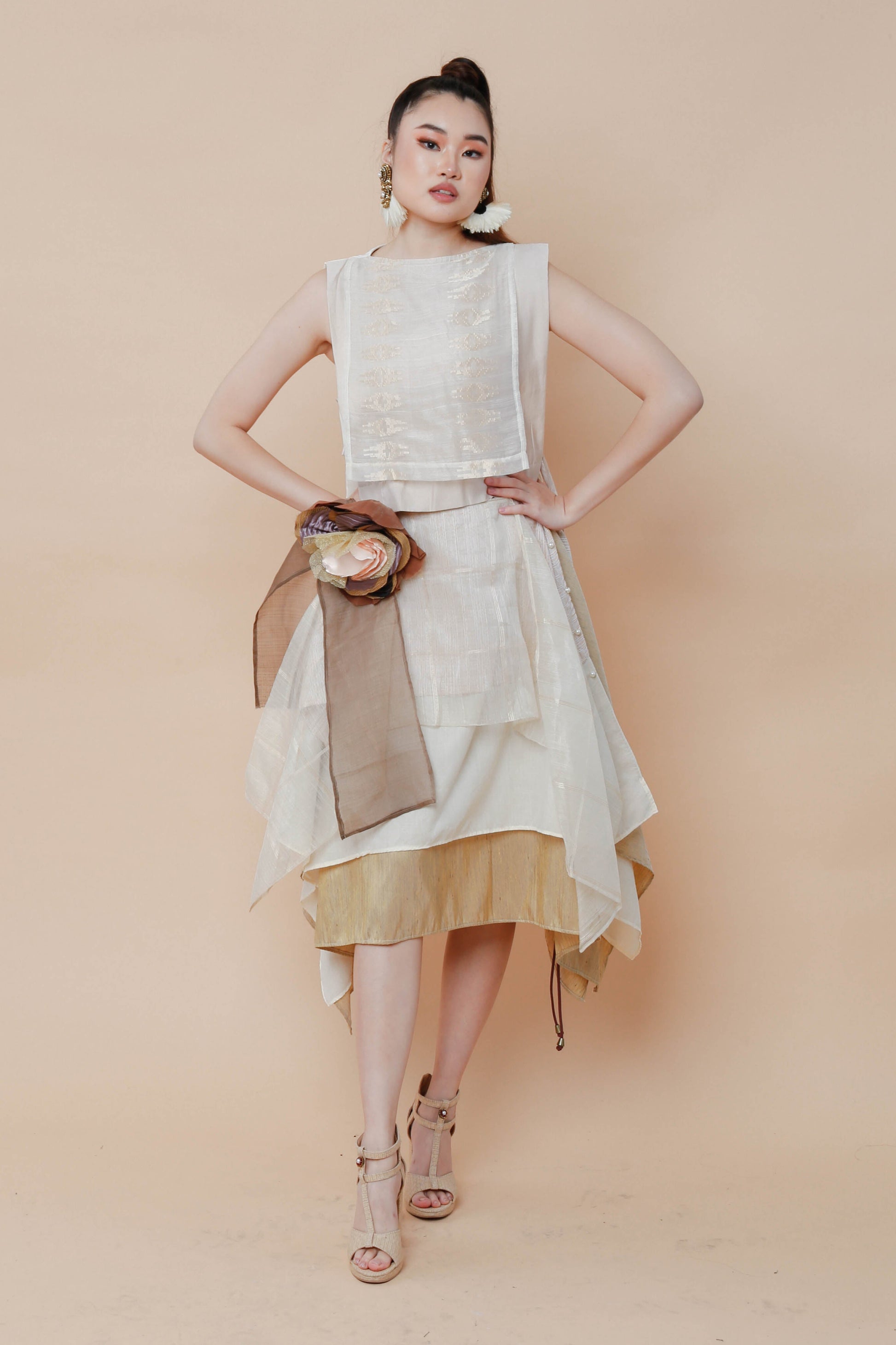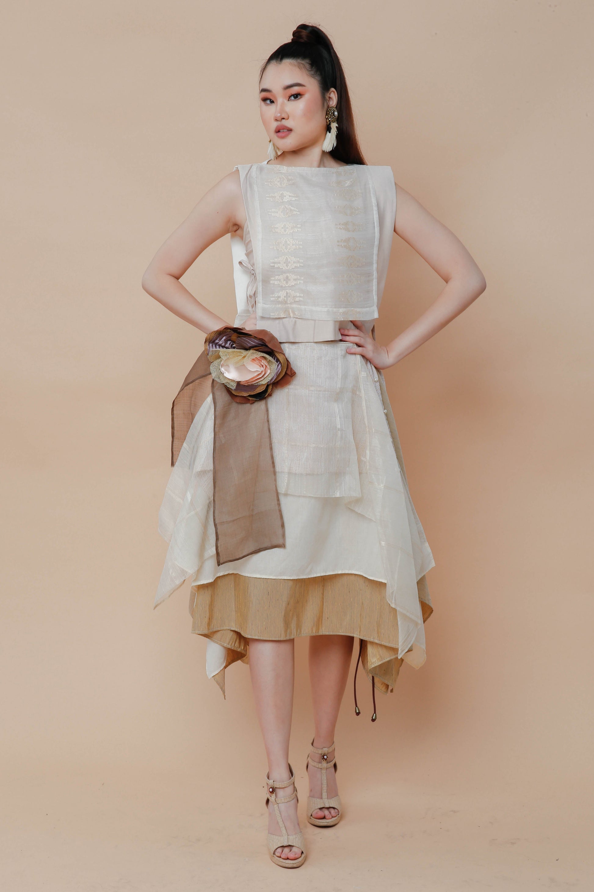 The Freestyle Skirt in Barong fabric offers versatile styling options with its handmade detachable floral corsage, allowing you to personalize your look effortlessly. Crafted from traditional Barong material, this multiwear skirt combines cultural elegance with modern adaptability. Ideal for formal occasions or creative fashion statements, it provides both comfort and distinctive appeal tailored for those who appreciate expert craftsmanship.