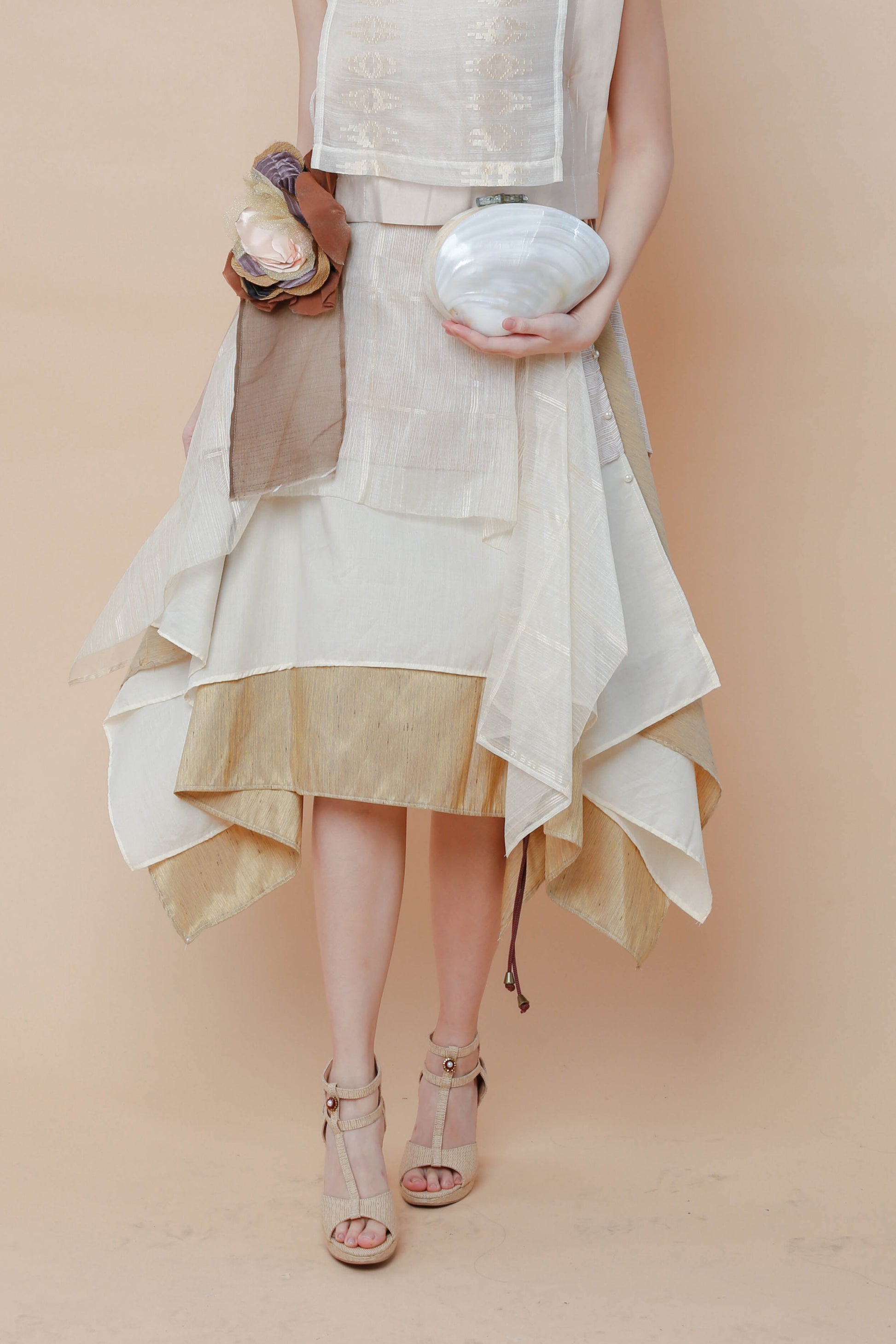 Freestyle Skirt in Barong with Handmade Detachable Floral Corsage