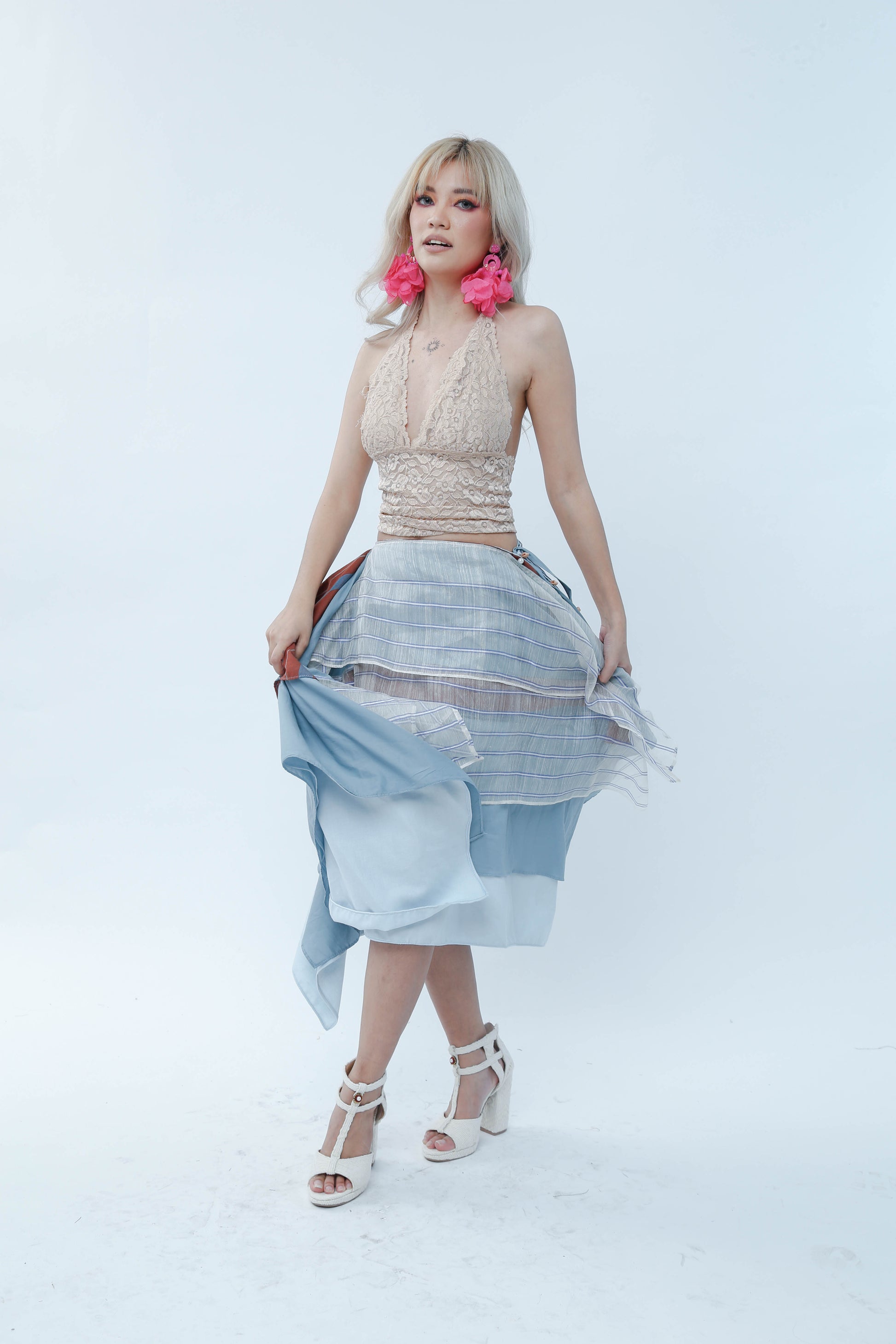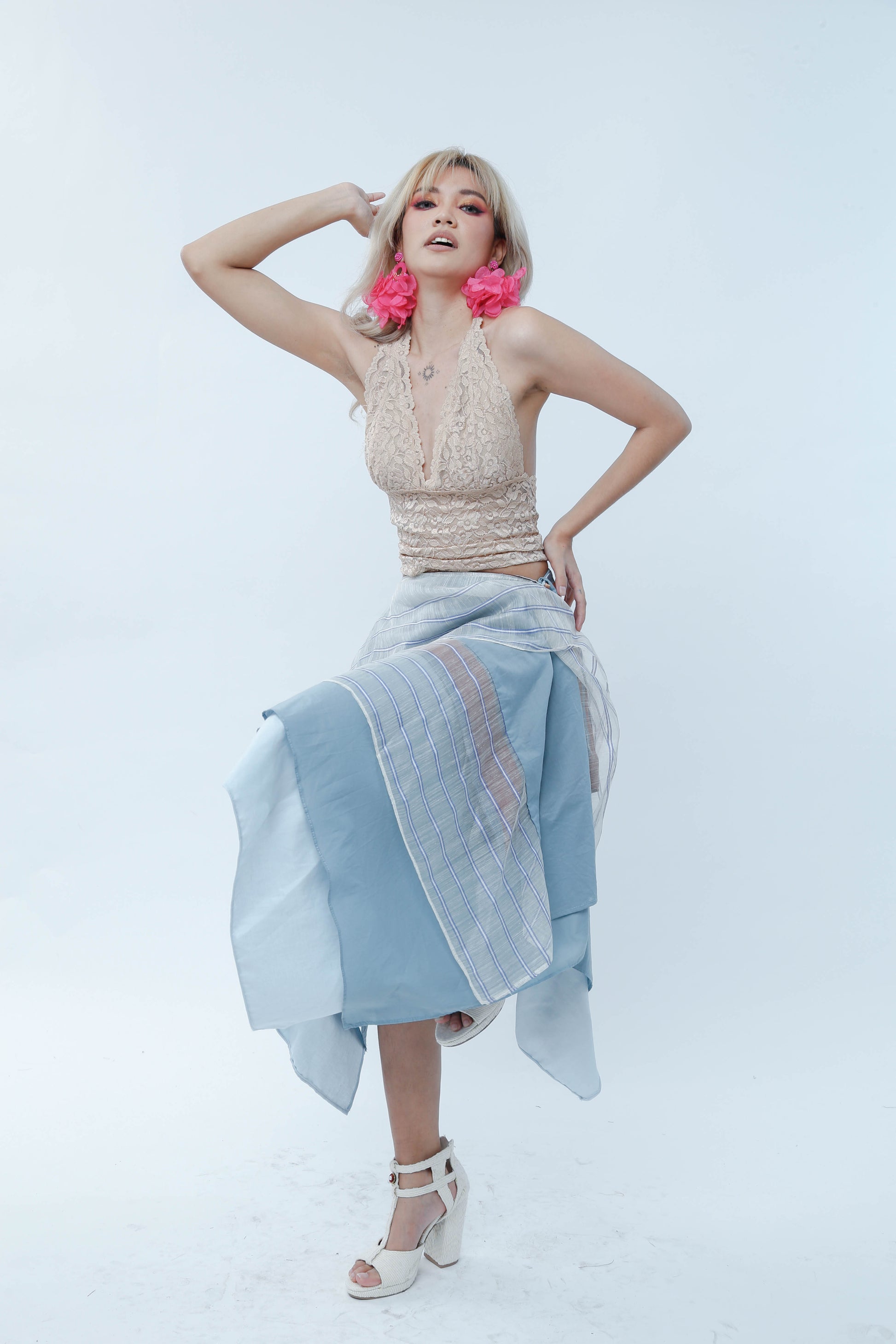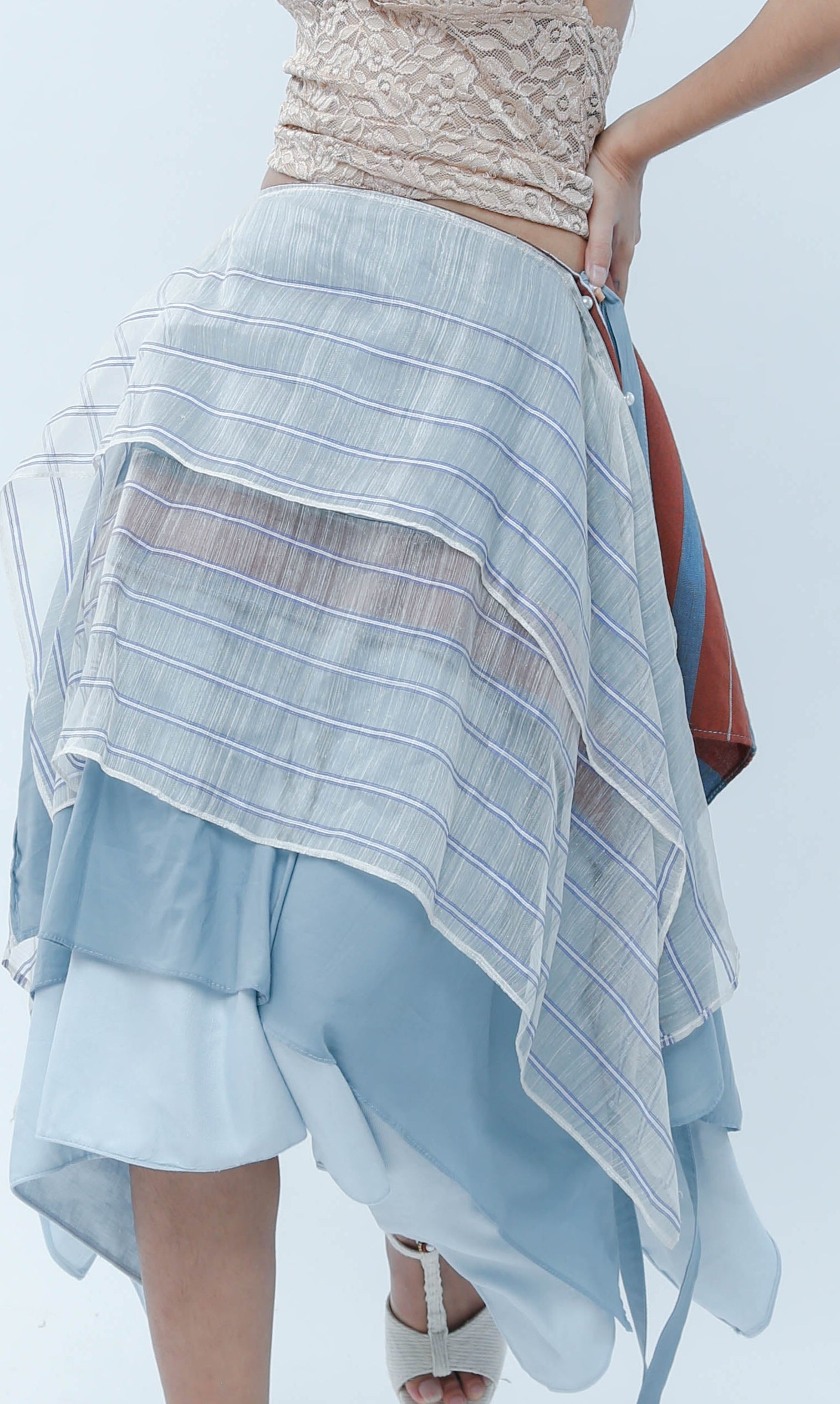 Freestyle Wrap Skirt in Powder Blue Stripes Piña Barong with Kantarines