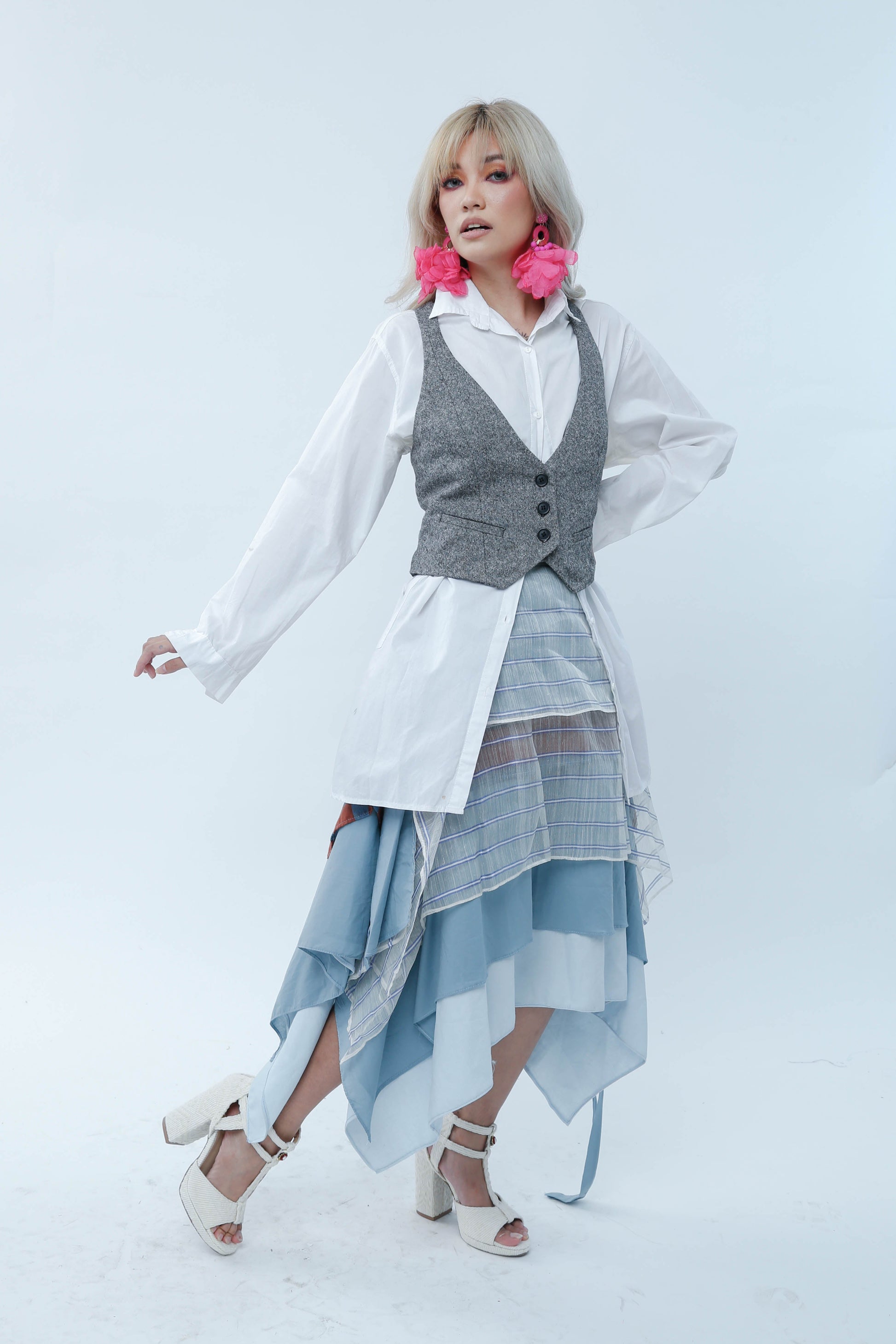 Leave the buttons undone on the side for a fun look. Wear something under, can be skirt, shorts or pants