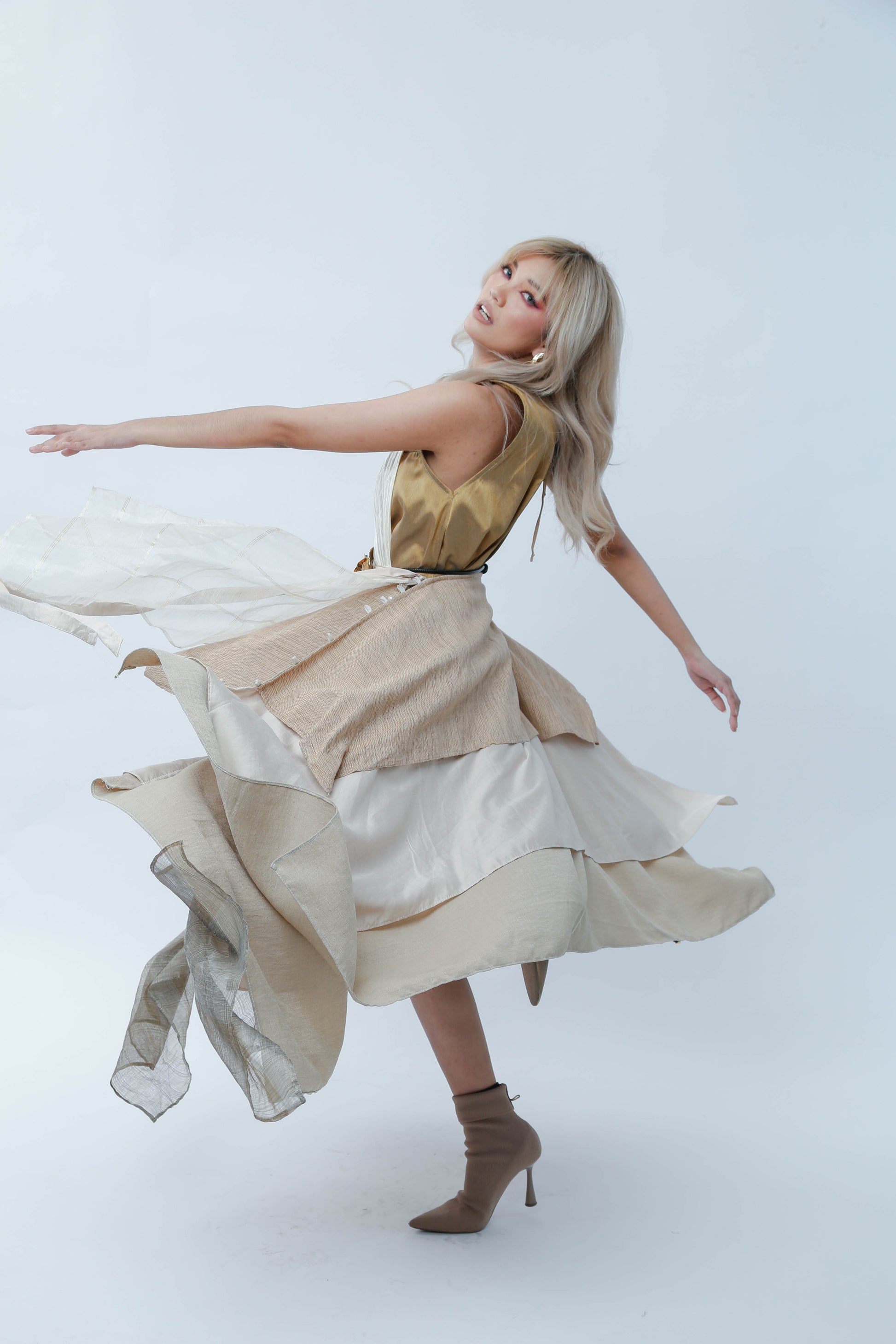 Free Style Skirt: Soft fabrics with layers of Piña Barong.