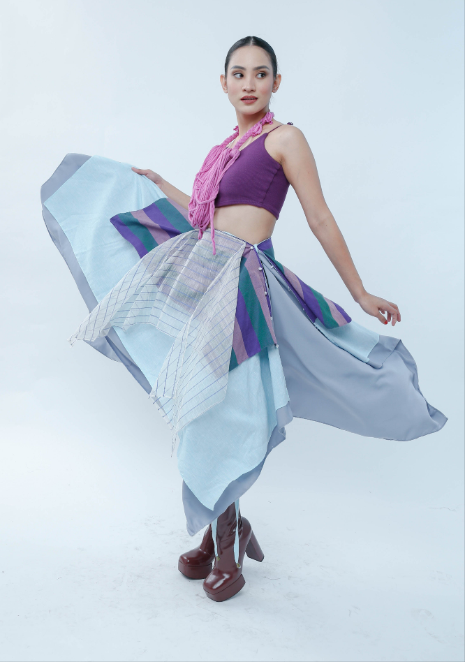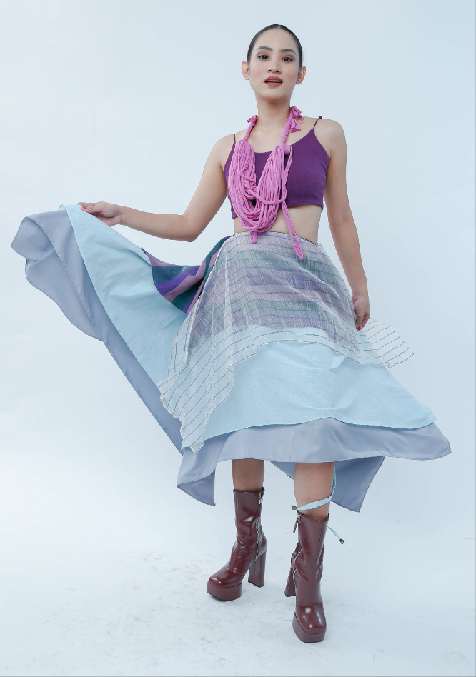 I purple you! Celebrate your love for BTS with the Freestyle Skirt featuring playful purple kantarines and soft powder blue Piña fabric. This vibrant skirt is perfect for fans who want to add a splash of color and fun to their wardrobe while showing their fandom pride. Light, comfortable, and full of personality, it’s a joyful way to express yourself in multiple ways every day.