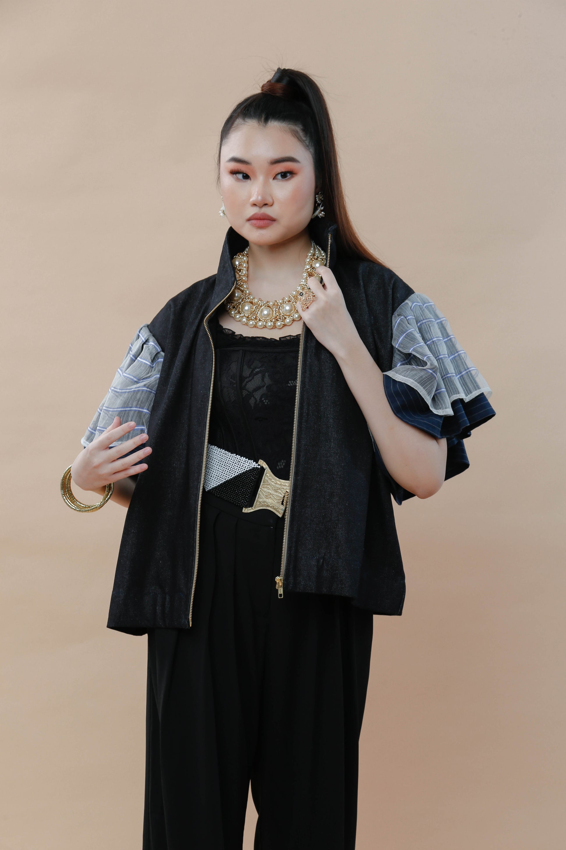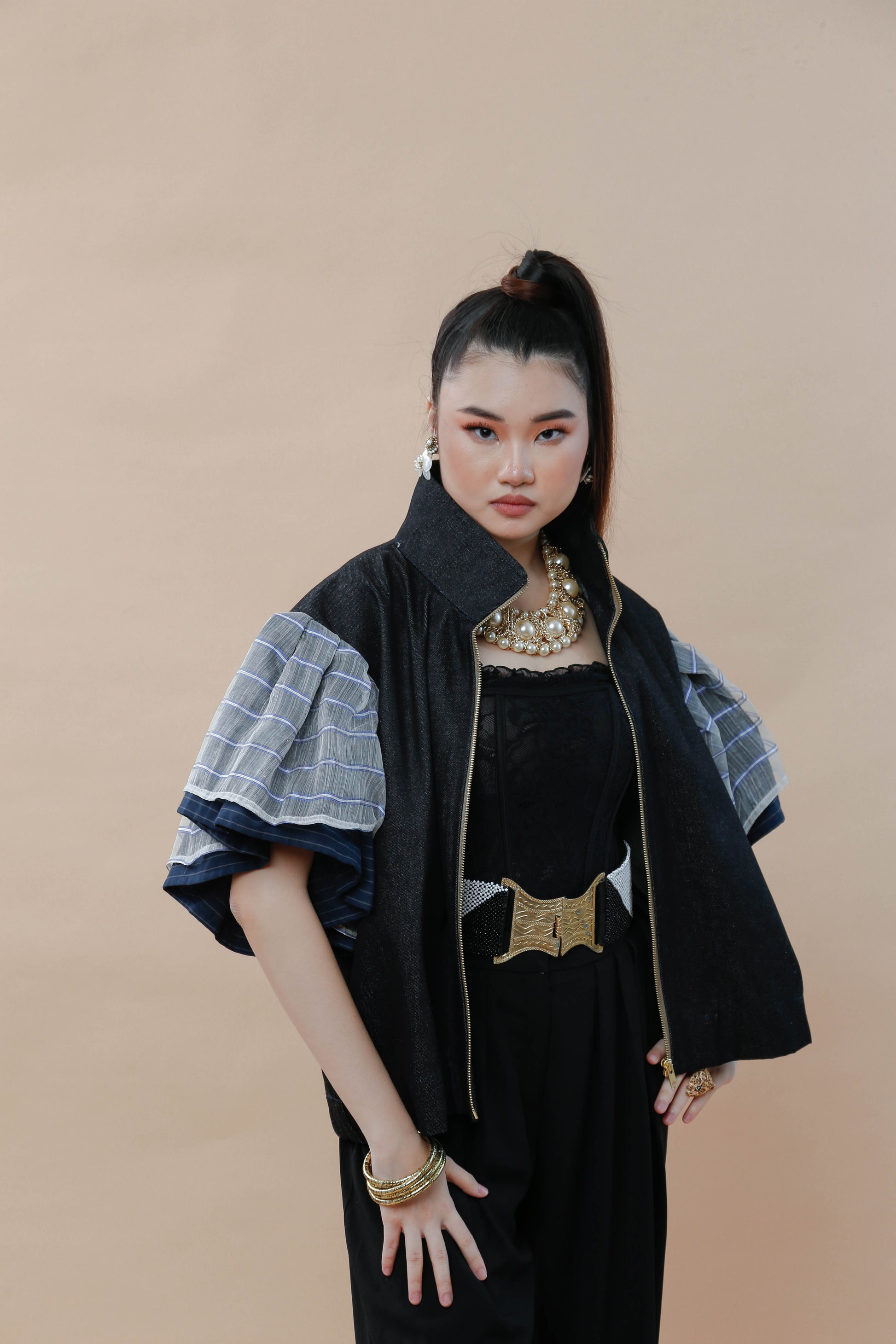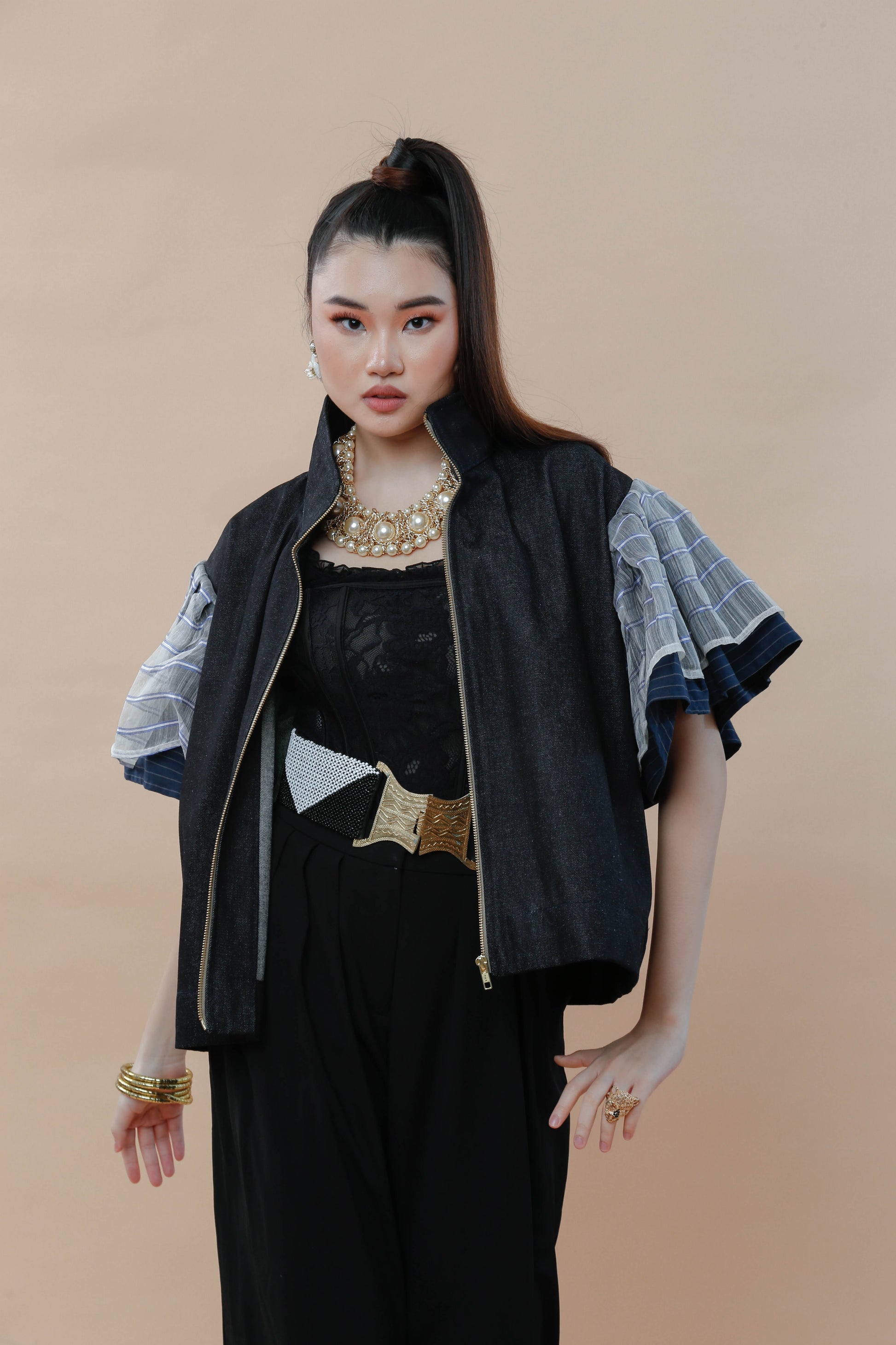 Bring the streets to your style with the Gantimpala Denim featuring bold striped pina sleeves. This edgy piece roars confidence, blending classic denim toughness with streetwear flair. Perfect for those who want to stand out and own their look with a playful attitude.