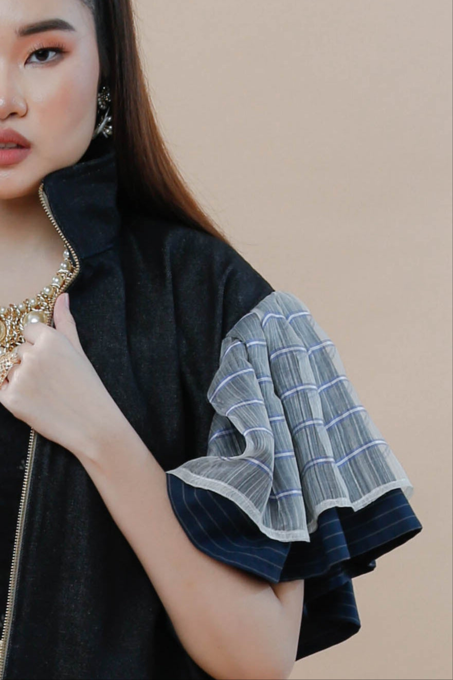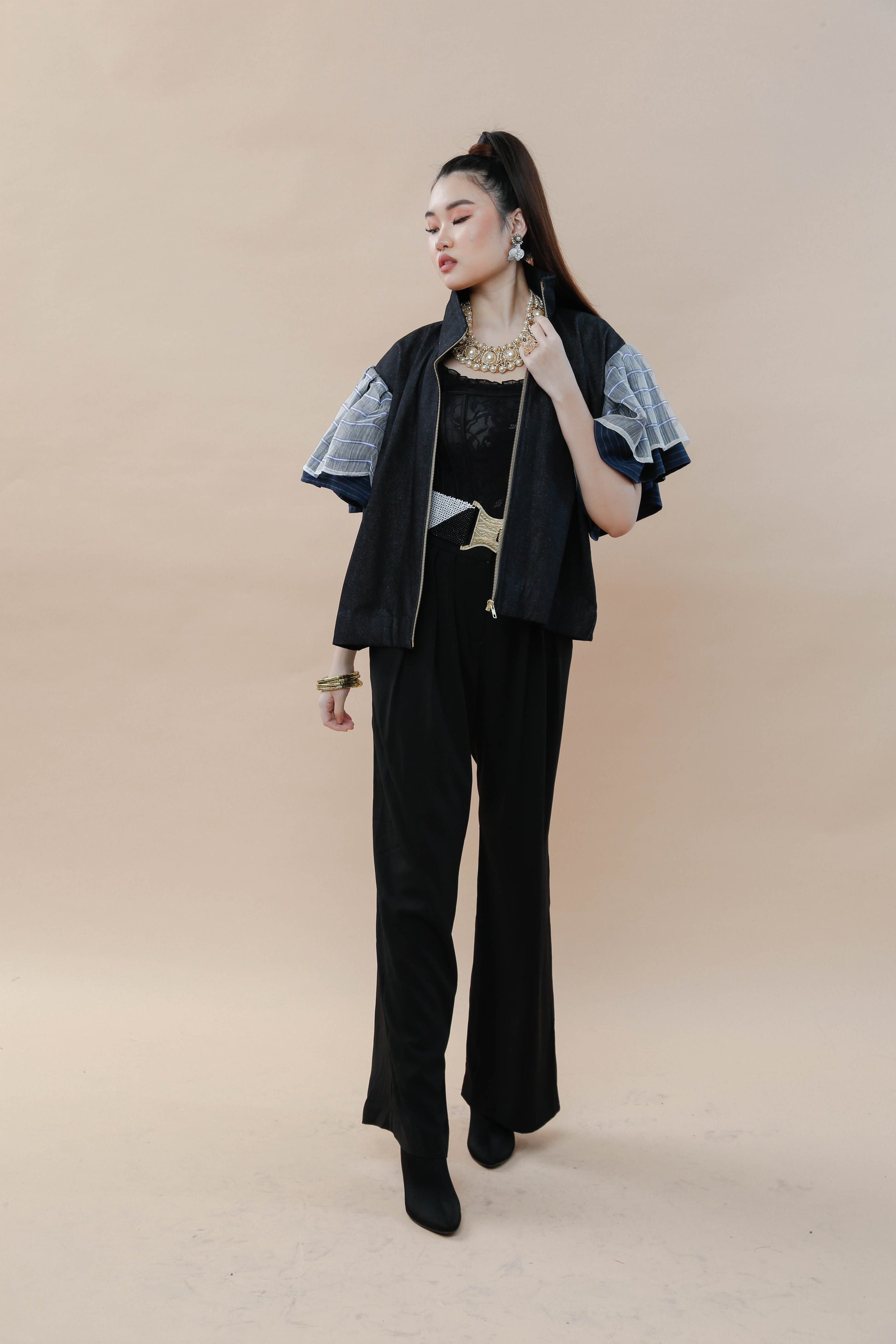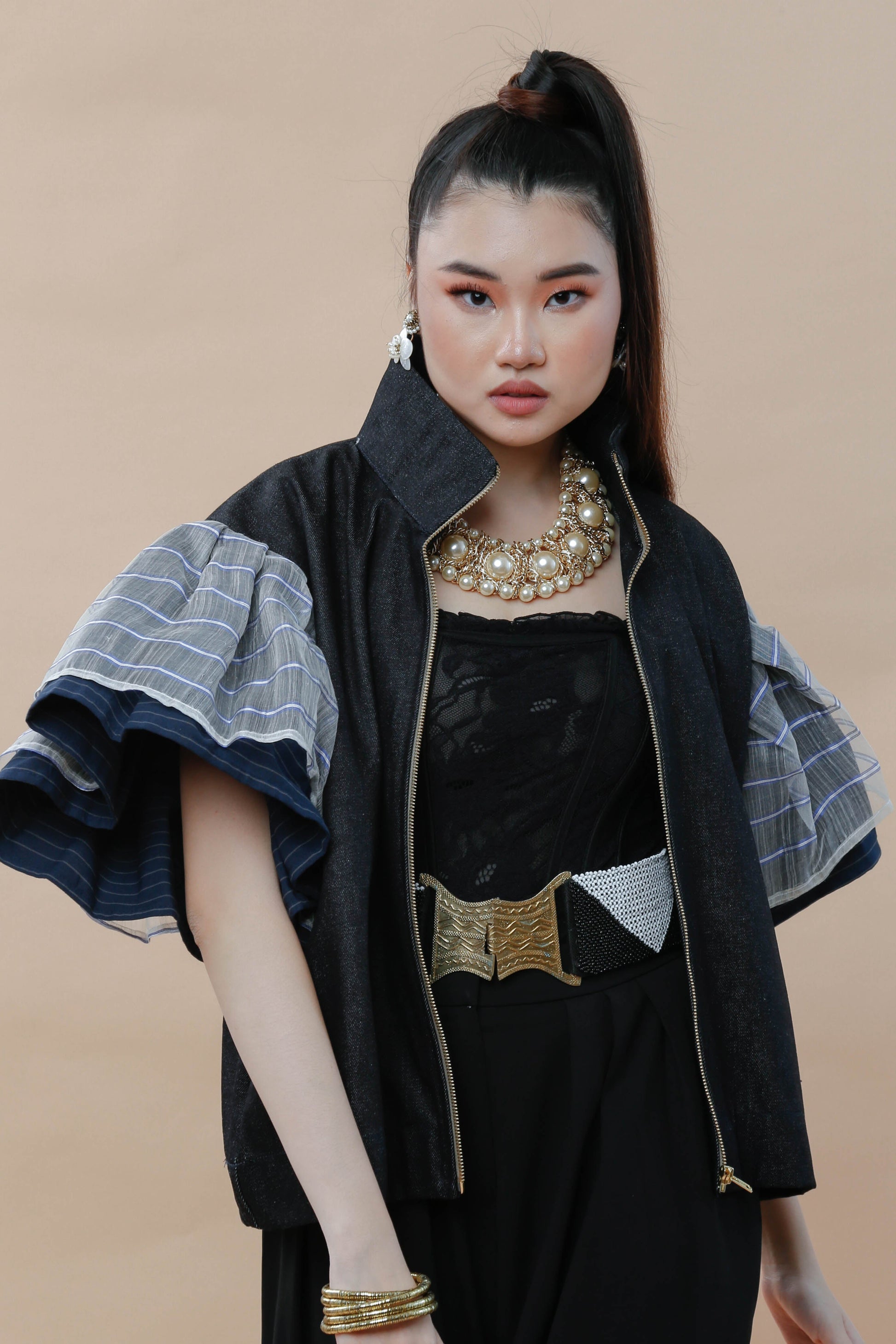 Bring the streets to your style with the Gantimpala Denim featuring bold striped pina sleeves. This edgy piece roars confidence, blending classic denim toughness with streetwear flair. Perfect for those who want to stand out and own their look with a playful attitude.