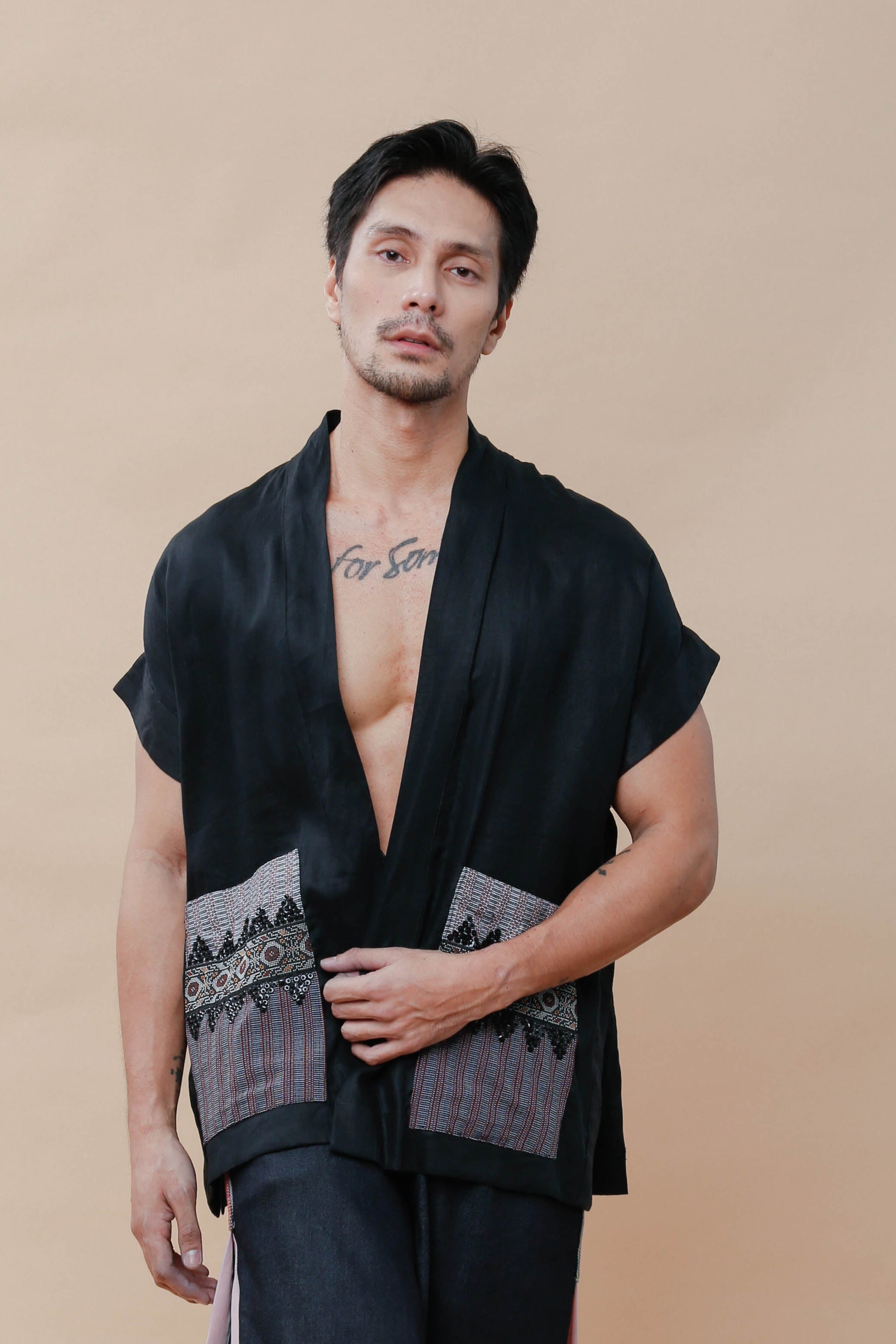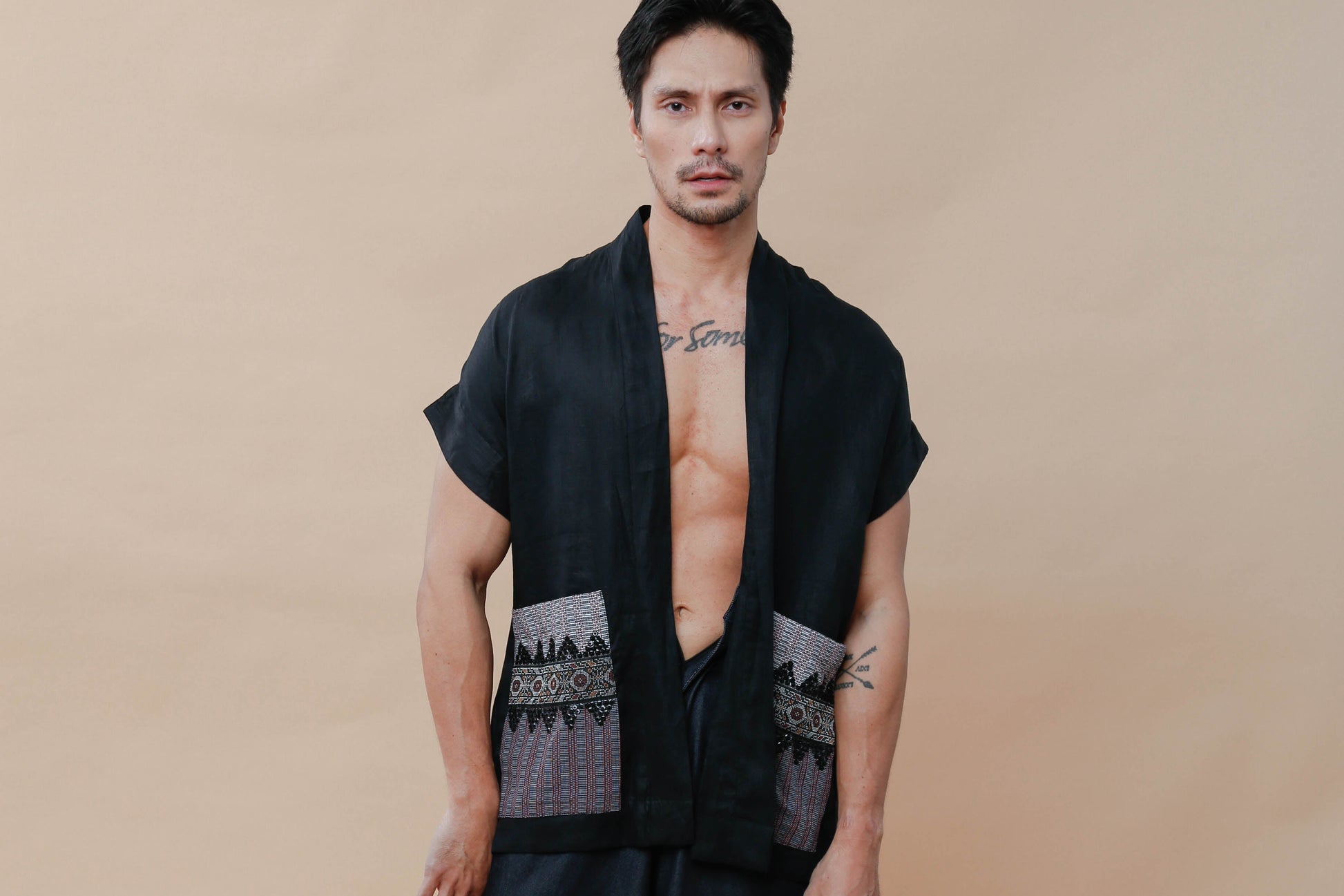 Maparaan Unisex Long Cover Up with Big Pockets in Binakol Weave Beads