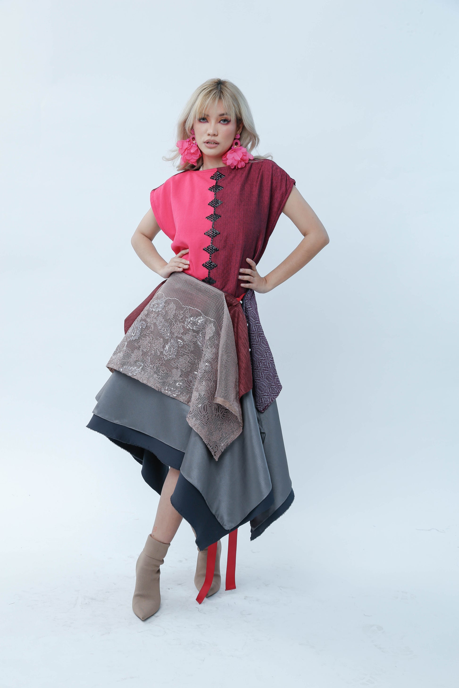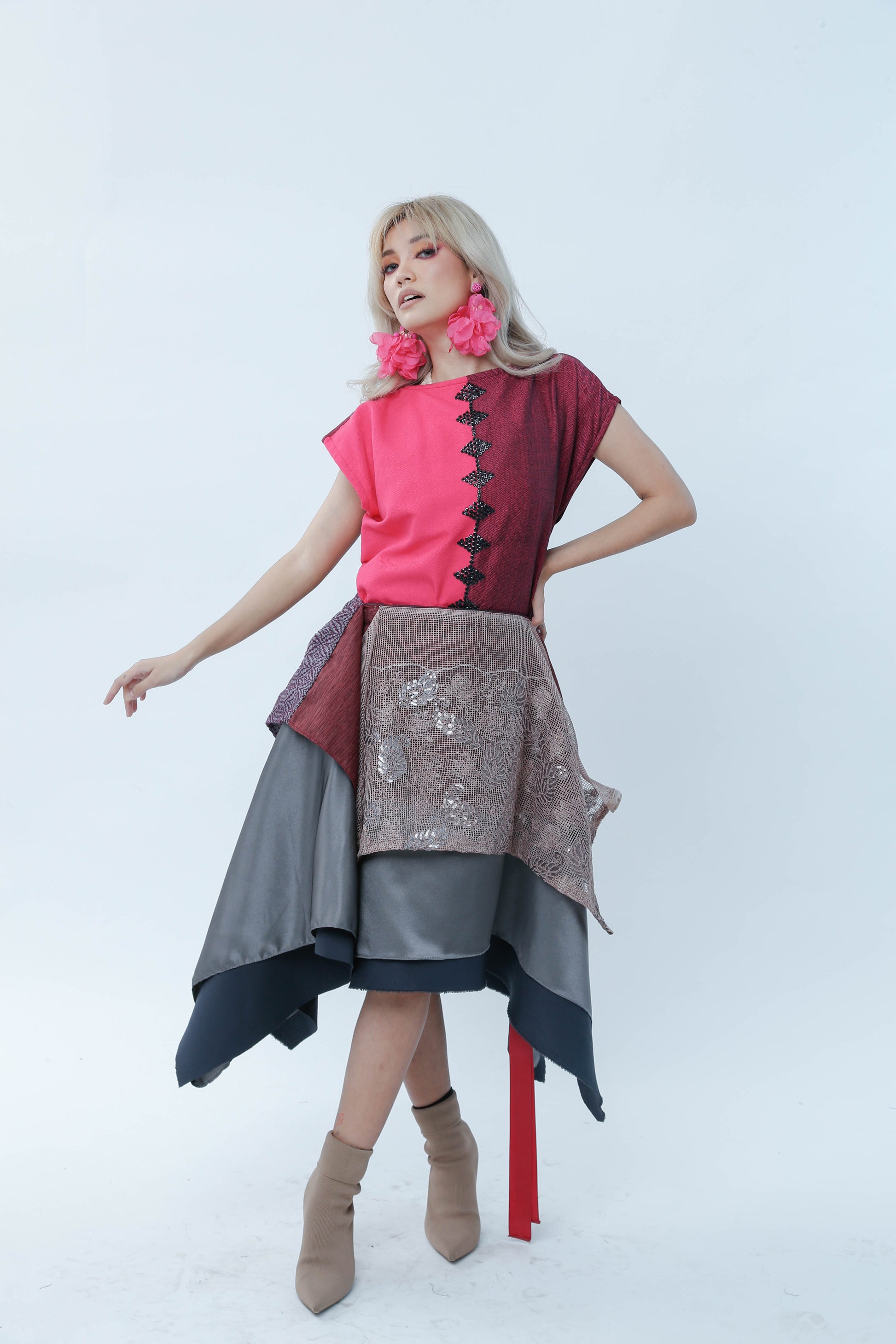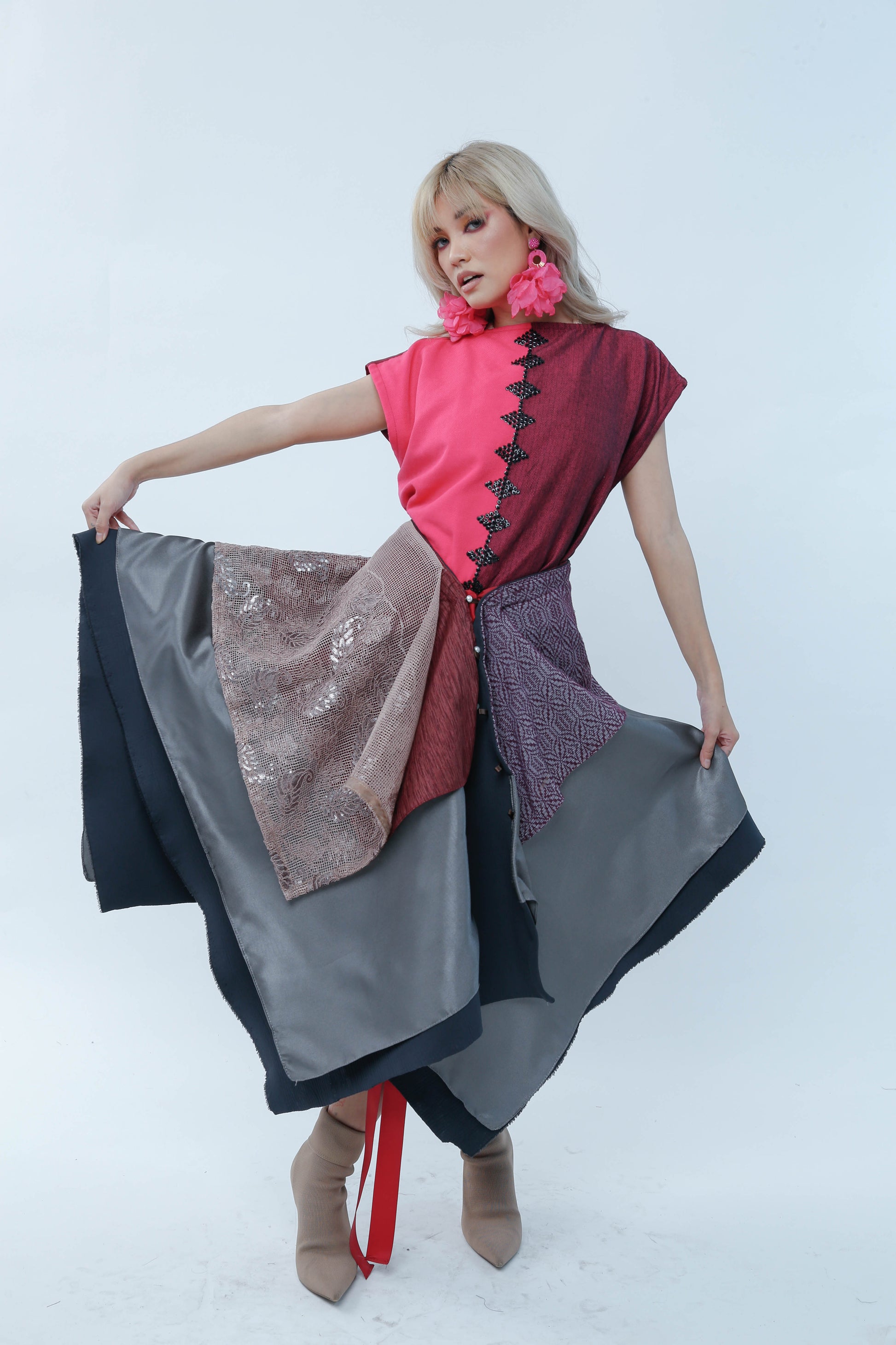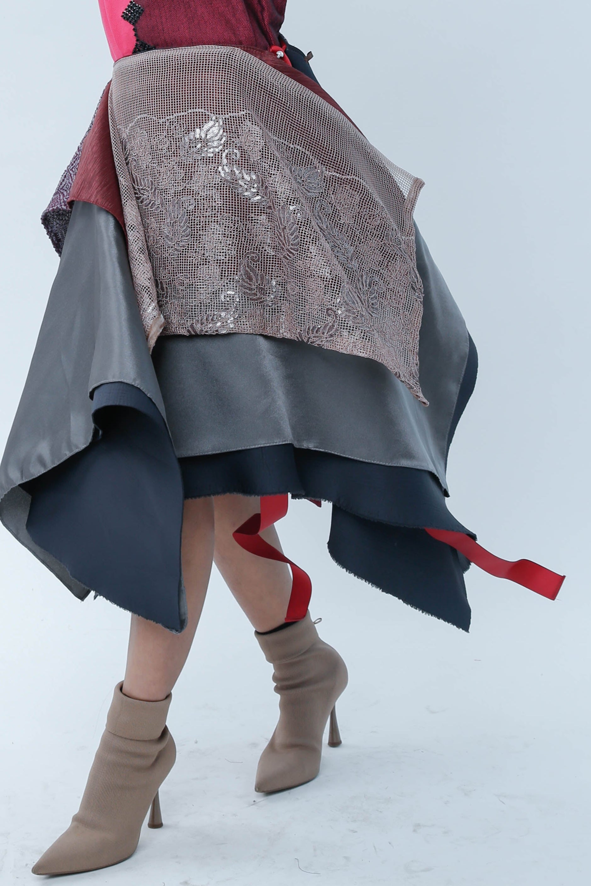 Elevate your wardrobe with this sophisticated grey skirt featuring a subtle two-toned design. Crafted for versatile styling, its freestyle silhouette allows multiple wear options, while the lace front detail adds an elegant touch. Perfect for transitioning seamlessly from day to evening wear.