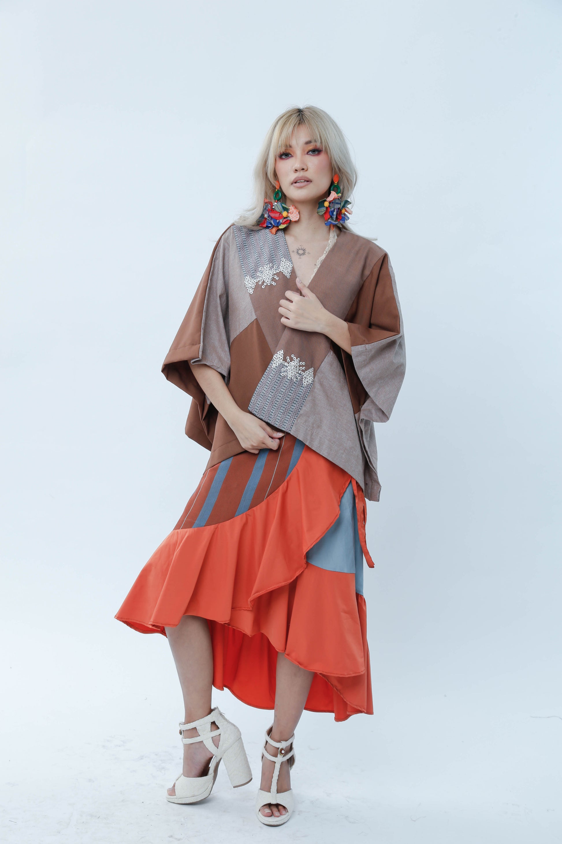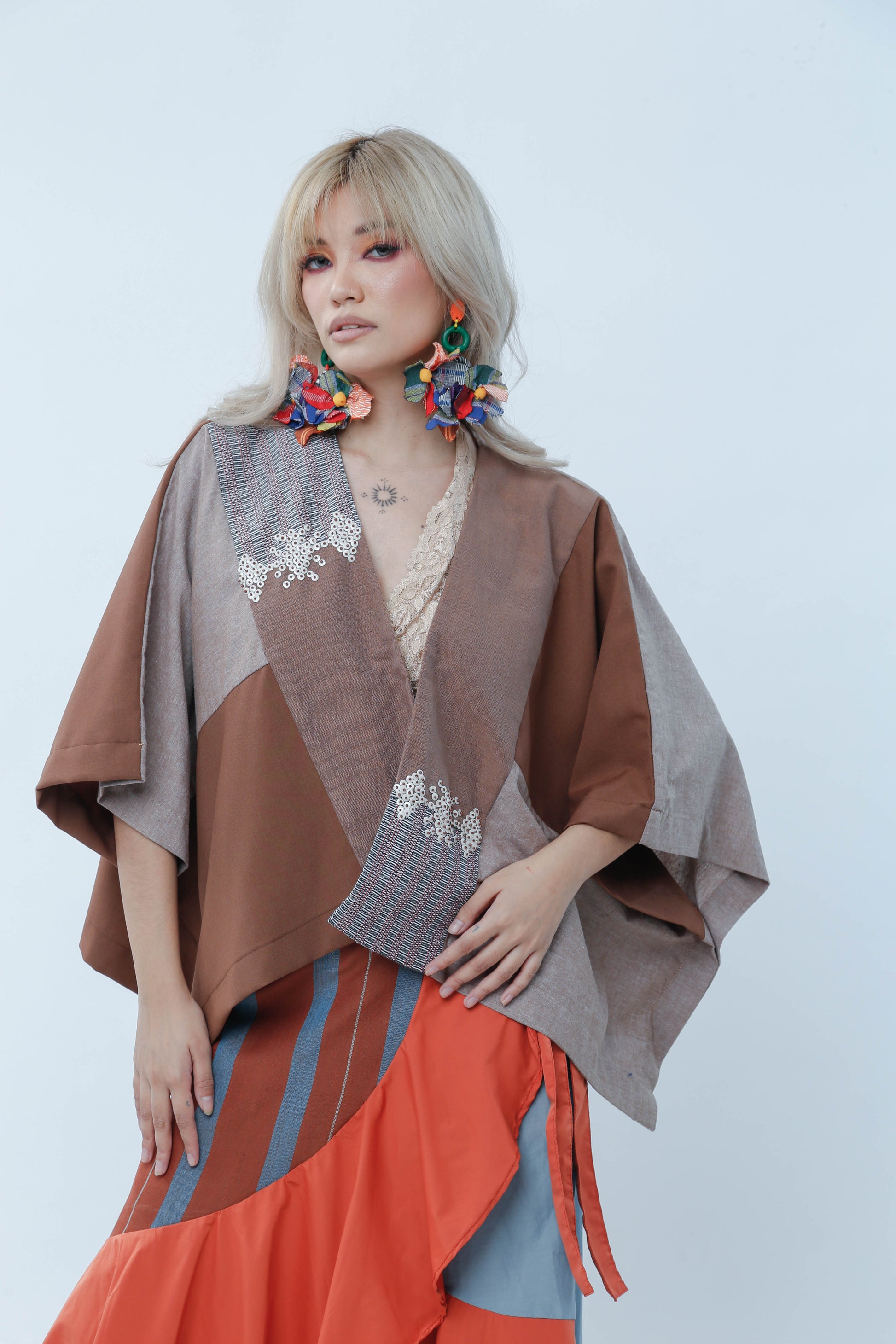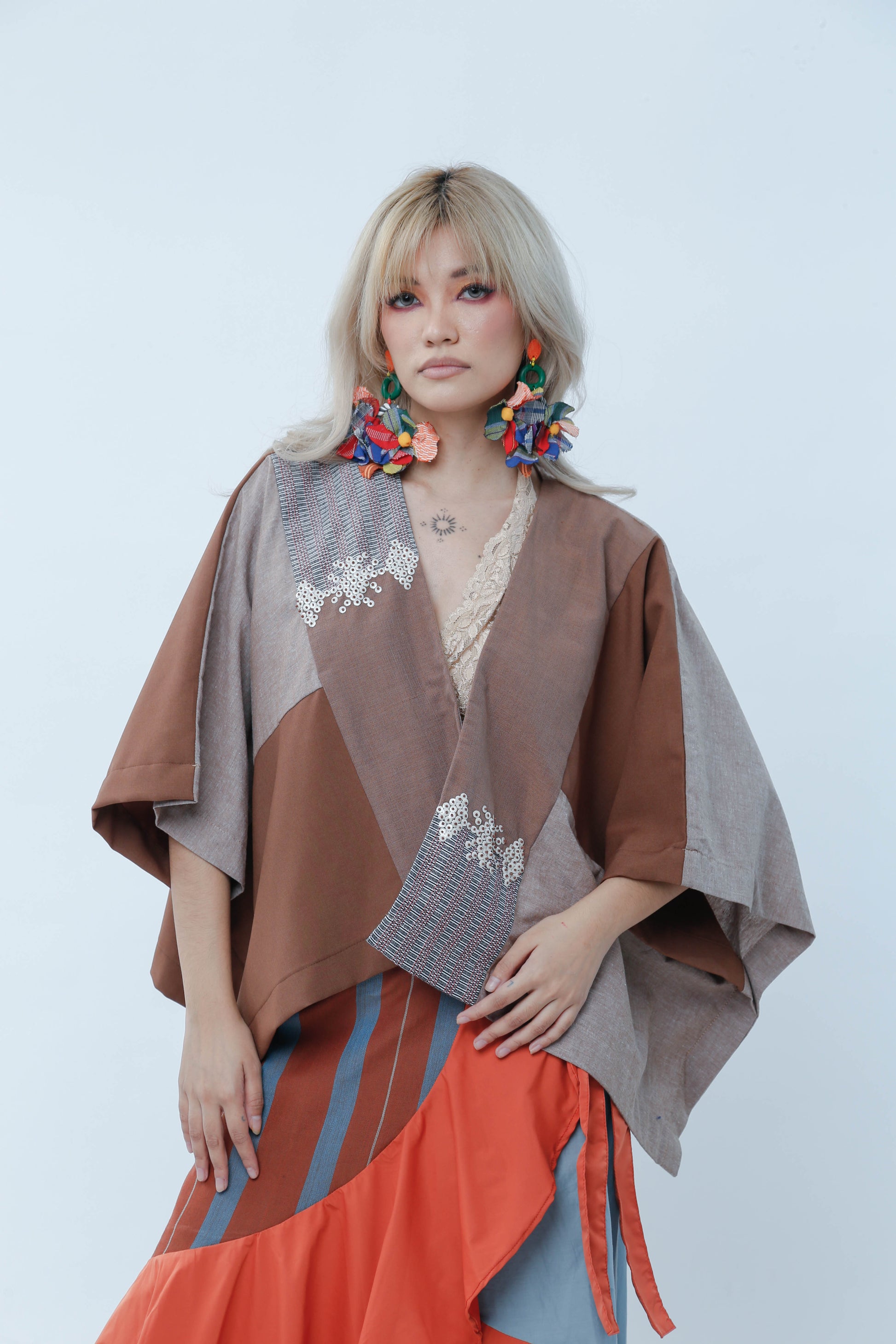 Celebrate tradition with a playful twist in the Heritage Poncho in Brown Binakol with Bead works. Showcasing rich shades of brown woven into Pinas Sadya’s classic silhouette, this poncho mixes cultural charm with lively bead details—making it the perfect cozy companion for style that’s both timeless and fun.