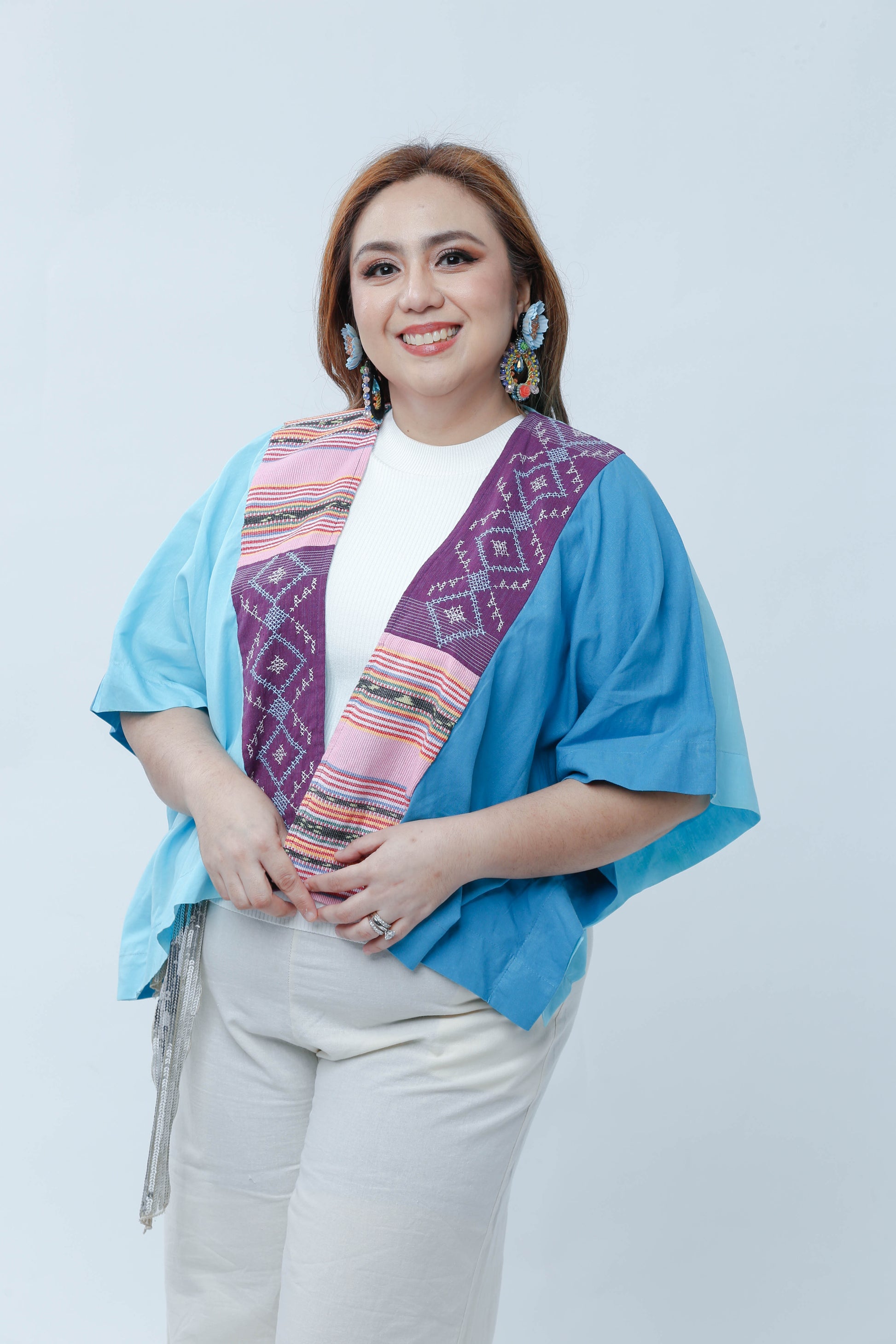Experience timeless elegance with the Heritage poncho in harmonious shades of blue and purple. Crafted to offer both warmth and style, its rich colors and refined design make it a versatile addition to your wardrobe, perfect for layering during cooler days while elevating your look with a touch of sophistication.
