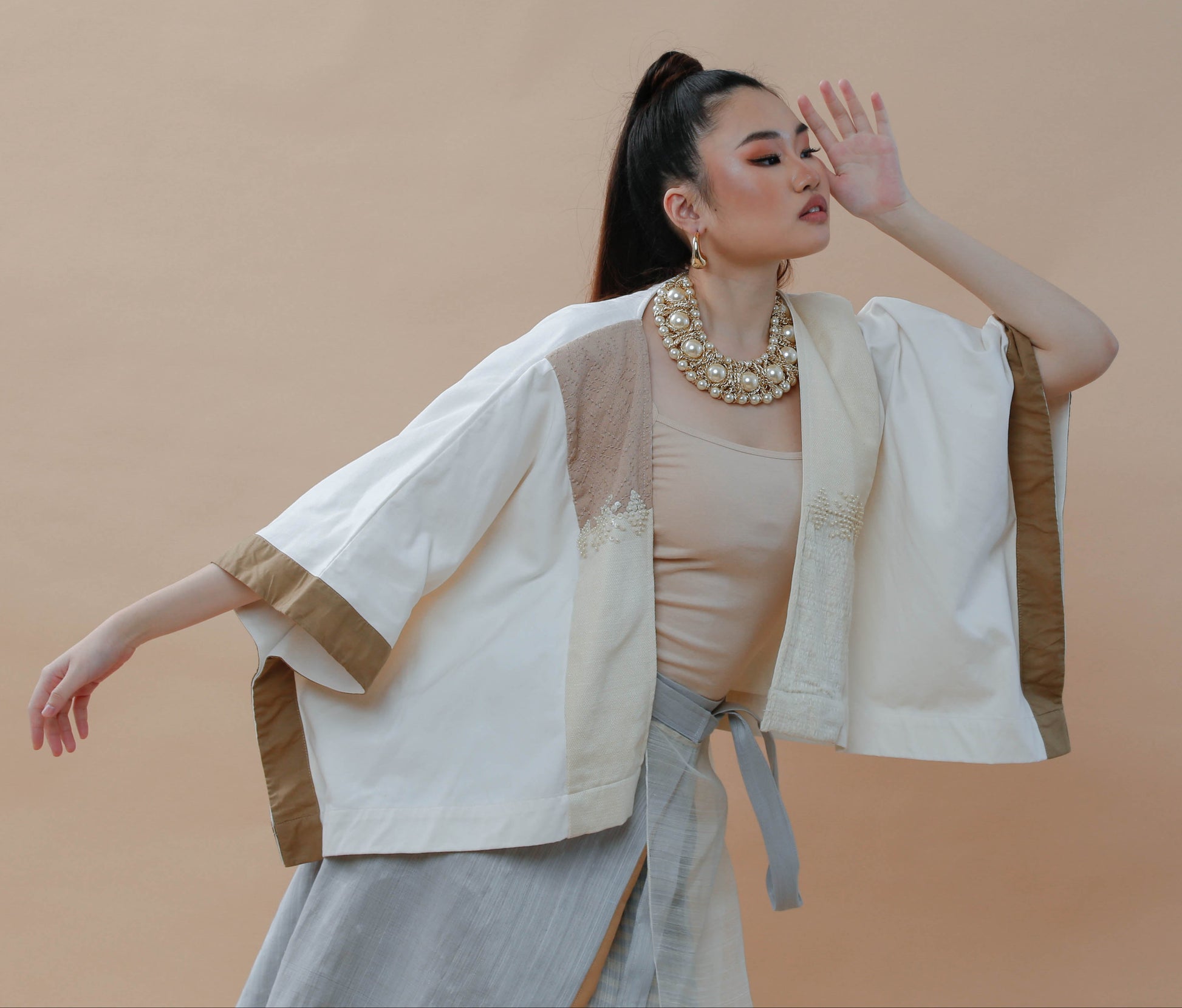 Heritage Poncho in Cream Kalinga and Negros Weaves
