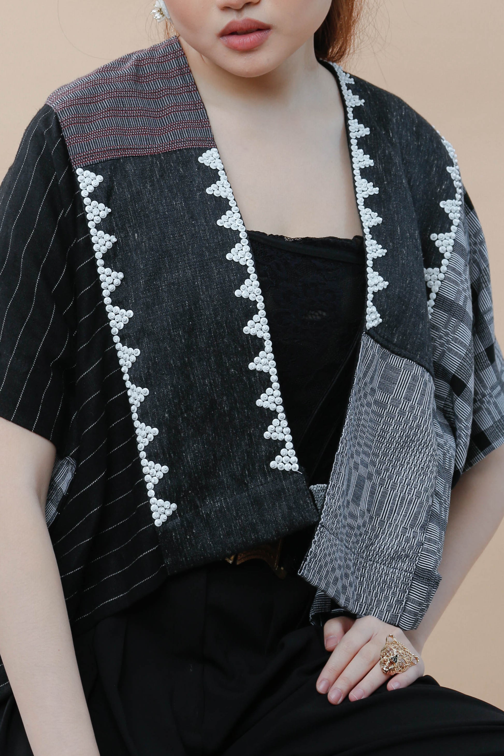 Heritage Poncho with Mixed Binakol with Beaded Back