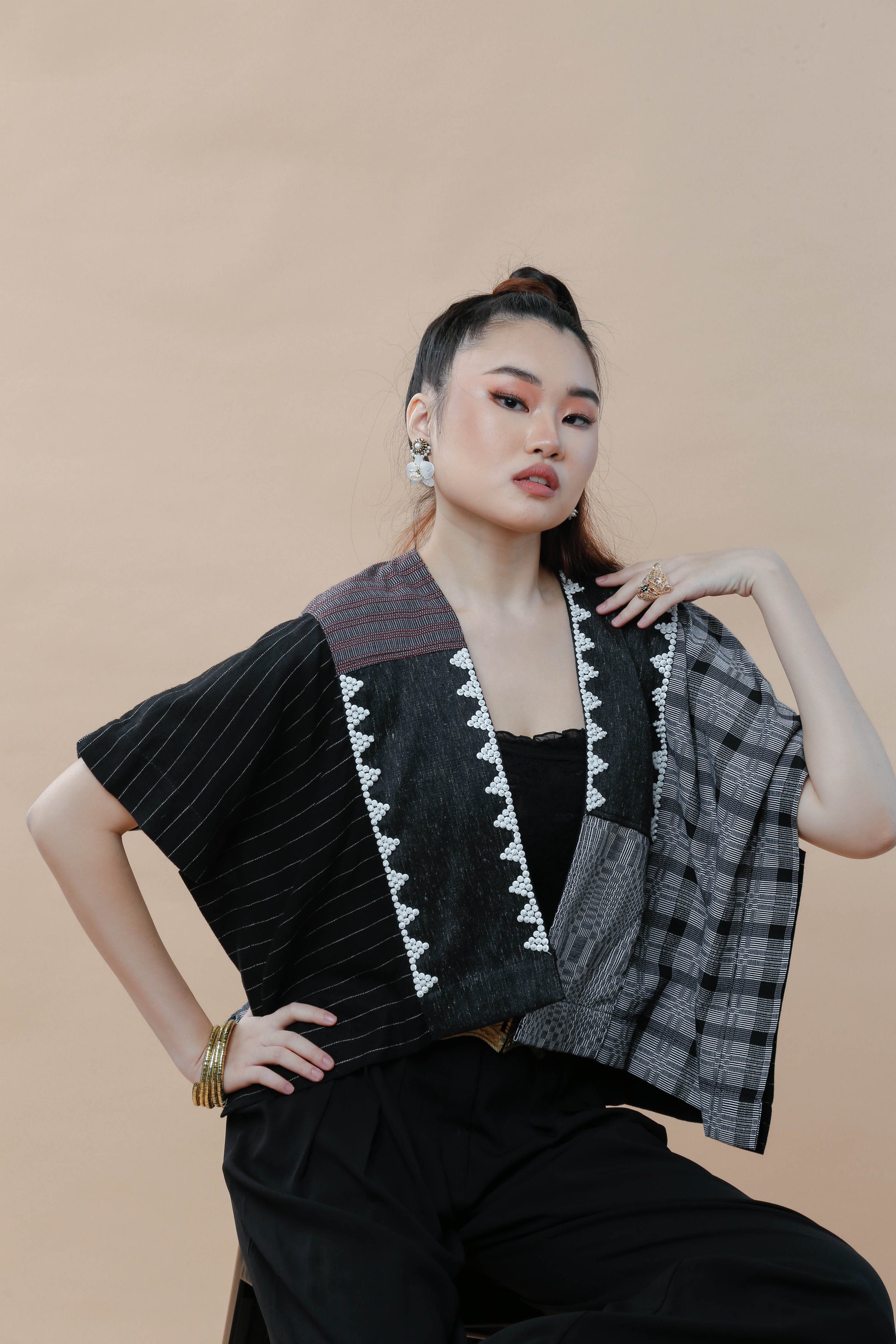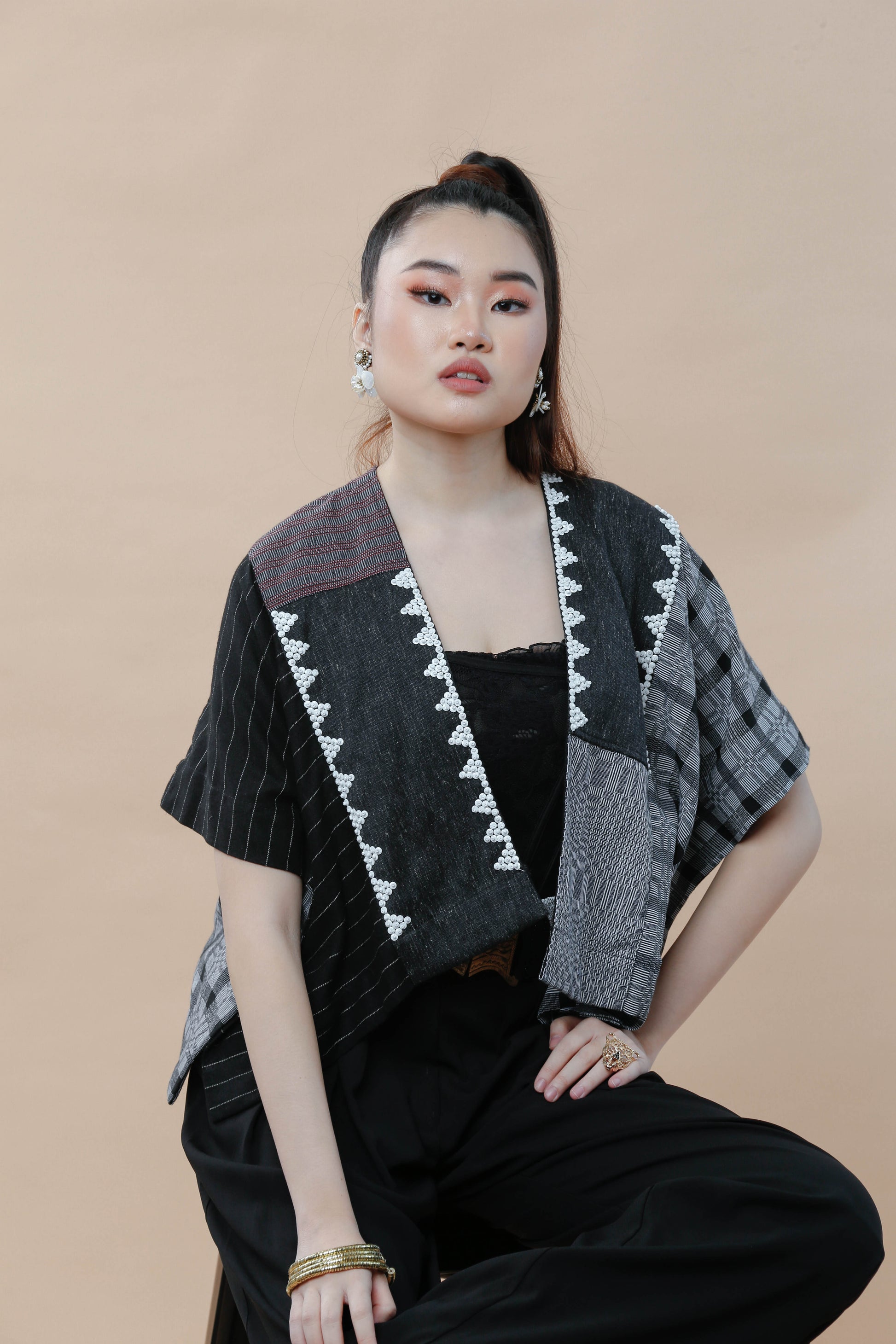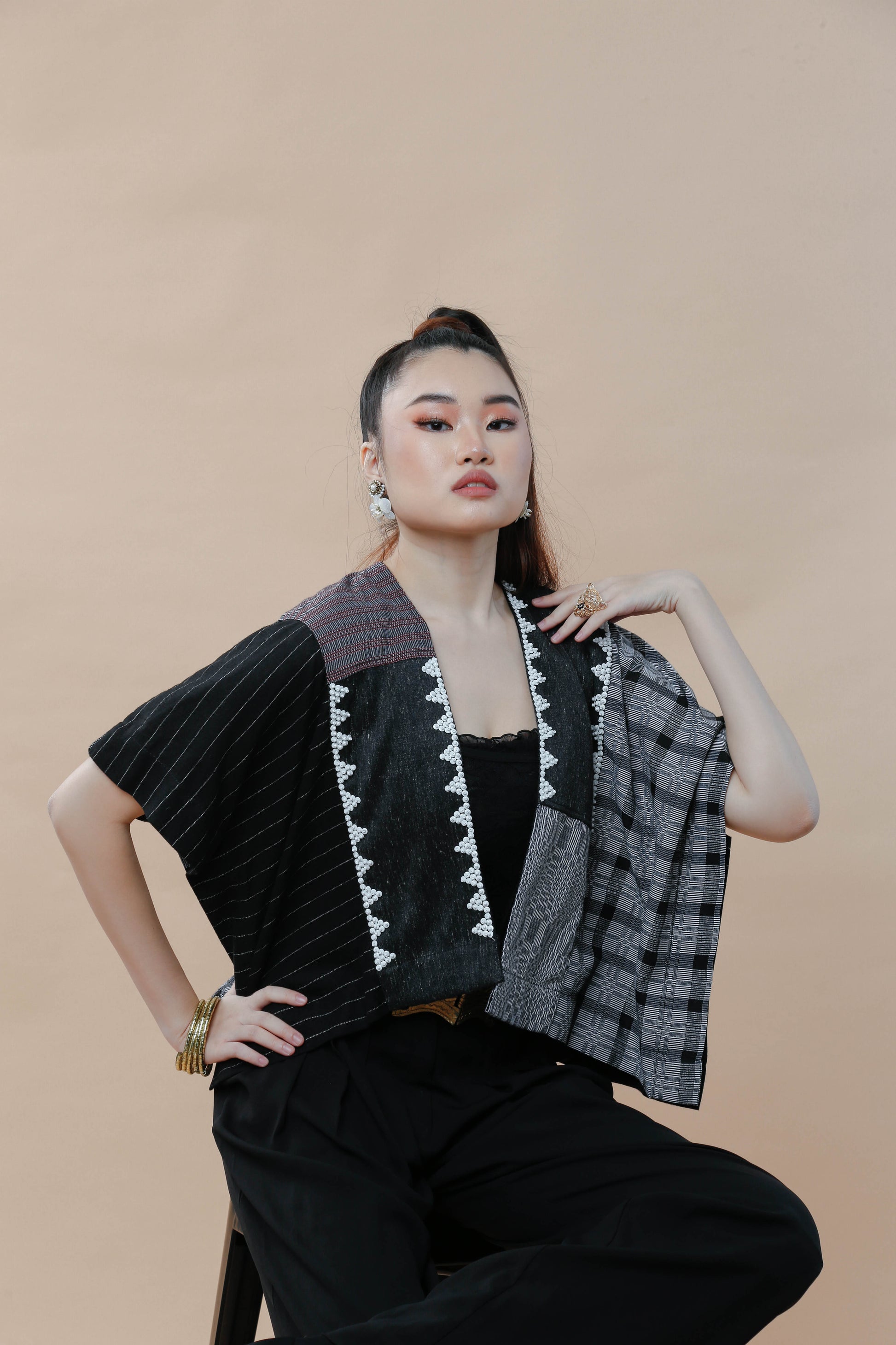 Celebrate timeless style with the Heritage Poncho featuring the classic Pinas Sadya silhouette. This playful piece combines traditional Binakol weaving with a beaded back for a vibrant, eye-catching look. Perfect for adding a touch of Filipino heritage flair to any outfit, it’s both a conversation starter and a cozy layer. Step out with confidence and a wink of cultural charm!