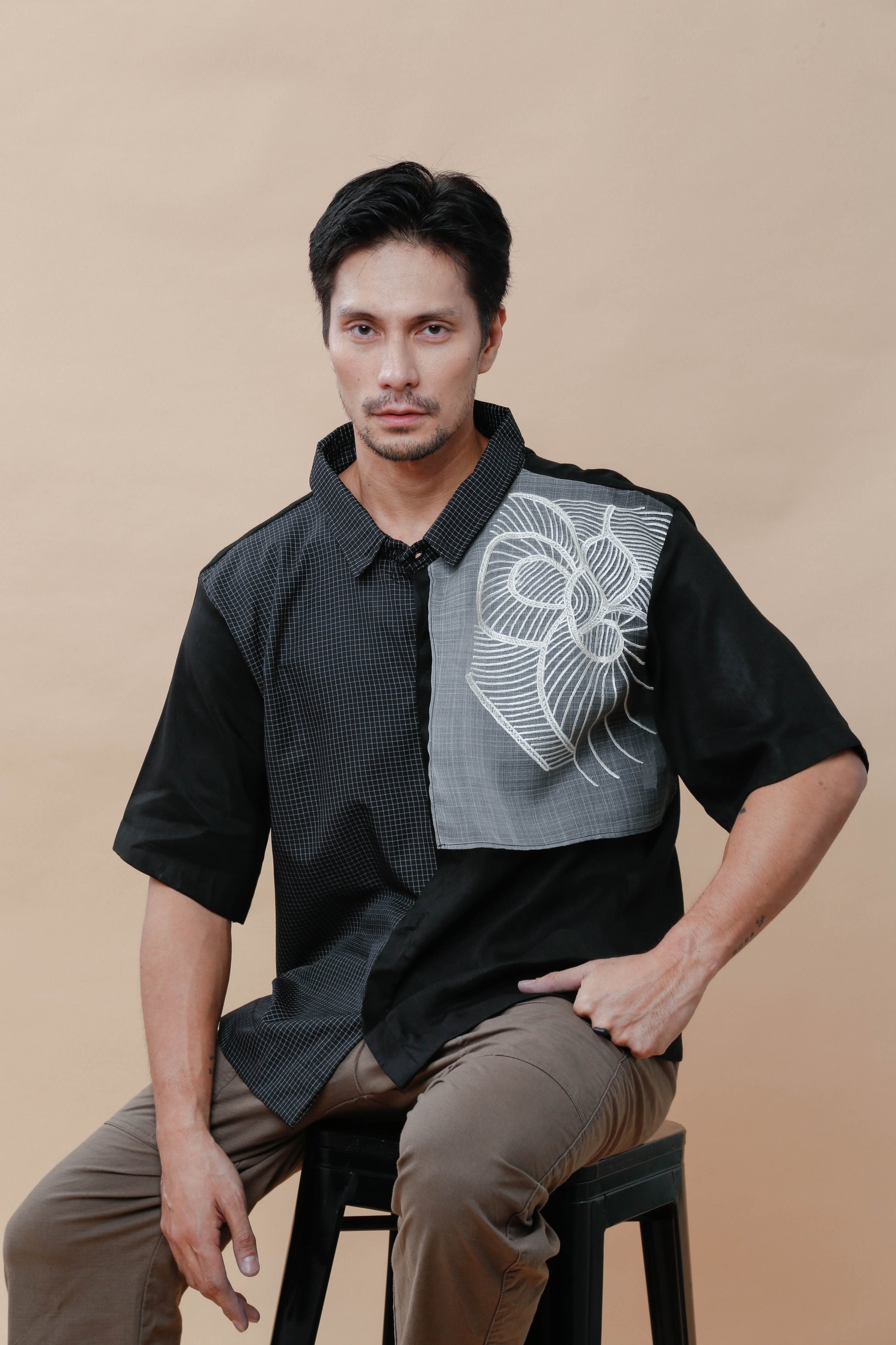 Pusong Iniwan Men's Polo in Black with Piña Accent