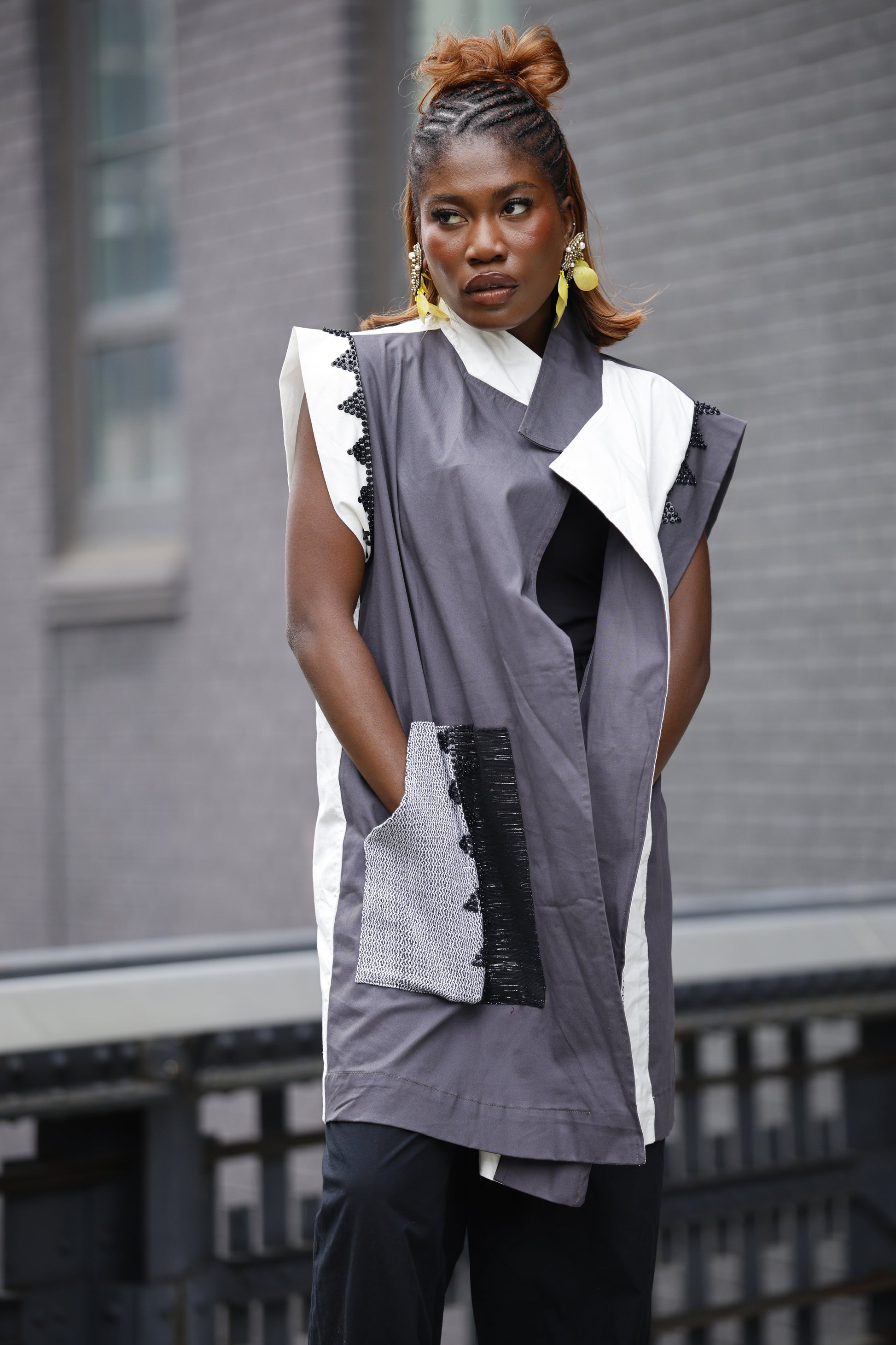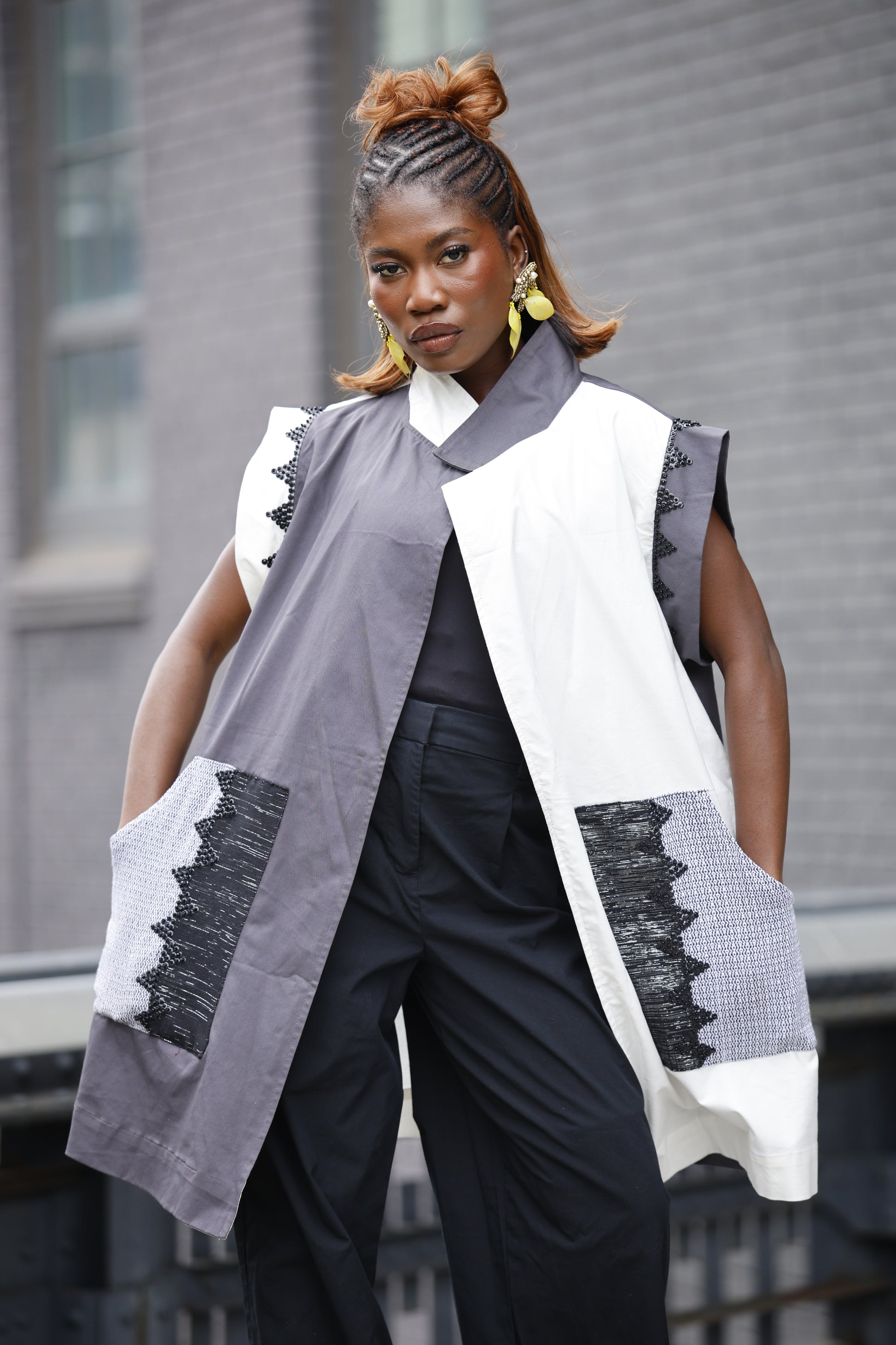 Elevate your wardrobe with the INUSARA Trench in White and Grey, featuring intricate binakol patterns that blend traditional craftsmanship with contemporary elegance. This versatile trench offers a refined silhouette and timeless appeal, perfect for making a subtle yet sophisticated statement in any setting.