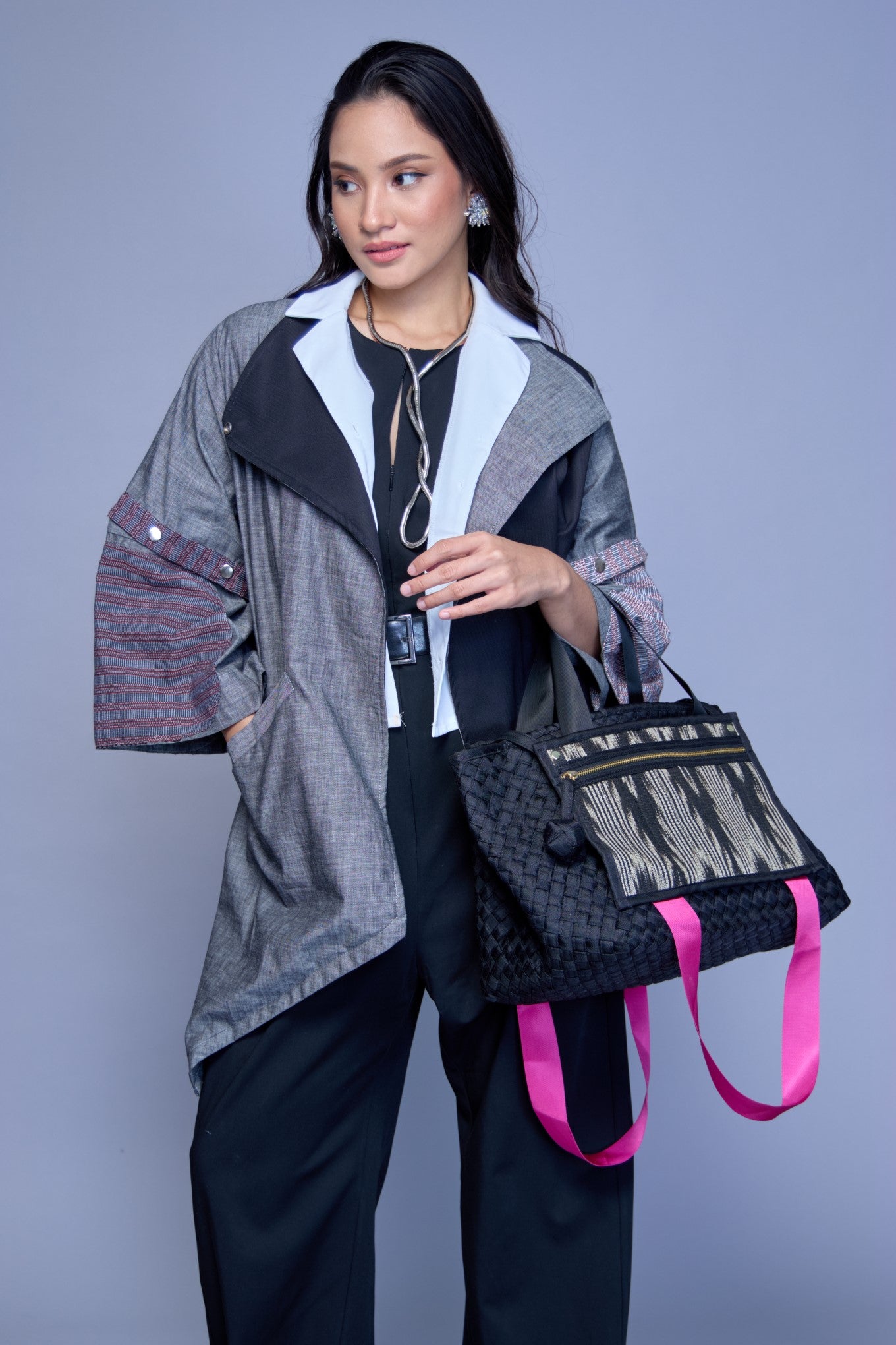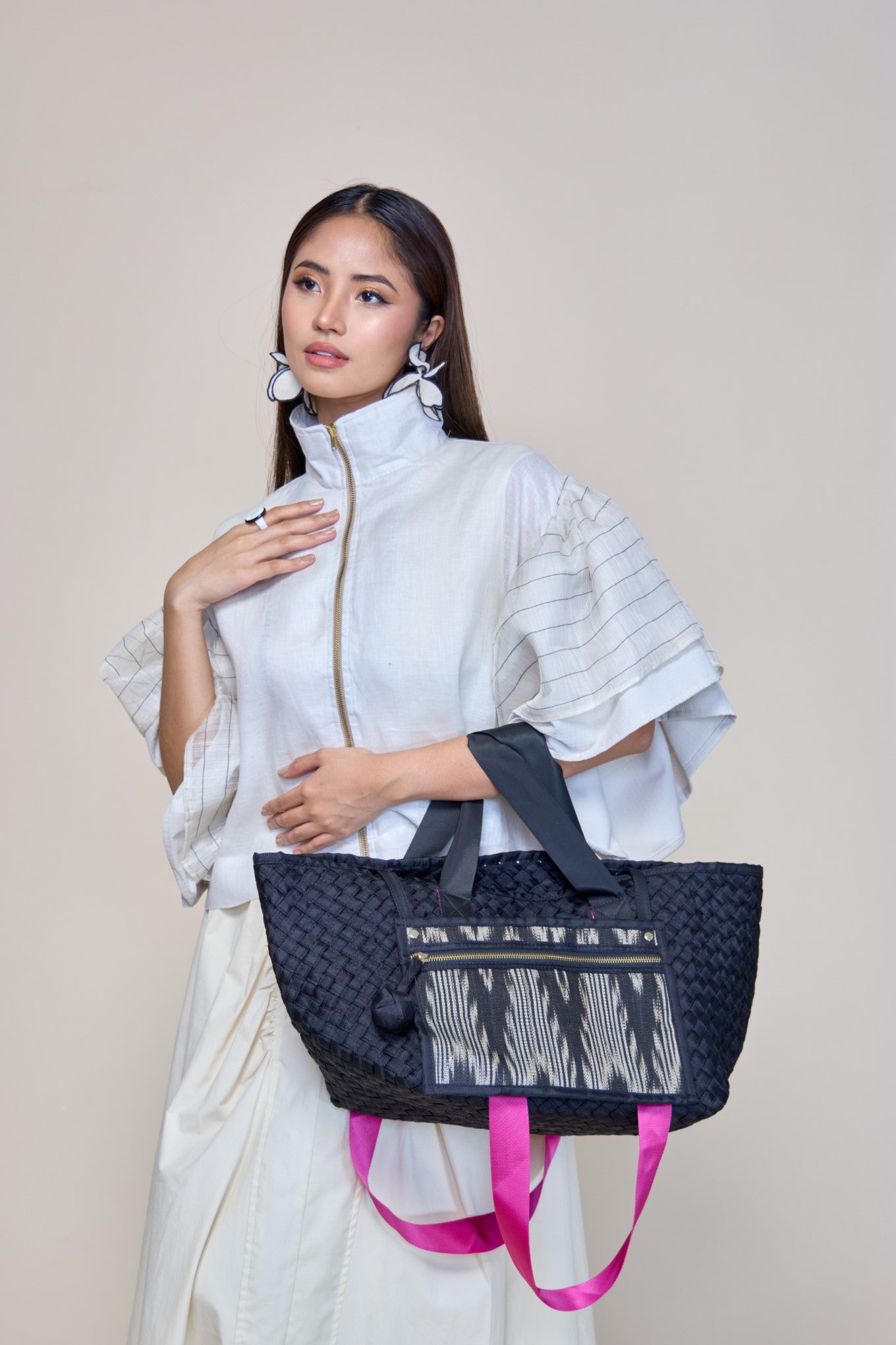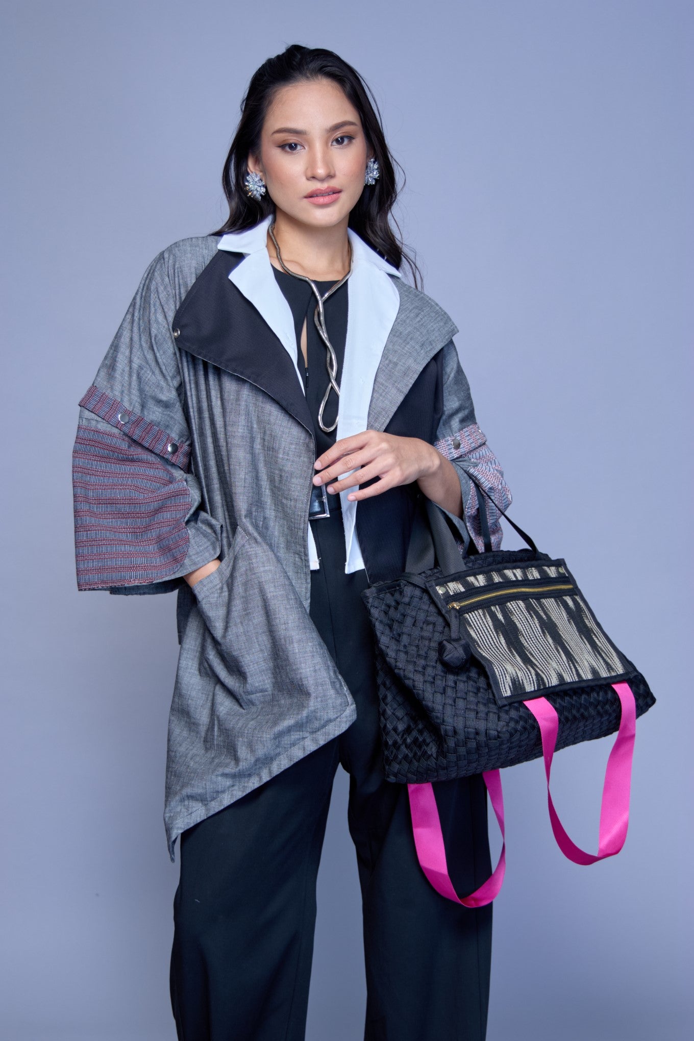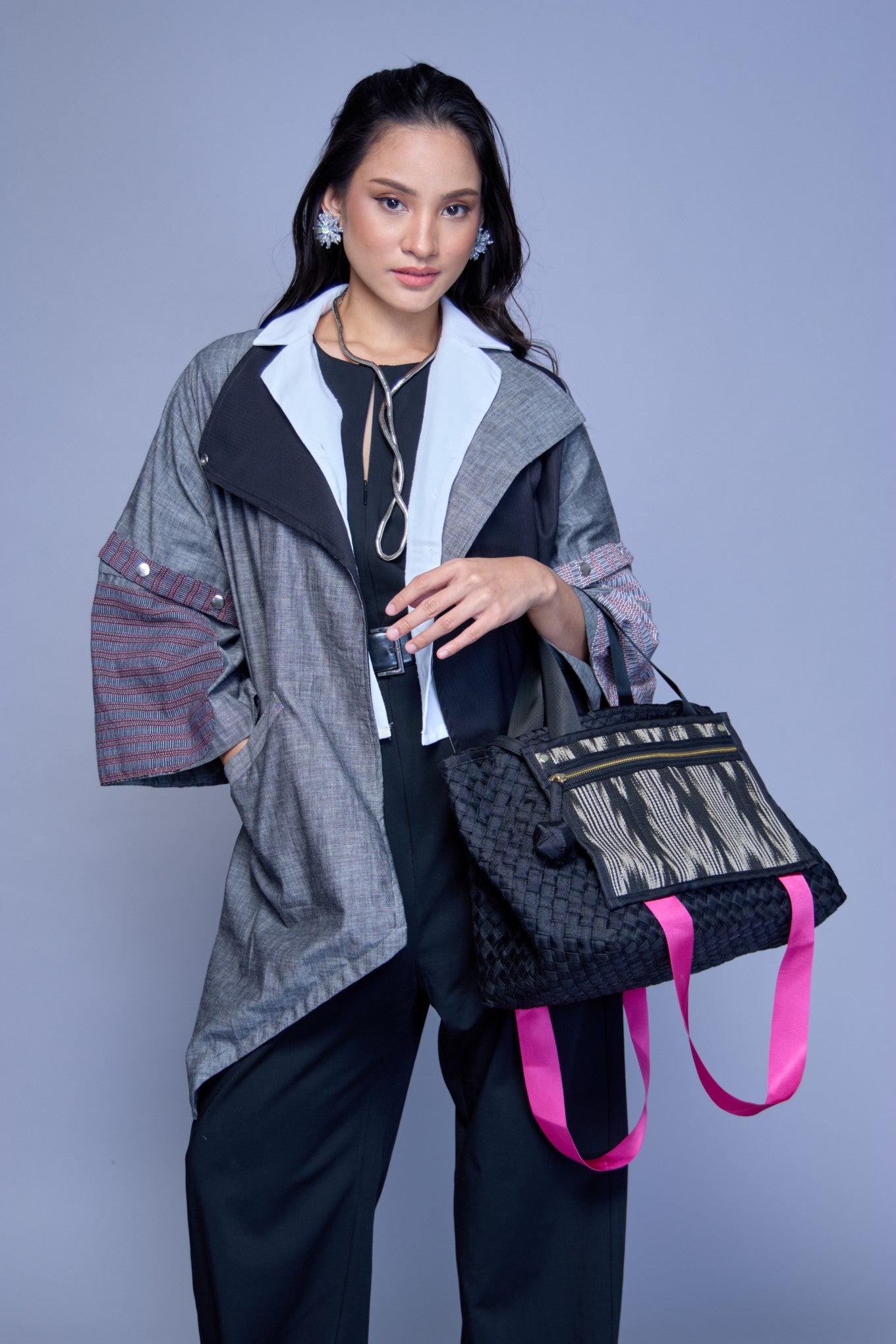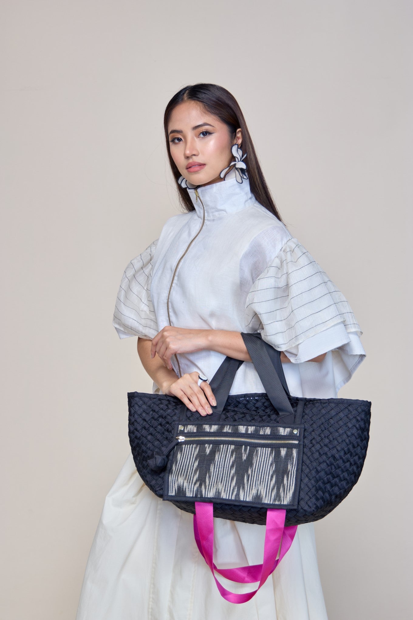 Inspired by the dynamic spirit of Sipa Takraw and the sustainable practice of using scrap fabric in Banig, this tote bag is a harmonious blend of tradition and contemporary design. Crafted with premium Philippine weaves and eco-friendly materials, it embodies the principles of circular fashion. Its interchangeable flap and two-way shape allow for versatile use, making it perfect for everyday errands or special occasions. With its unique blend of colors, textures, and details, this bag is a celebration of Filipino heritage, a testament to sustainable craftsmanship, and a stylish accessory for the eco-conscious individual.