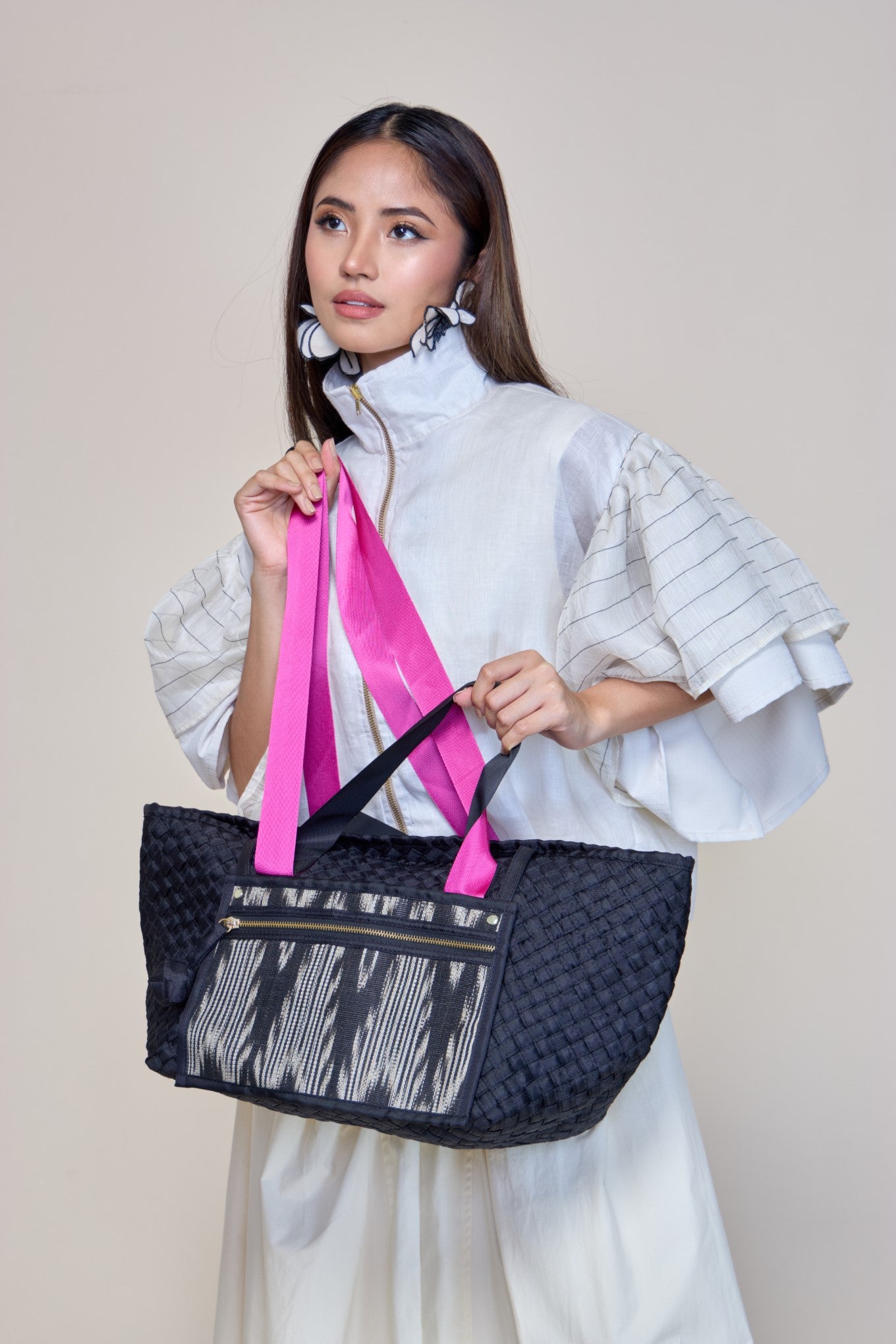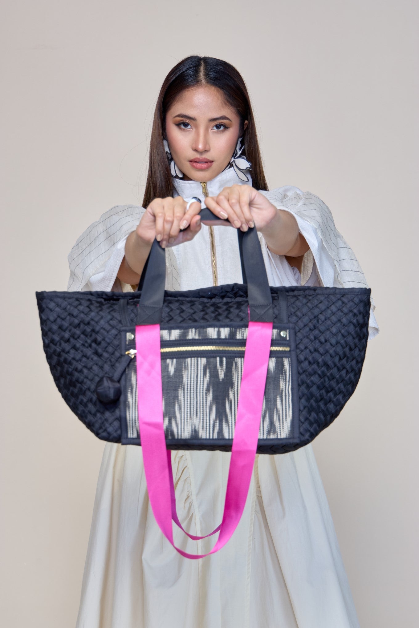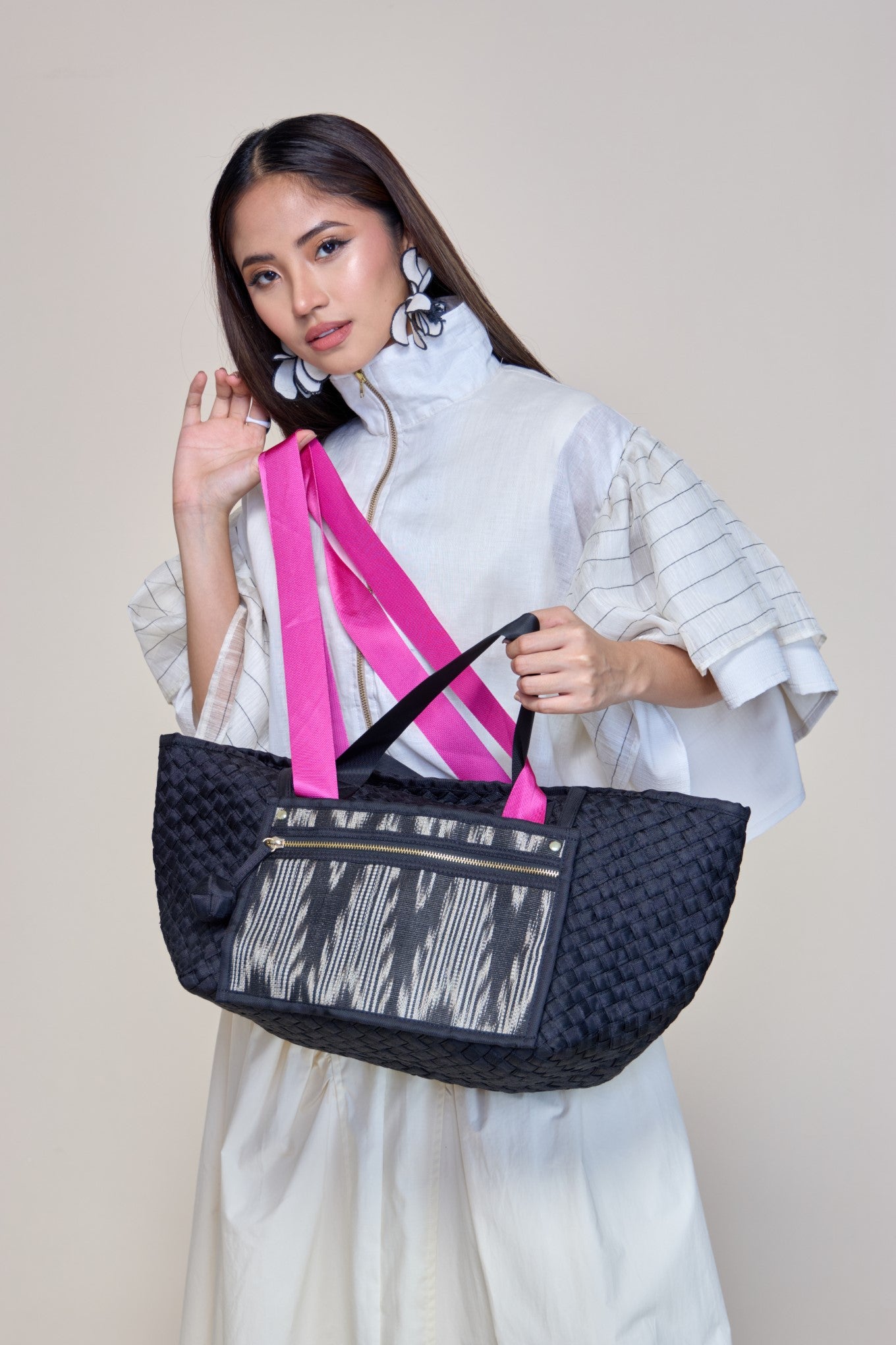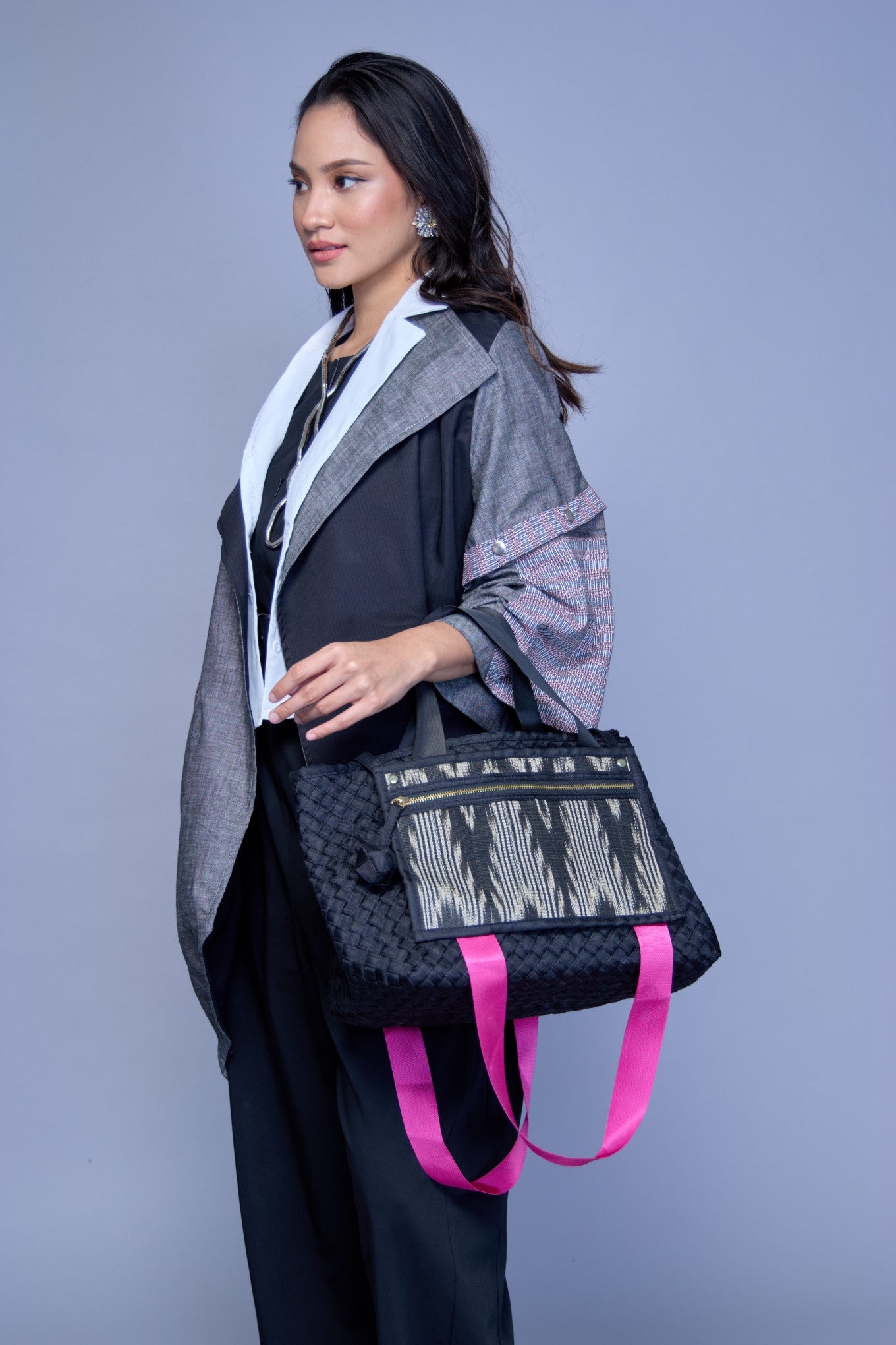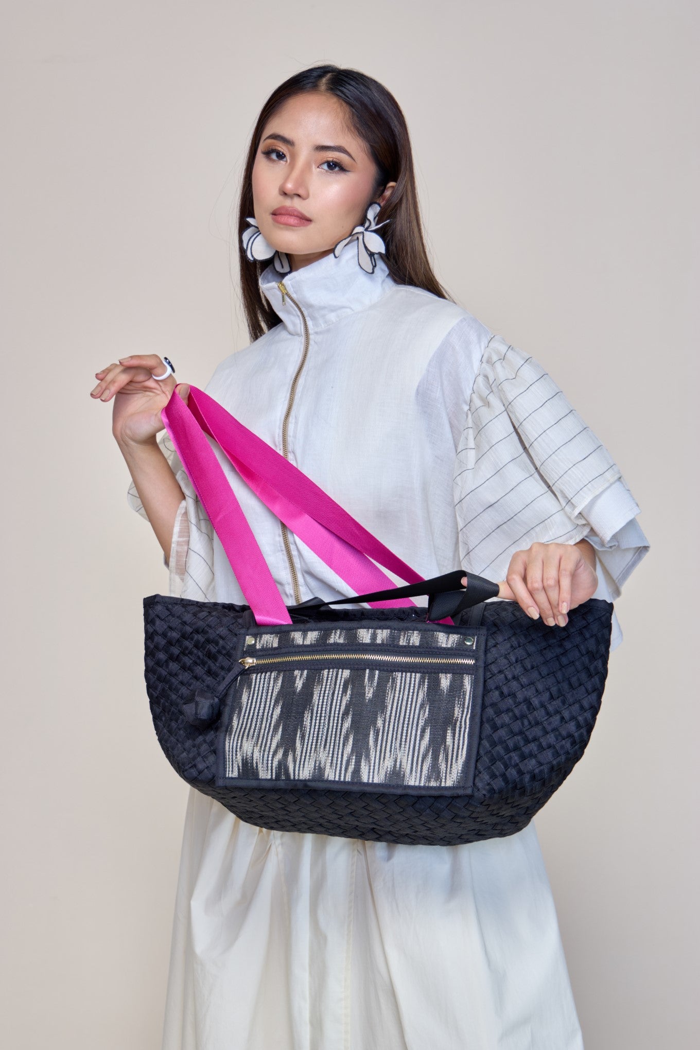 Inspired by the dynamic spirit of Sipa Takraw and the sustainable practice of using scrap fabric in Banig, this tote bag is a harmonious blend of tradition and contemporary design. Crafted with premium Philippine weaves and eco-friendly materials, it embodies the principles of circular fashion. Its interchangeable flap and two-way shape allow for versatile use, making it perfect for everyday errands or special occasions. With its unique blend of colors, textures, and details, this bag is a celebration of Filipino heritage, a testament to sustainable craftsmanship, and a stylish accessory for the eco-conscious individual.