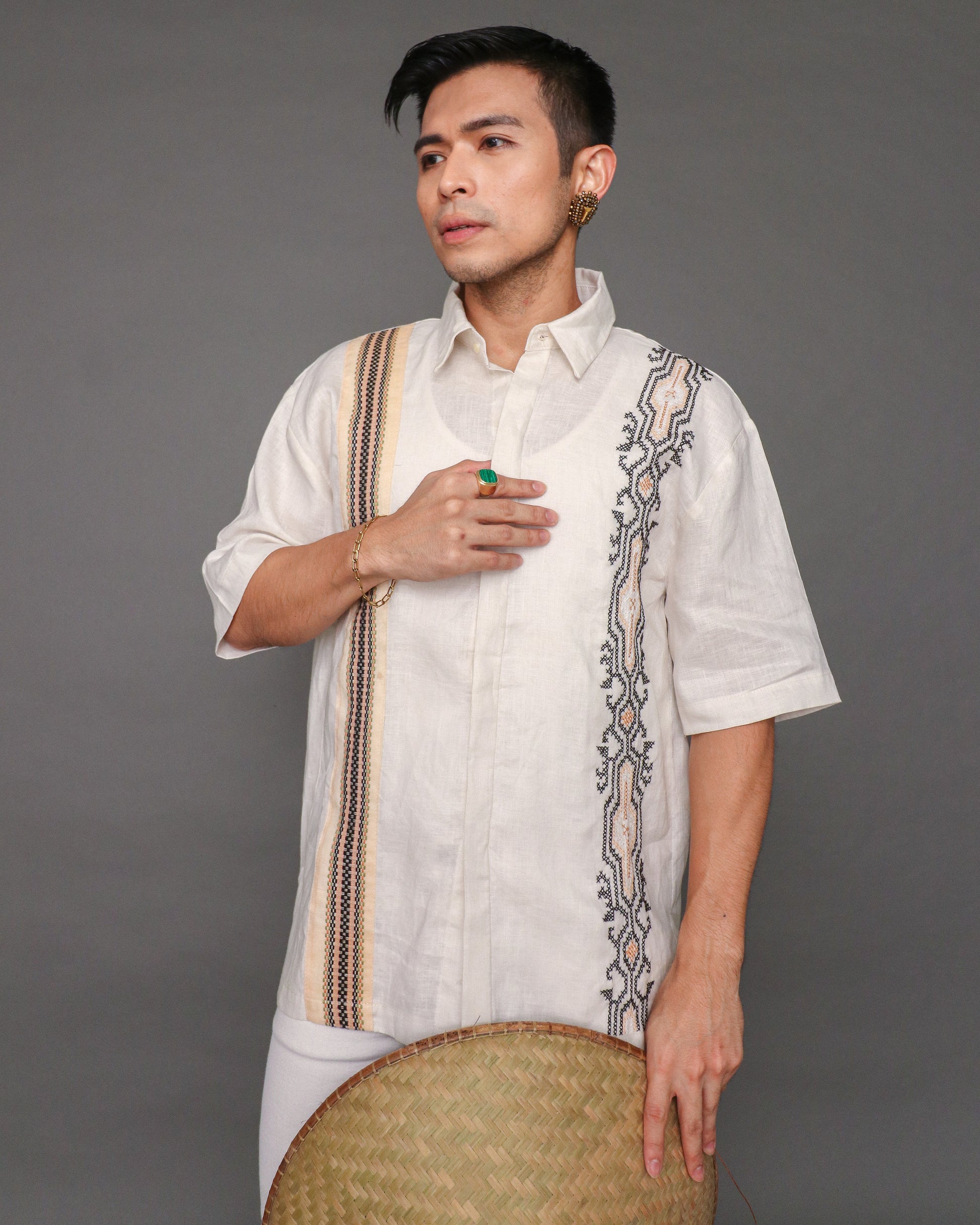 Maalaga Linen Polo in Nesif Embroidery by Tboli Tribe