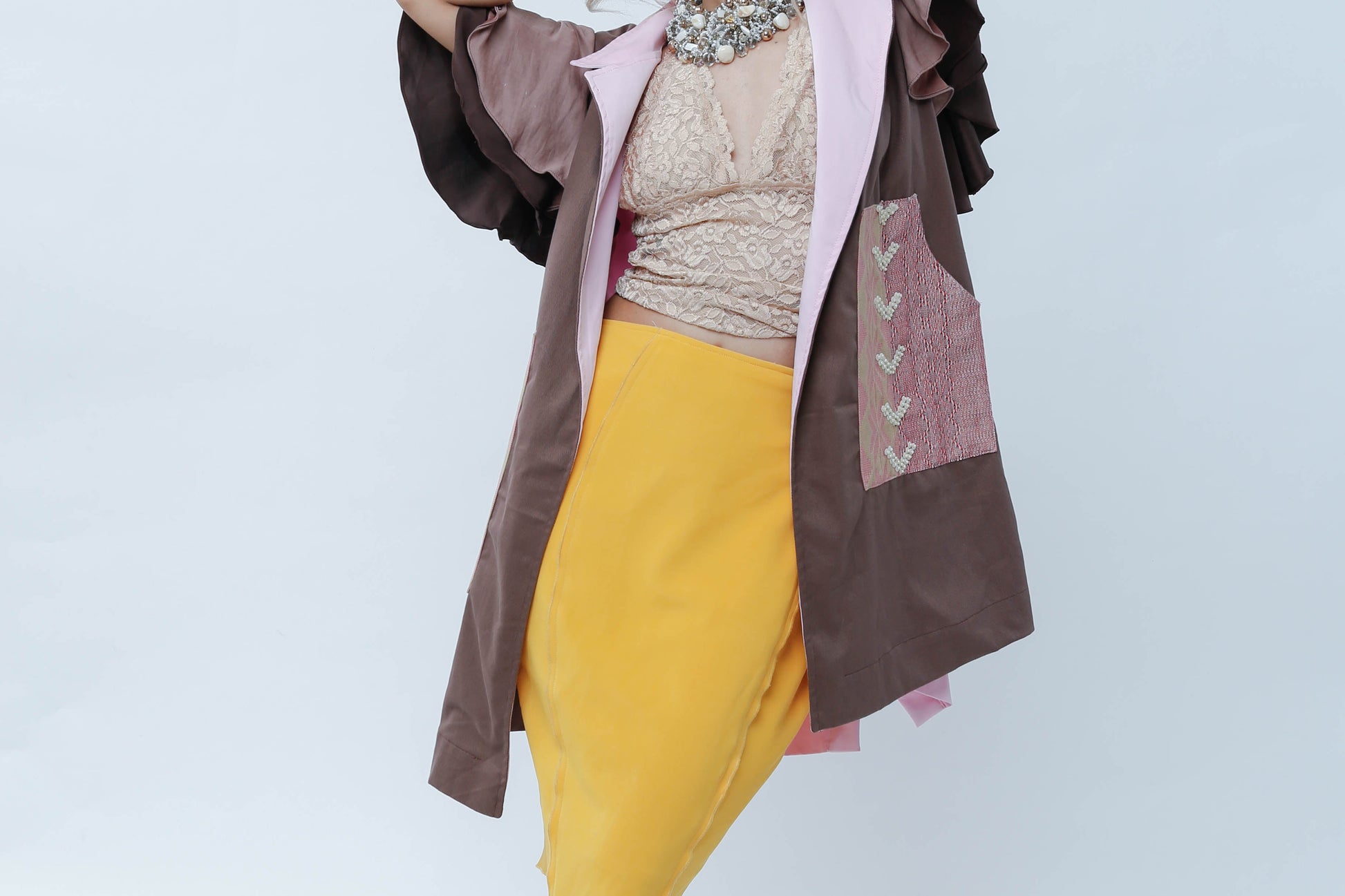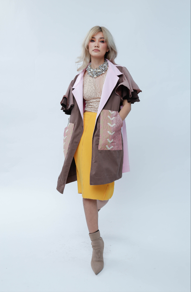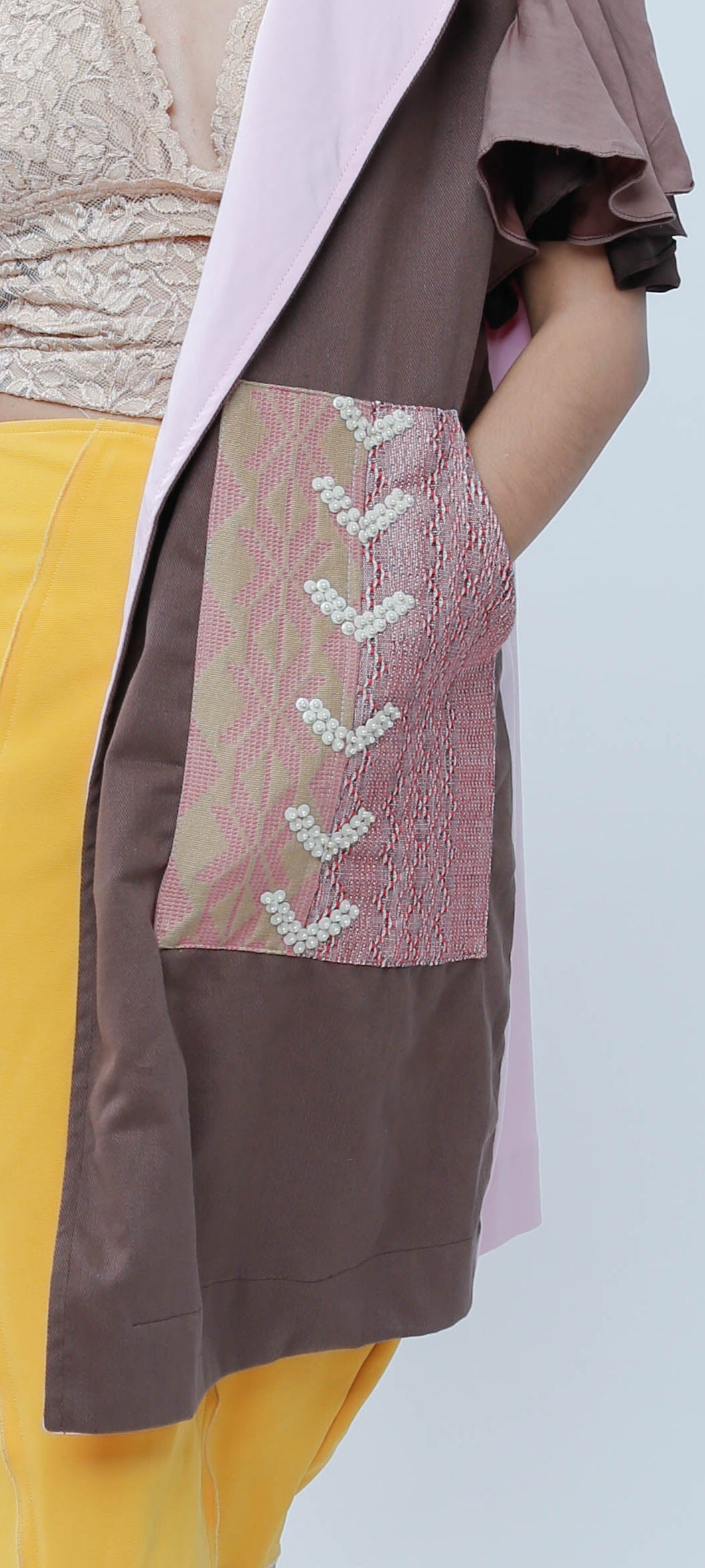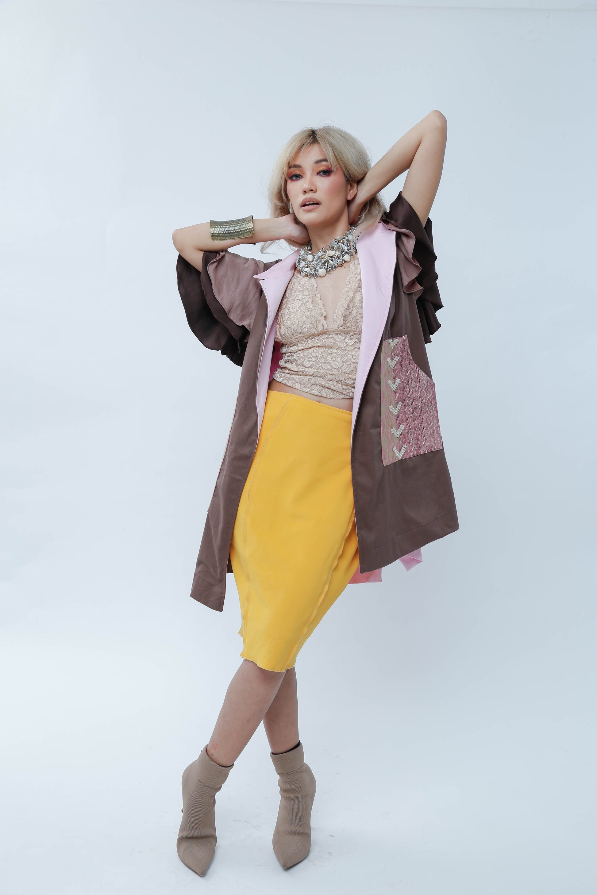 Step out in style with "Panganay in Brown," a playful trench coat blending warm brown and soft pink hues. This chic combo adds a fun twist to classic outerwear, perfect for brightening up any rainy day or cool evening. Cozy and eye-catching, it’s designed to keep you comfortable while turning heads wherever you go.