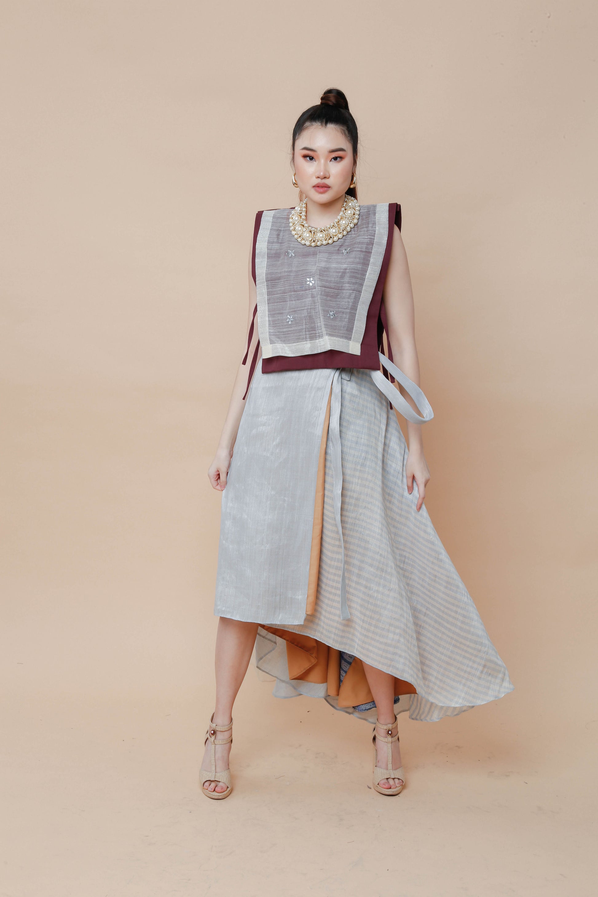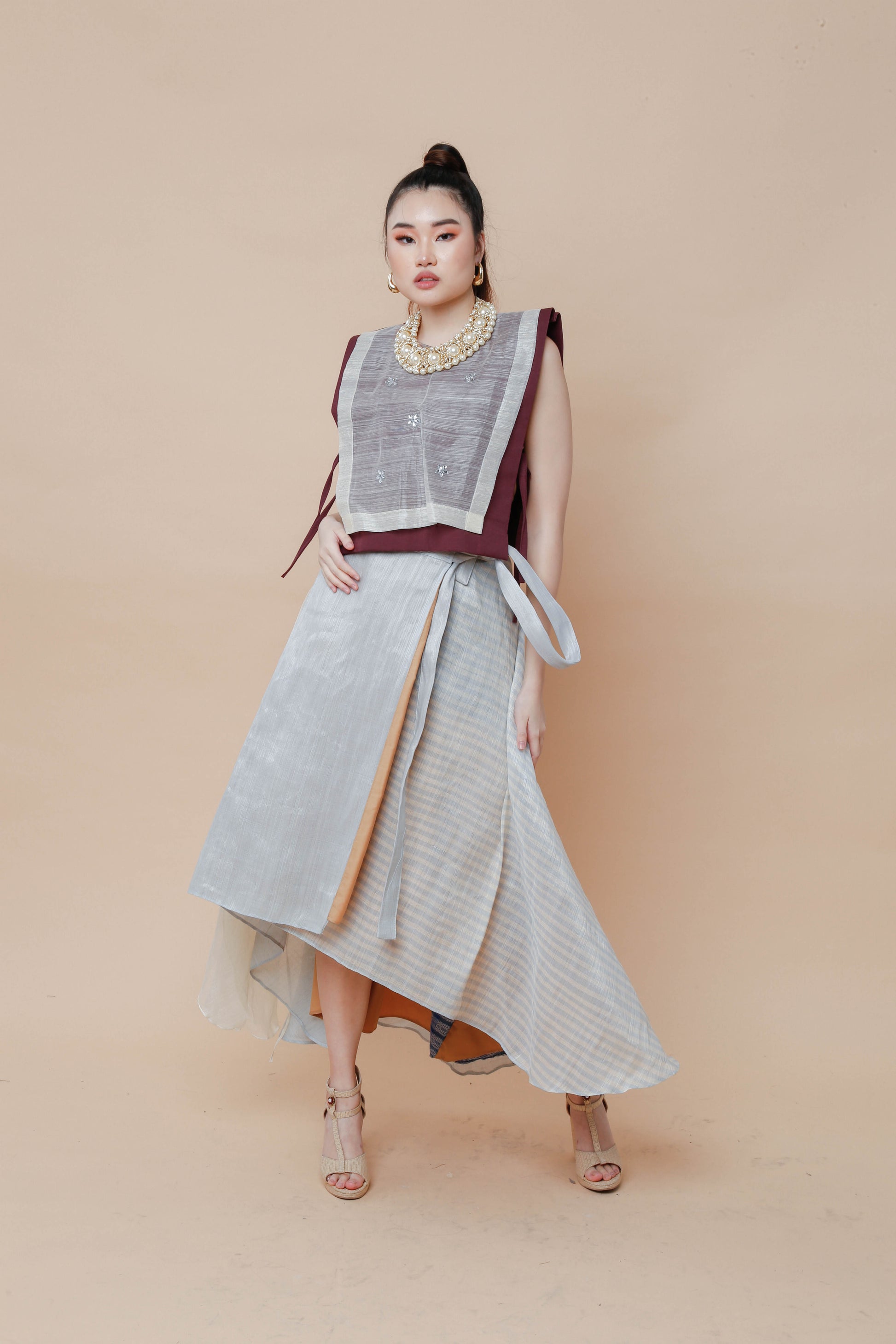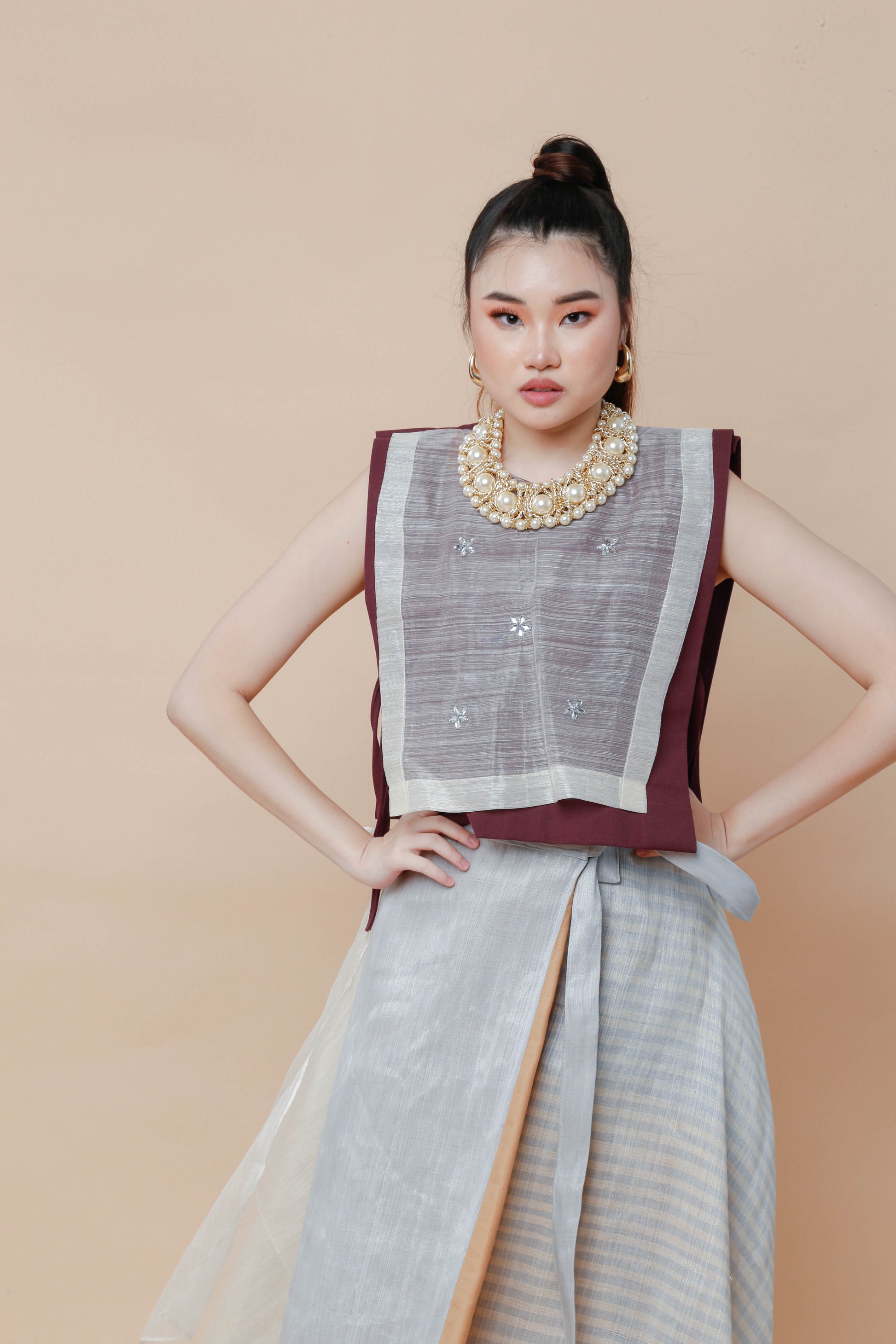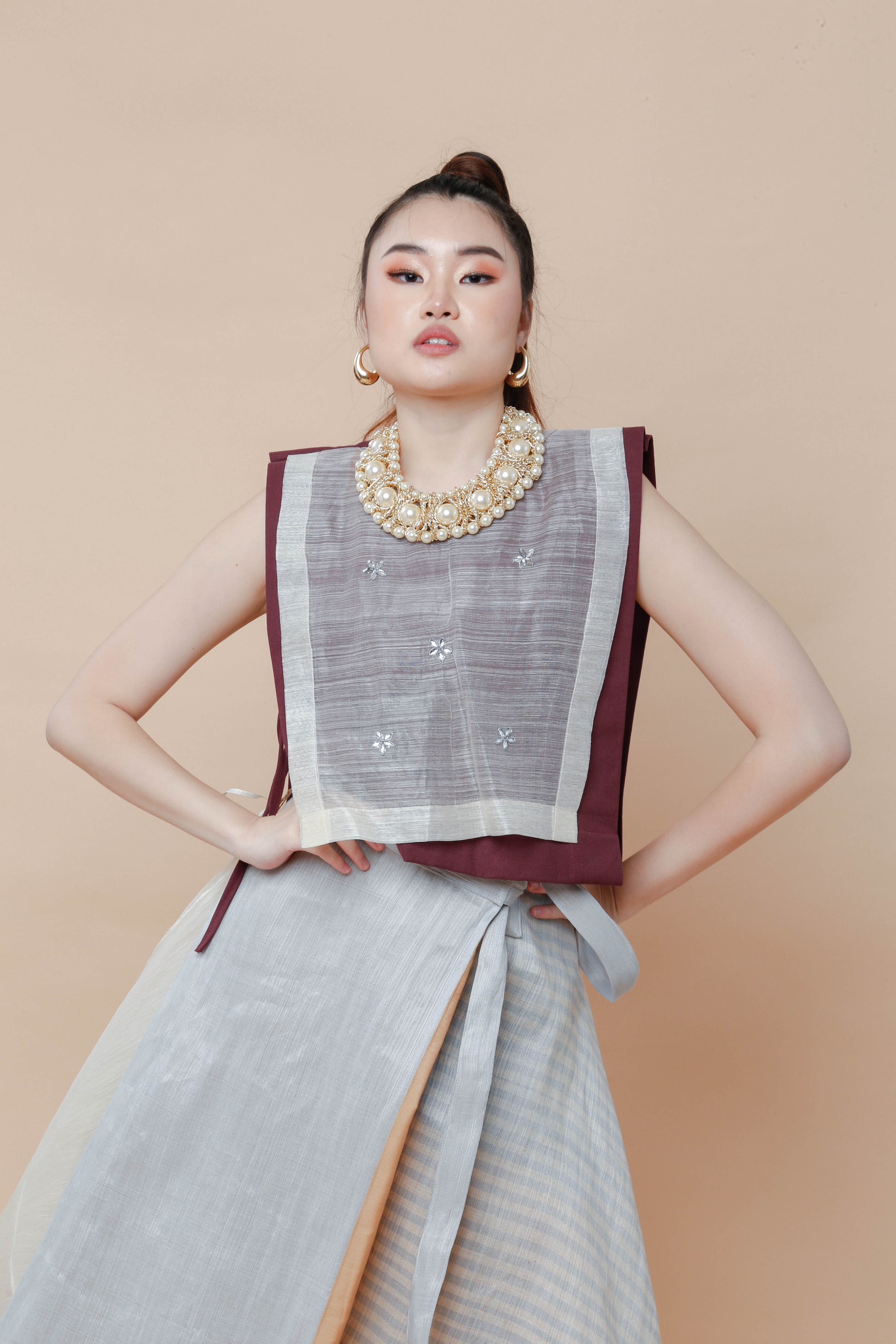 Barong Bib in Maroon with Hand Beaded Appliques
